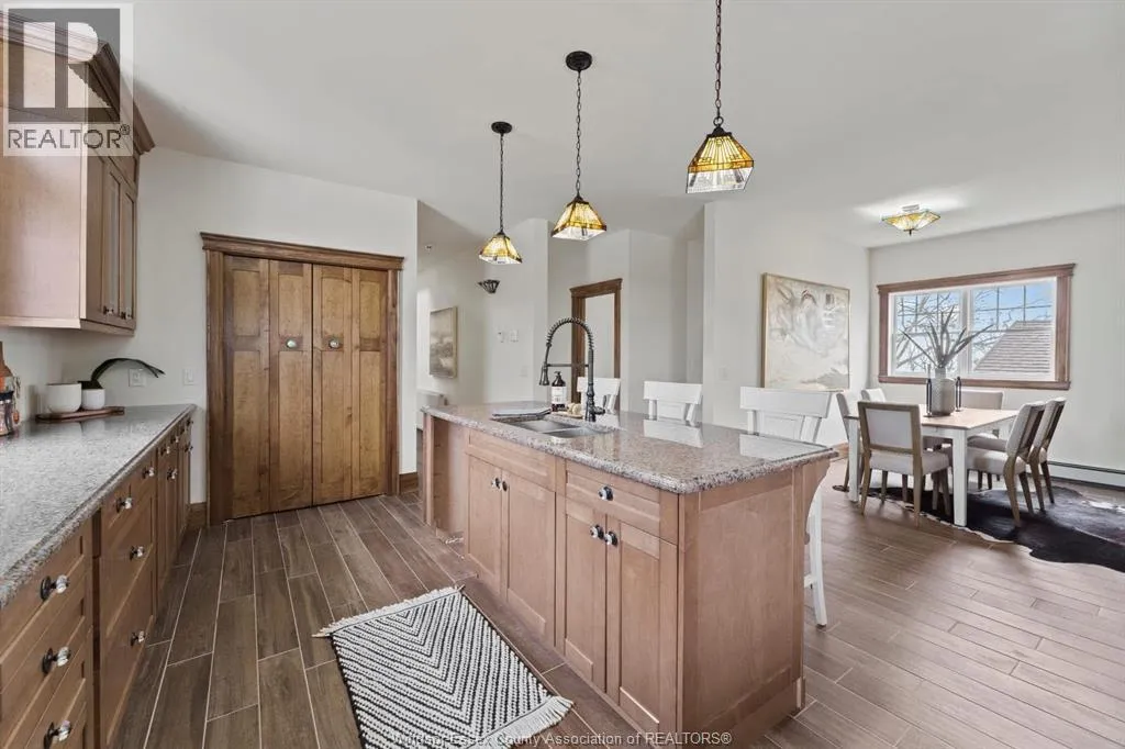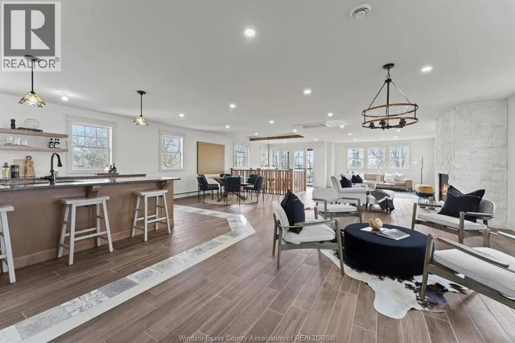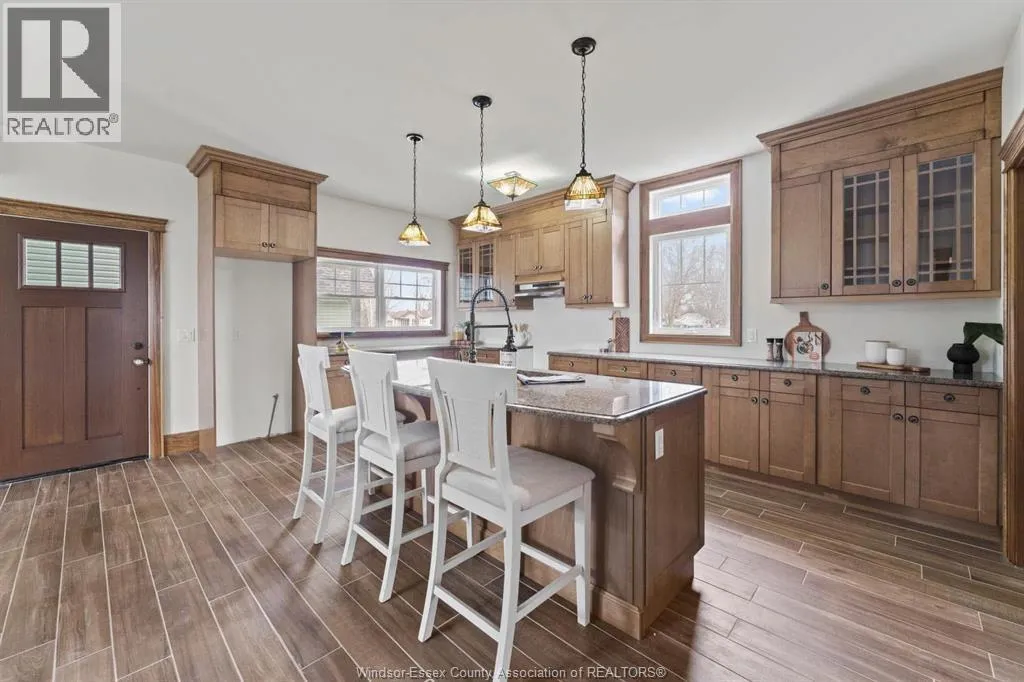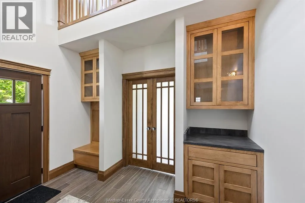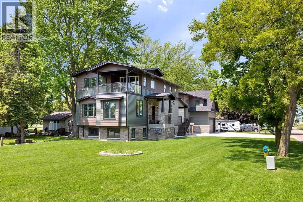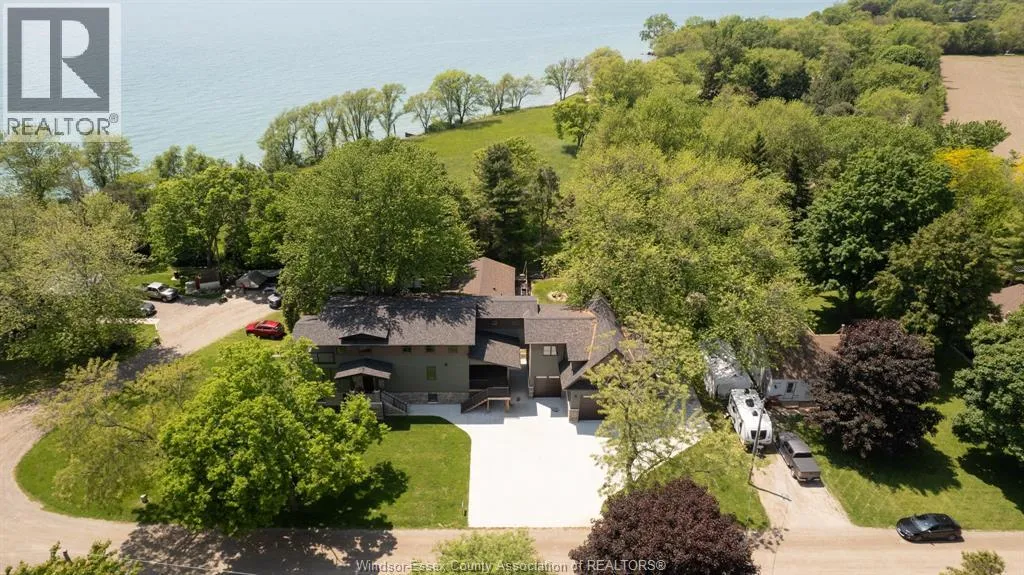 Spectacular arts and crafts style masterpiece in a quiet location near the village of Colchester. Approx 4000 sq ft of amazing above grade living space together with a beautiful 1360 two bedroom suite on the lower level. So many great features including gorgeous trim and woodwork, artisan ceramic flooring with accents, stunning window package, soaring two storey foyer and much more. Main level primary bedroom faces the lake and includes a designer ensuite 4 pc bath. The huge upper level social area is a true show stopper featuring a large custom granite bar, two piece bath, gas fireplace and balcony with lovely lake views. The roomy lower level suite makes this a great choice for extended families or extra income. 1150 sq ft heated garage with four overhead doors incl an 18' door with 10' clearance. Just minutes to wineries, marina, beach, golf and more. (id:27476)