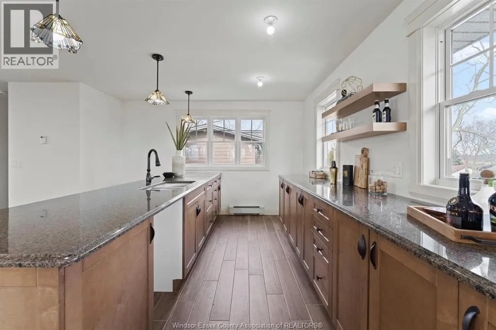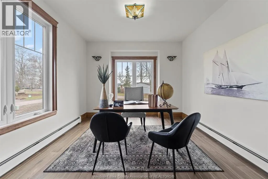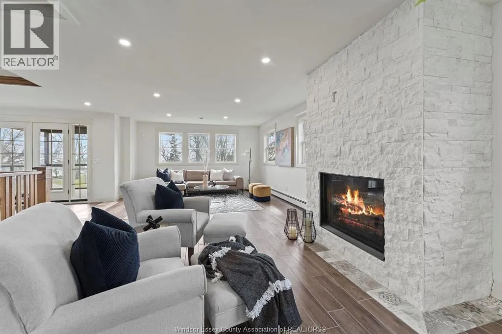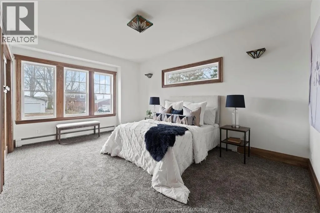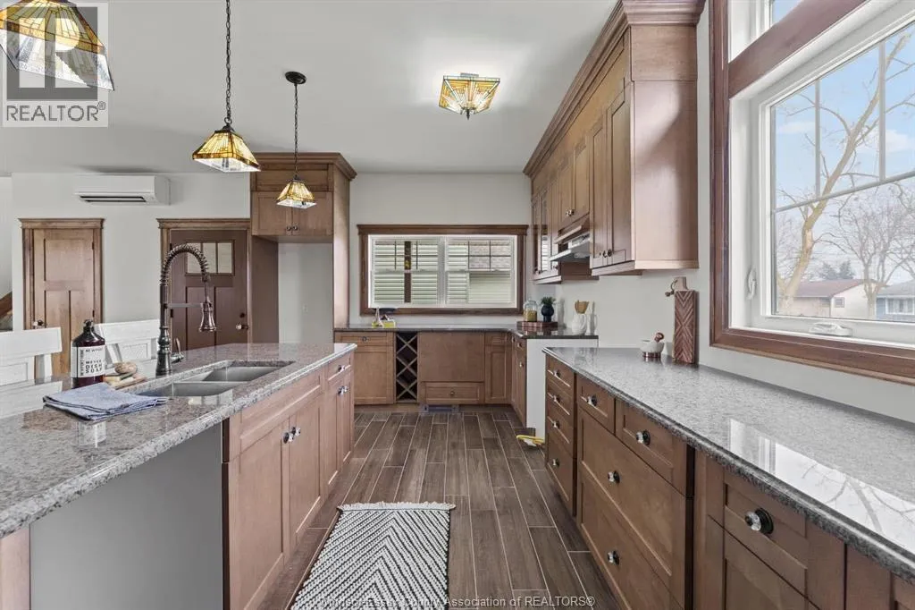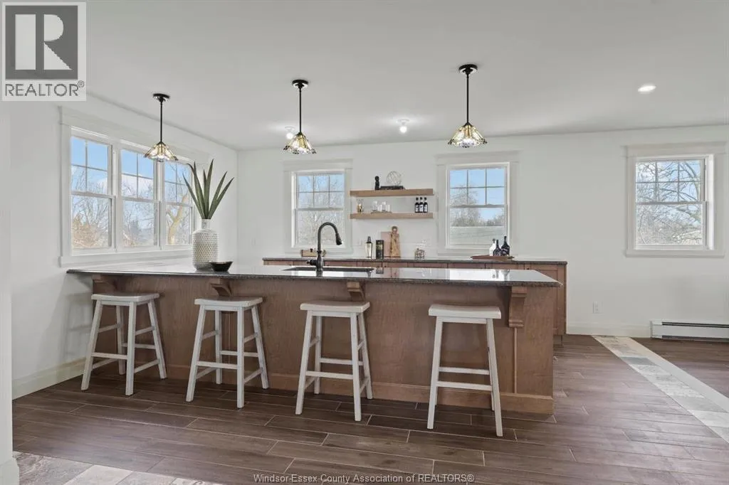 Spectacular arts and crafts style masterpiece in a quiet location near the village of Colchester. Approx 4000 sq ft of amazing above grade living space together with a beautiful 1360 two bedroom suite on the lower level. So many great features including gorgeous trim and woodwork, artisan ceramic flooring with accents, stunning window package, soaring two storey foyer and much more. Main level primary bedroom faces the lake and includes a designer ensuite 4 pc bath. The huge upper level social area is a true show stopper featuring a large custom granite bar, two piece bath, gas fireplace and balcony with lovely lake views. The roomy lower level suite makes this a great choice for extended families or extra income. 1150 sq ft heated garage with four overhead doors incl an 18' door with 10' clearance. Just minutes to wineries, marina, beach, golf and more. (id:27476)