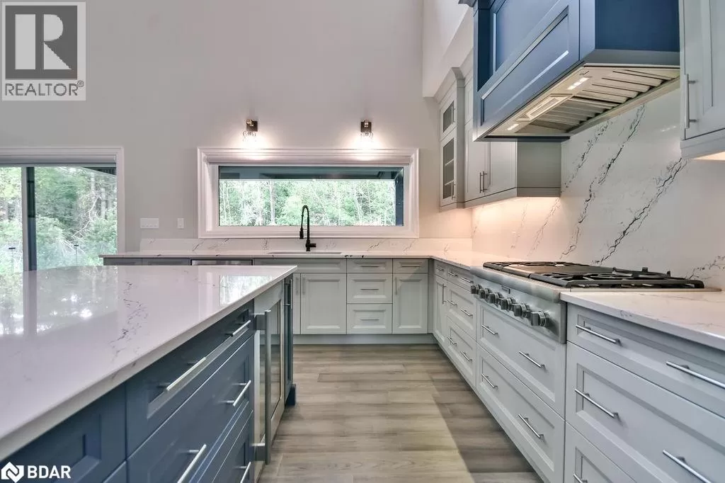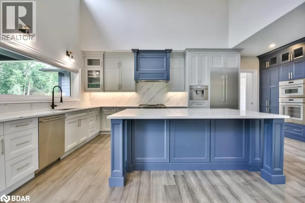 Horseshoe Valley Rd E-Line 8- Georgian Grande - Thoroughbred- Clydesdale Crt One-of-a-Kind in Braestone Estate Home with Legal Coach Apartment! Welcome to 4 Clydesdale Court, a custom-designed estate-style home perfectly positioned on a quiet court. Backing onto green space, this stunning residence blends timeless craftsmanship with upscale finishes, offering a luxurious lifestyle minutes from Barrie and Orillia. The open-concept main floor features soaring vaulted ceilings, oversized windows, and a gas fireplace. Walk out to a covered balcony with composite decking and glass railings perfect for serene views or entertaining. The chef-inspired kitchen includes granite counters, pantry, custom cabinetry, and $75k in built-in Thermador appliances. The main floor primary suite is a true retreat with a spa-like 5-piece ensuite, soaker tub, walk-in shower, and heated floors. Additional main floor highlights include a formal dining room, a den (ideal office or bedroom), a stylish powder room, and laundry. Upstairs, two large bedrooms each have 3-piece ensuites and walk-out access to a shared balcony. A major highlight is the finished triple car garage with private entry to a bright, self-contained legal coach apartment complete with kitchen rough in, bathroom, and laundry -ideal for family, guests, or rental income. The full-height unfinished basement with large windows offers excellent future potential for additional bedrooms, rec-room or home gym - the possibilities are endless. Enjoy the best of Braestone award-winning for its trails, equestrian features, farm-to-table charm, and vibrant community. Close to skiing, golf, Bass Lake, and major commuter routes, this rare offering combines privacy, elegance, and lifestyle in Oro-Medonte's most sought-after neighborhood. (id:27476)