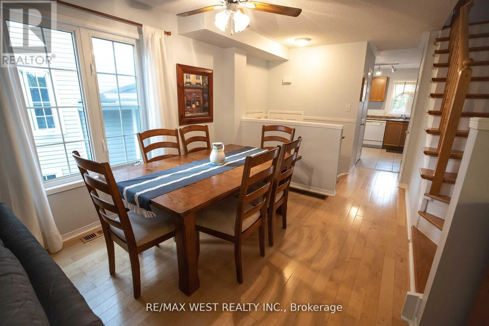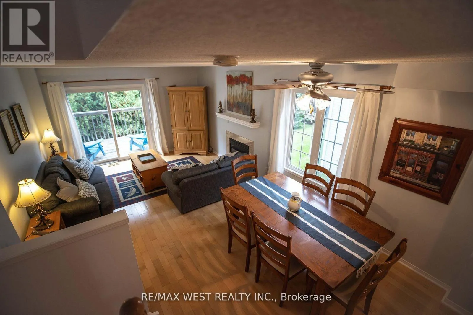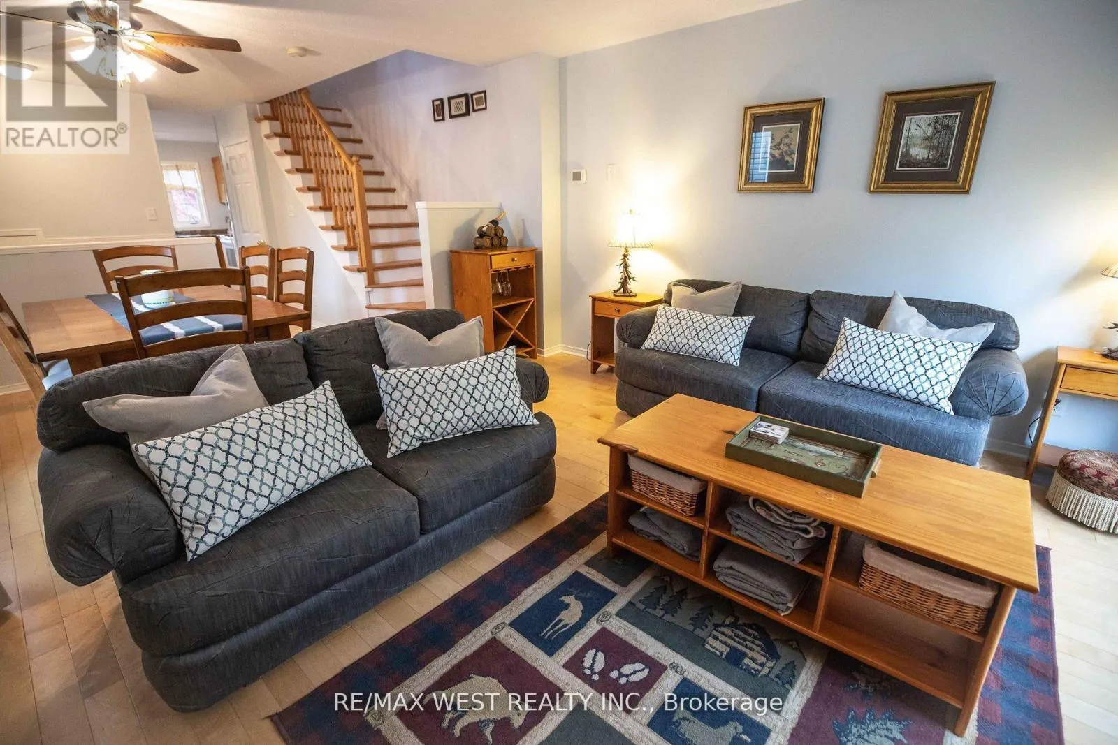 Hwy 26 & Cranberry Trail East Experience the Four-Season Lifestyle in Georgian Bay! This well-maintained end-unit townhome offers the perfect blend of full-time living, a weekend retreat, or a rental investment. With over 1,600 sq. ft. of living space, this home is designed for comfort and convenience. Main Floor: Spacious and bright with an eat-in kitchen, open-concept layout, and maple hardwood floors in the living room, featuring a cozy gas fireplace and a walkout to a private deck. Upper Level: Newly updated staircase leads to two generous bedrooms, with ensuite bath and modern flooring. Lower Level: A finished walkout basement opens to a serene, tree-lined backyard, making it an ideal in-law suite with a 4-piece bath. Prime Location Enjoy year-round activities just moments away: skiing, hiking & biking trails, golf, marina access, shopping, and dining. Don't miss out on this fantastic opportunity! (id:27476)