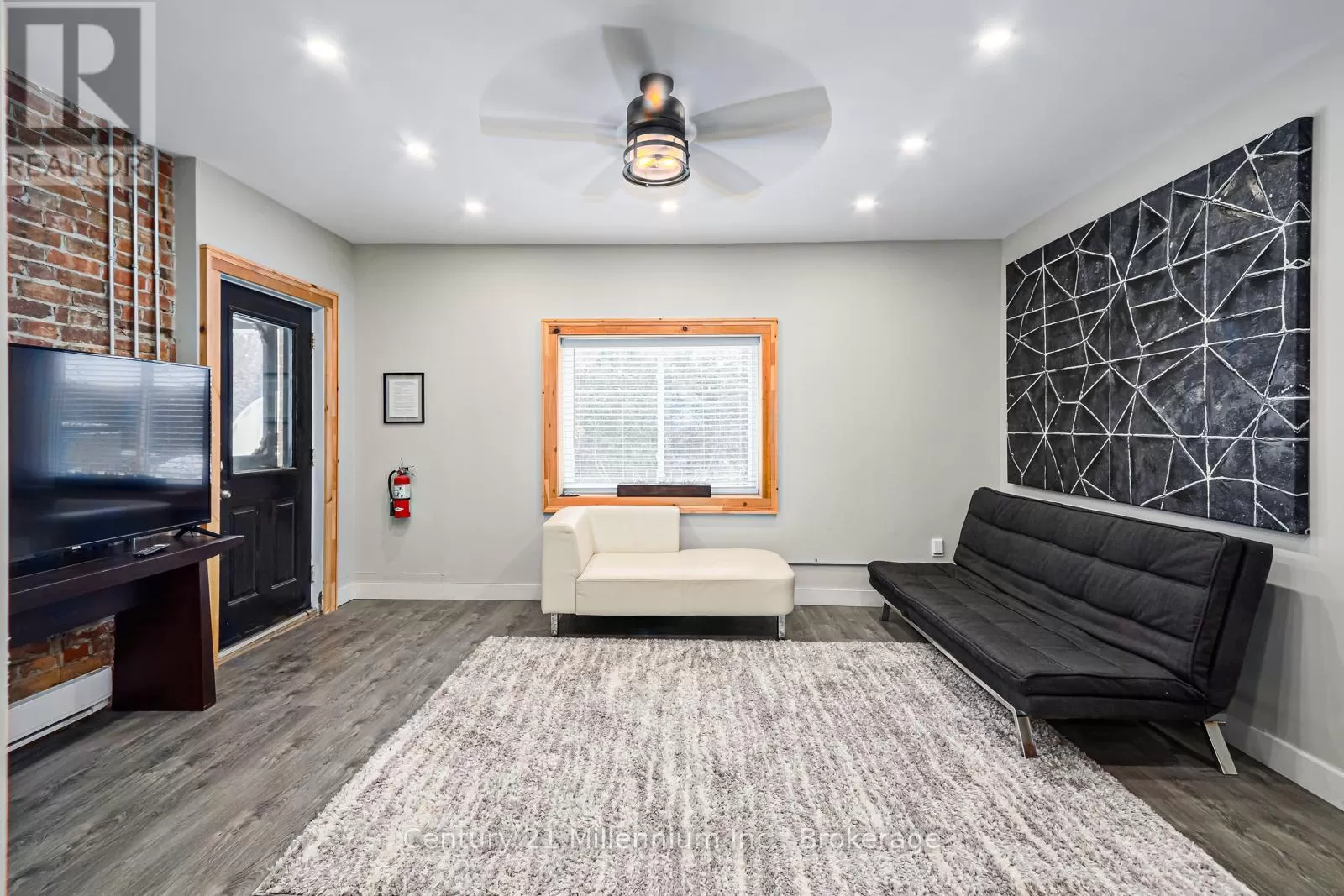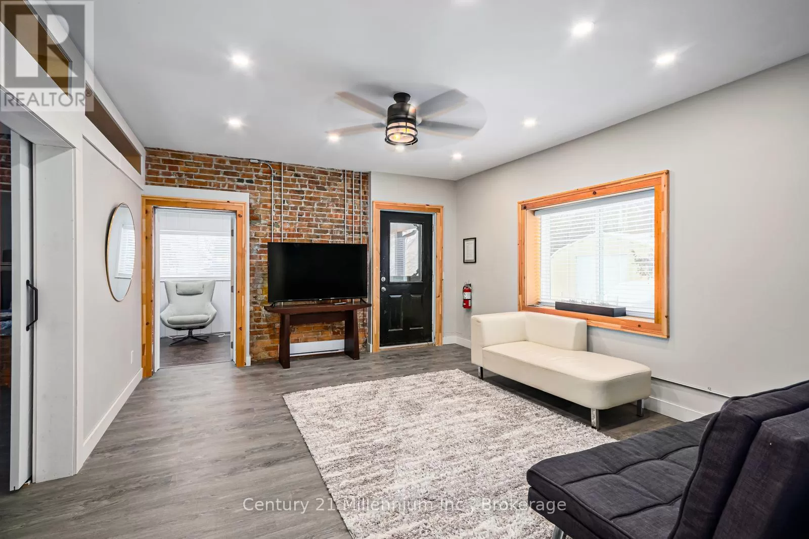 Cross Streets: Hurontario St and Cameron St. ** Directions: Hurontario St and Cameron St across from CCI. Same side as the Tim Horton's. Step into a world of historic elegance and contemporary comfort with this unique annual rental, perfectly situated in a meticulouslyrestored historical building in the heart of Downtown Collingwood. This versatile main-floor unit, with its own separate entrance, offersthe flexibility to be used as a 2-bedroom, 1-bathroom residence, a professional office space, or an ideal live/work environment.The property, which has been thoughtfully renovated and landscaped, is a significant local landmark that beautifully blends the pastwith the present. It provides a unique and charming atmosphere, complemented by modern conveniences. Imagine living or working amidst the vibrant atmosphere of Downtown Collingwood, with all the town's amenities right at your doorstep. Ample parking is available, and for those with a vision, the landlords are open to building a large deck to accommodate a cafe, further enhancing the property's potential. The unit is available either furnished or unfurnished to suit your needs. The tenant is responsible for setting up their own internet account. Additional rent (TMI) is approximately $7.60 per square foot per year, to be reconciled at the end of each calendar year and paid monthly. This is a rare opportunity to rent a space that perfectly balances history, convenience, and modern living. (id:27476)