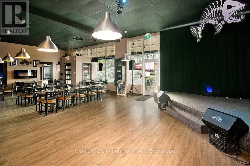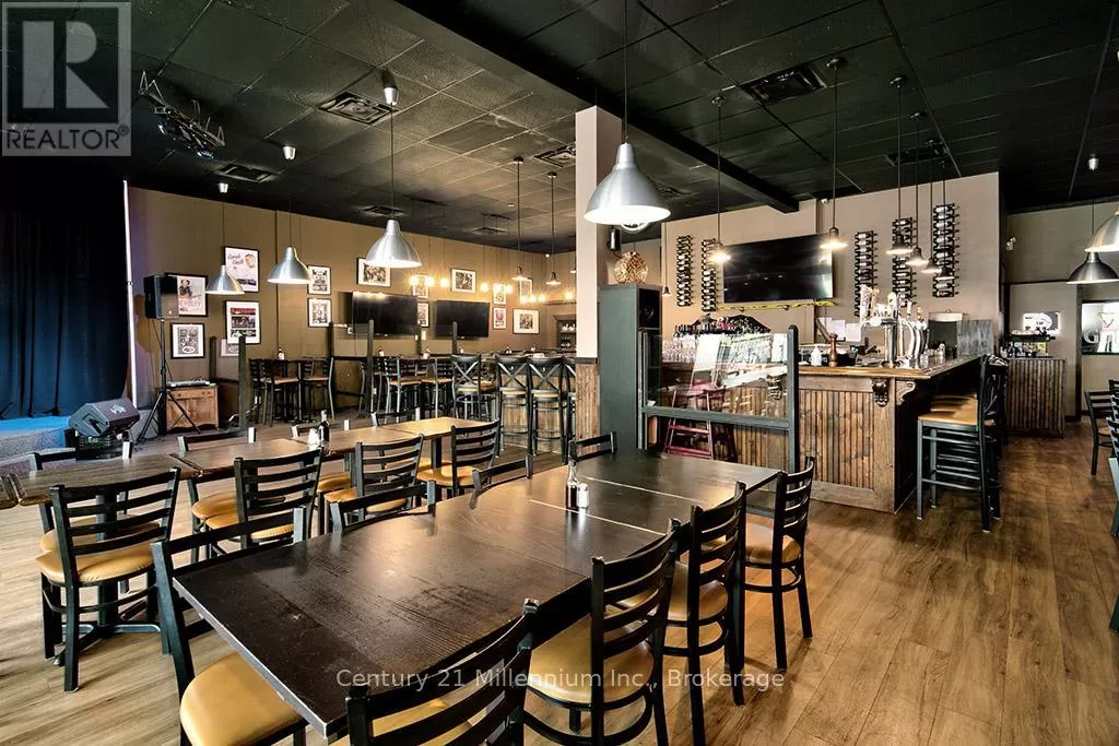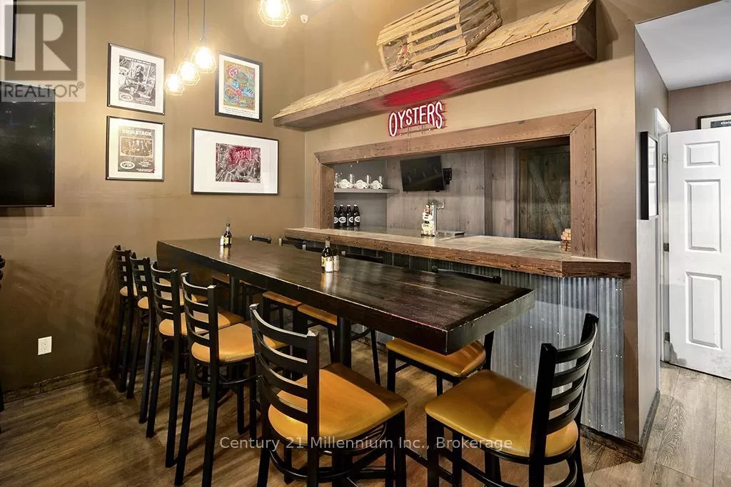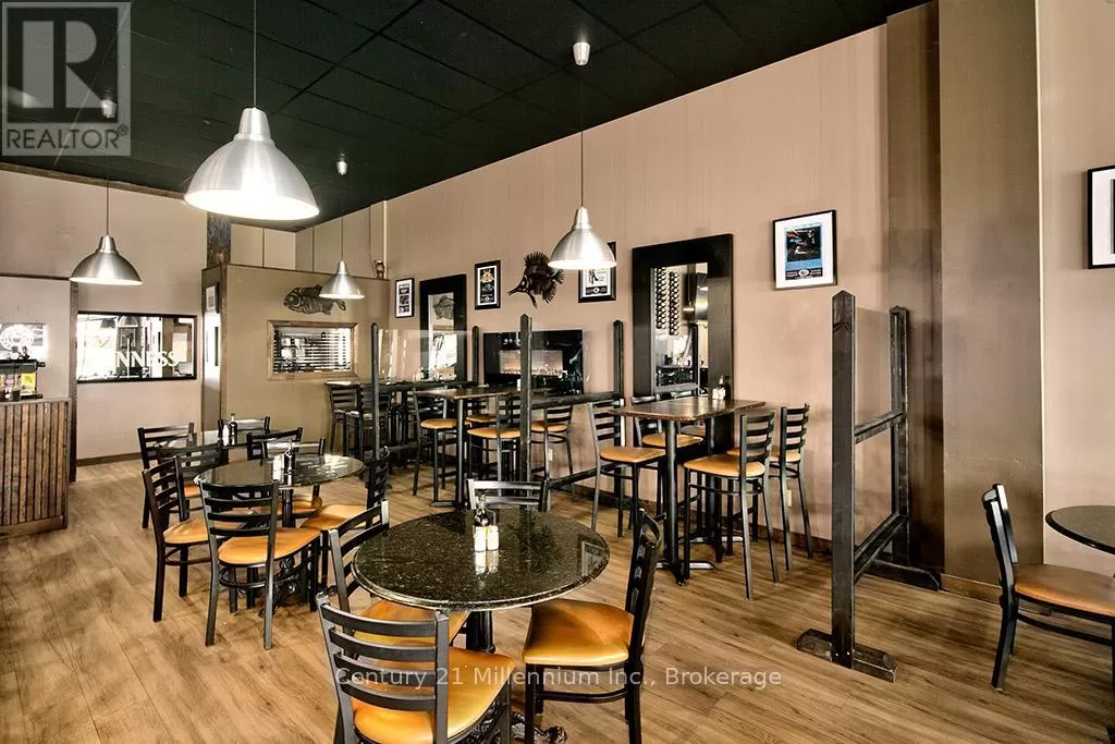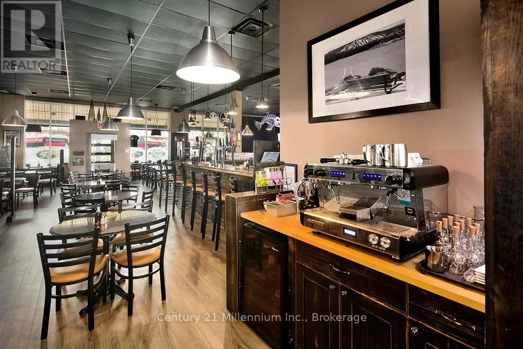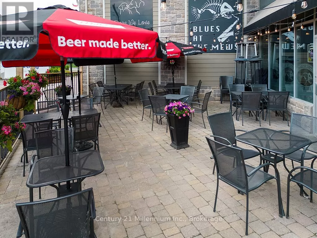 Cross Streets: Dawson Dr & Ketih Ave. ** Directions: From Collingwood continue on Hwy 26 towards Blue Mountain, property on Left at Cranberry Mews at the corner of Keith Ave & Hwy 26. Welcome to Harbour Street Fish Bar a thriving, turn-key restaurant and bar now available for sale. This well-established business is ready for its next owner to carry on the legacy and make their mark in one of Collingwood's most dynamic west-end locations. Surrounded by vibrant residential neighborhoods and popular attractions, Harbour Street Fish Bar is a local staple known for its standout menu and unmatched live music scene. Ask any local where to go dancing in town, and you'll hear Harbour Street Fish Bar time and time again. With indoor seating for over 100 guests and an additional 55 seats on the patio, there's plenty of space to welcome loyal regulars and curious newcomers alike. The fully equipped kitchen and bar are ready for a smooth transition to new ownership. Rare opportunity to take the rein of a beloved local hotspot in the heart of Collingwood's vibrant business scene. (id:27476)
