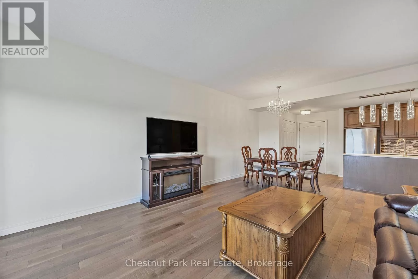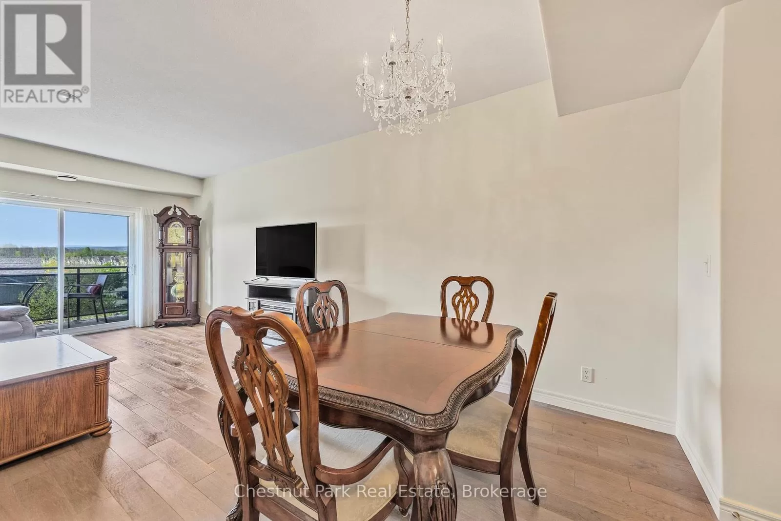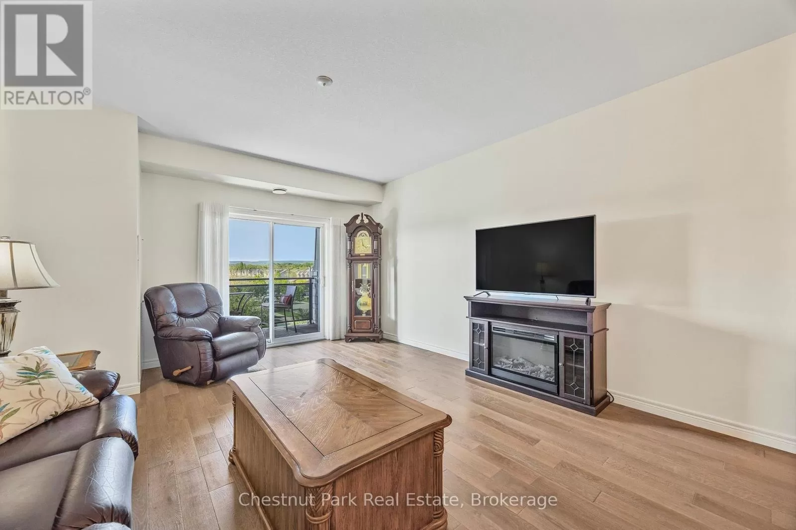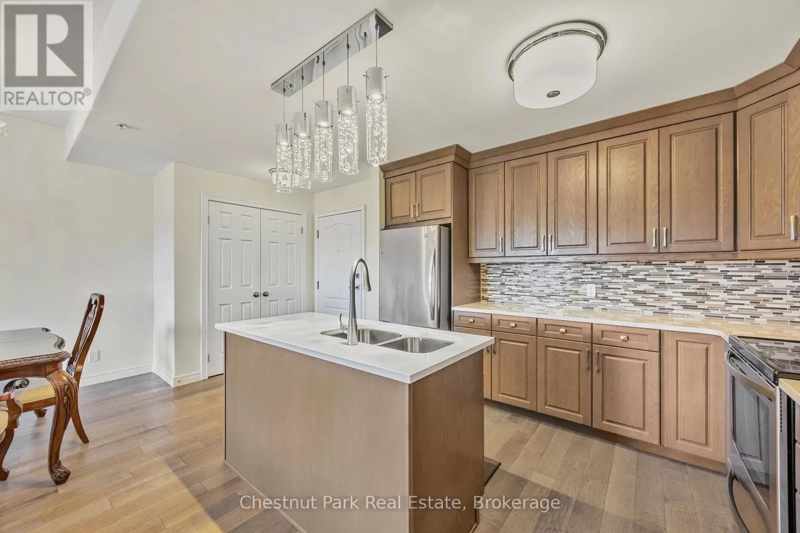 Cross Streets: High and Sixth Streets. ** Directions: South on High St to 1 Chamberlain Cres, turn right into car park - no sign on property. Welcome to Dwell at Creekside, an exclusive offering from award-winning Devonleigh Homes, where luxury meets lifestyle in the heart of Ontario's four-season playground. Perfectly positioned between the majestic Blue Mountains, the sparkling shores of Georgian Bay, and the charming, historic town of Collingwood, this rarely available 3-bedroom, 2-bathroom top-floor condo offers the best of nature, featuring a South facing private terrace with gorgeous views to the escarpment and Osler Bluff. Spanning over 1,200 SF, this exceptional residence features a bright and airy open-concept kitchen, dining, and living space, perfect for entertaining or quiet evenings at home. Step out onto your private 94 sq.ft. terrace and enjoy serene views across a tranquil pond-your own peaceful retreat. Built with over $50,000 in builder upgrades, including: California shutters throughout, Quartz countertops in kitchen and both bathroom, Extended kitchen cabinetry to the ceiling, Designer-upgraded washrooms and premium flooring, Dedicated laundry room with convenient stackable washer & dryer. Additional features include: Designated outdoor parking + guest parking, Assigned lower-level locker and extra bicycle storage, Optional second parking space available for $50/month via property management, and Residents lounge with kitchenette for gatherings and meetings. Whether you're seeking a year-round residence, a weekend getaway, or a sophisticated investment, this rare third-floor, 3-bedroom condo offers comfort, style, and a coveted location. Don't miss your chance to own a piece of Dwell at Creekside-where refined living meets the natural beauty of Southern Georgian Bay. (id:27476)