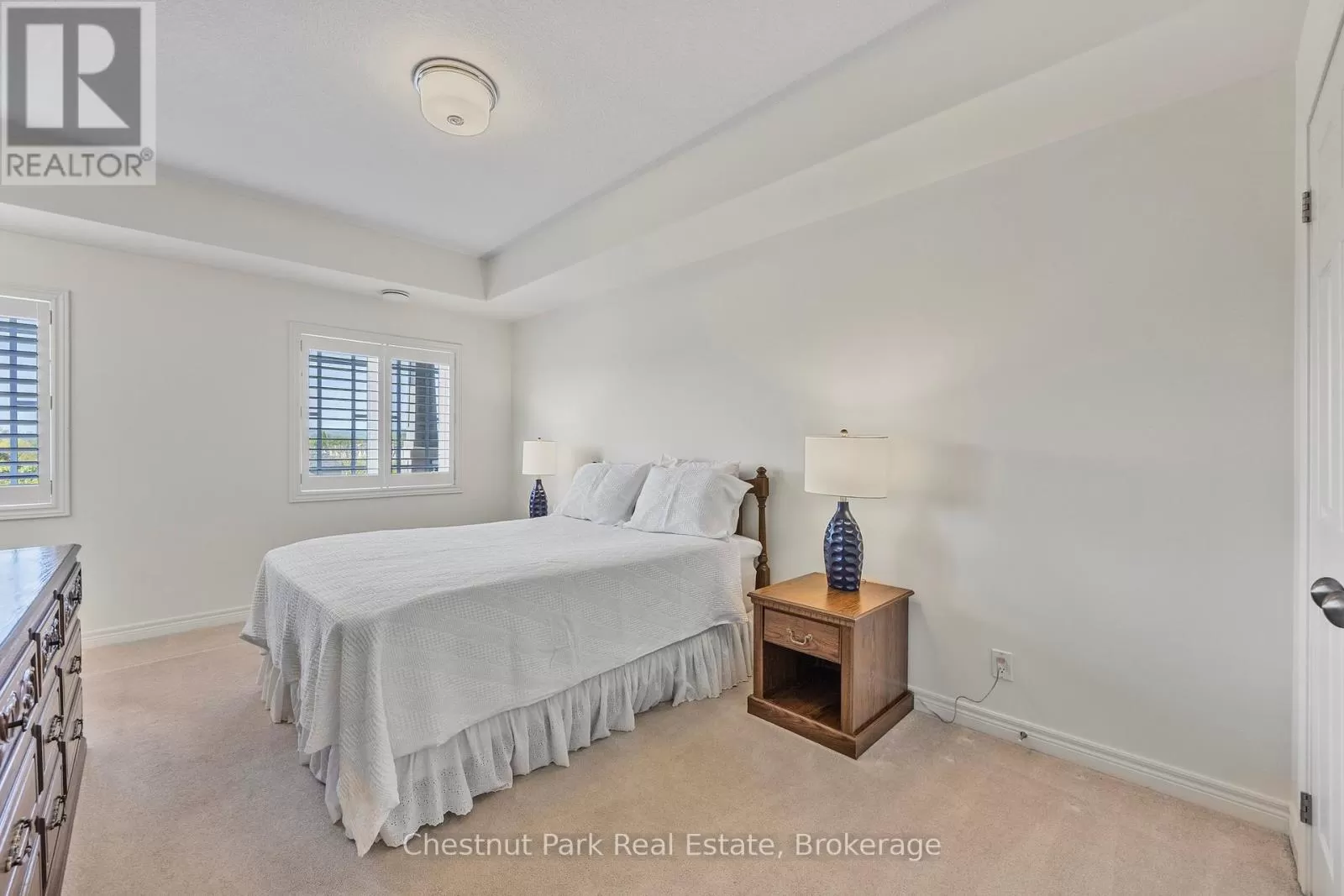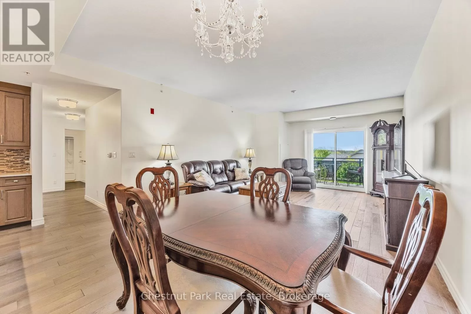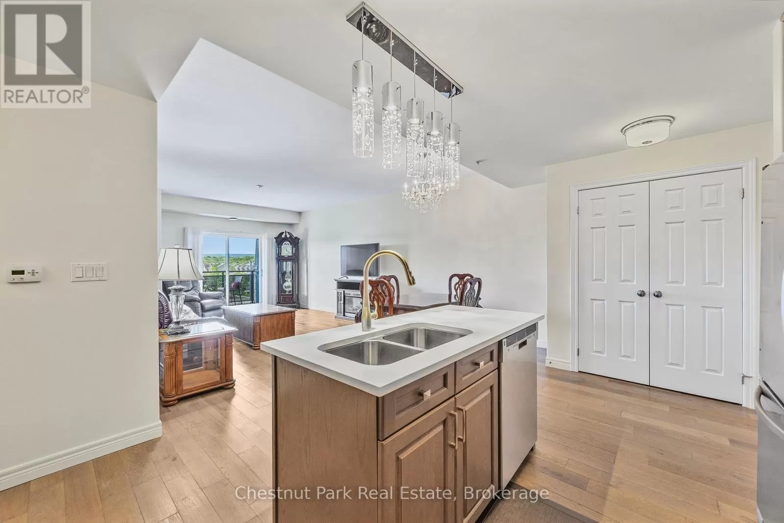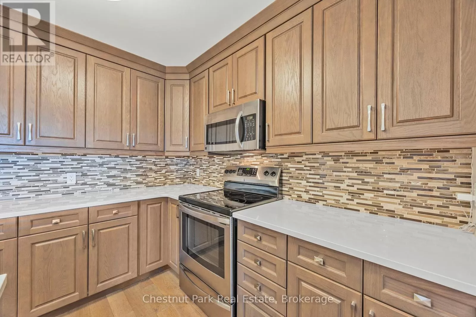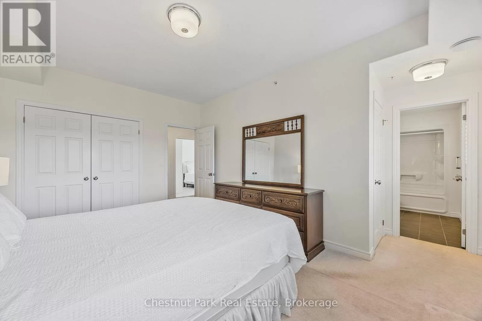 Cross Streets: High and Sixth Streets. ** Directions: South on High St to 1 Chamberlain Cres, turn right into car park - no sign on property. Welcome to Dwell at Creekside, an exclusive offering from award-winning Devonleigh Homes, where luxury meets lifestyle in the heart of Ontario's four-season playground. Perfectly positioned between the majestic Blue Mountains, the sparkling shores of Georgian Bay, and the charming, historic town of Collingwood, this rarely available 3-bedroom, 2-bathroom top-floor condo offers the best of nature, featuring a South facing private terrace with gorgeous views to the escarpment and Osler Bluff. Spanning over 1,200 SF, this exceptional residence features a bright and airy open-concept kitchen, dining, and living space, perfect for entertaining or quiet evenings at home. Step out onto your private 94 sq.ft. terrace and enjoy serene views across a tranquil pond-your own peaceful retreat. Built with over $50,000 in builder upgrades, including: California shutters throughout, Quartz countertops in kitchen and both bathroom, Extended kitchen cabinetry to the ceiling, Designer-upgraded washrooms and premium flooring, Dedicated laundry room with convenient stackable washer & dryer. Additional features include: Designated outdoor parking + guest parking, Assigned lower-level locker and extra bicycle storage, Optional second parking space available for $50/month via property management, and Residents lounge with kitchenette for gatherings and meetings. Whether you're seeking a year-round residence, a weekend getaway, or a sophisticated investment, this rare third-floor, 3-bedroom condo offers comfort, style, and a coveted location. Don't miss your chance to own a piece of Dwell at Creekside-where refined living meets the natural beauty of Southern Georgian Bay. (id:27476)
