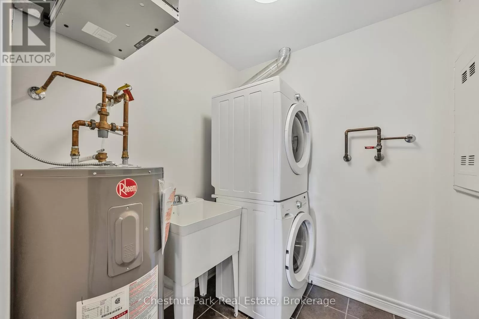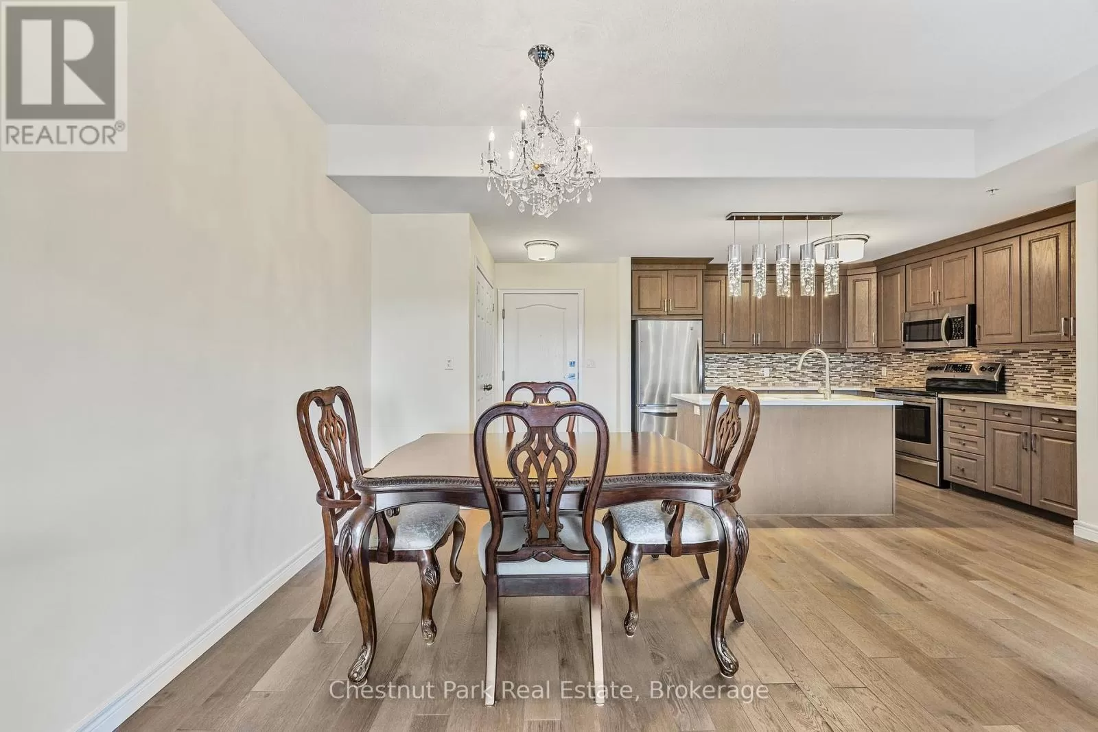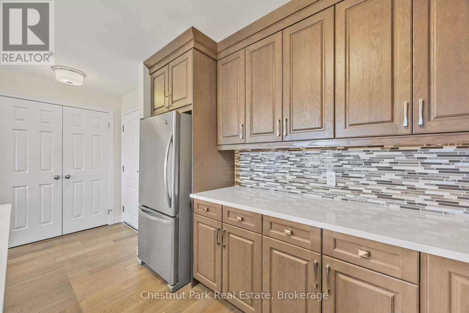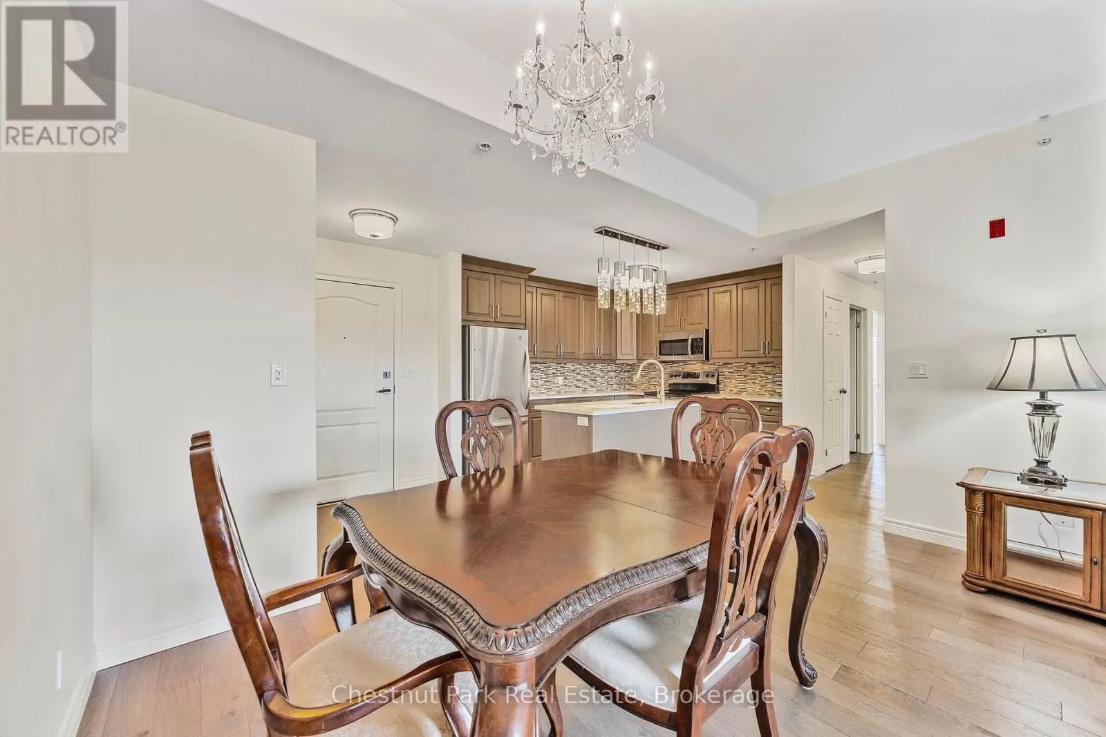 Cross Streets: High and Sixth Streets. ** Directions: South on High St to 1 Chamberlain Cres, turn right into car park - no sign on property. Welcome to Dwell at Creekside, an exclusive offering from award-winning Devonleigh Homes, where luxury meets lifestyle in the heart of Ontario's four-season playground. Perfectly positioned between the majestic Blue Mountains, the sparkling shores of Georgian Bay, and the charming, historic town of Collingwood, this rarely available 3-bedroom, 2-bathroom top-floor condo offers the best of nature, featuring a South facing private terrace with gorgeous views to the escarpment and Osler Bluff. Spanning over 1,200 SF, this exceptional residence features a bright and airy open-concept kitchen, dining, and living space, perfect for entertaining or quiet evenings at home. Step out onto your private 94 sq.ft. terrace and enjoy serene views across a tranquil pond-your own peaceful retreat. Built with over $50,000 in builder upgrades, including: California shutters throughout, Quartz countertops in kitchen and both bathroom, Extended kitchen cabinetry to the ceiling, Designer-upgraded washrooms and premium flooring, Dedicated laundry room with convenient stackable washer & dryer. Additional features include: Designated outdoor parking + guest parking, Assigned lower-level locker and extra bicycle storage, Optional second parking space available for $50/month via property management, and Residents lounge with kitchenette for gatherings and meetings. Whether you're seeking a year-round residence, a weekend getaway, or a sophisticated investment, this rare third-floor, 3-bedroom condo offers comfort, style, and a coveted location. Don't miss your chance to own a piece of Dwell at Creekside-where refined living meets the natural beauty of Southern Georgian Bay. (id:27476)