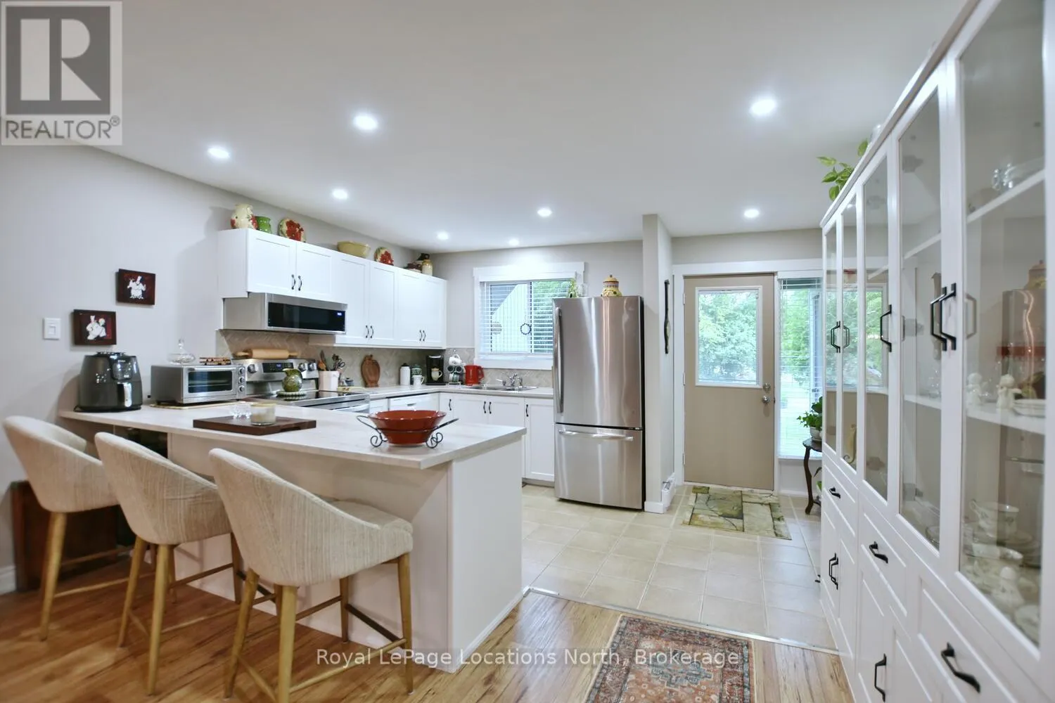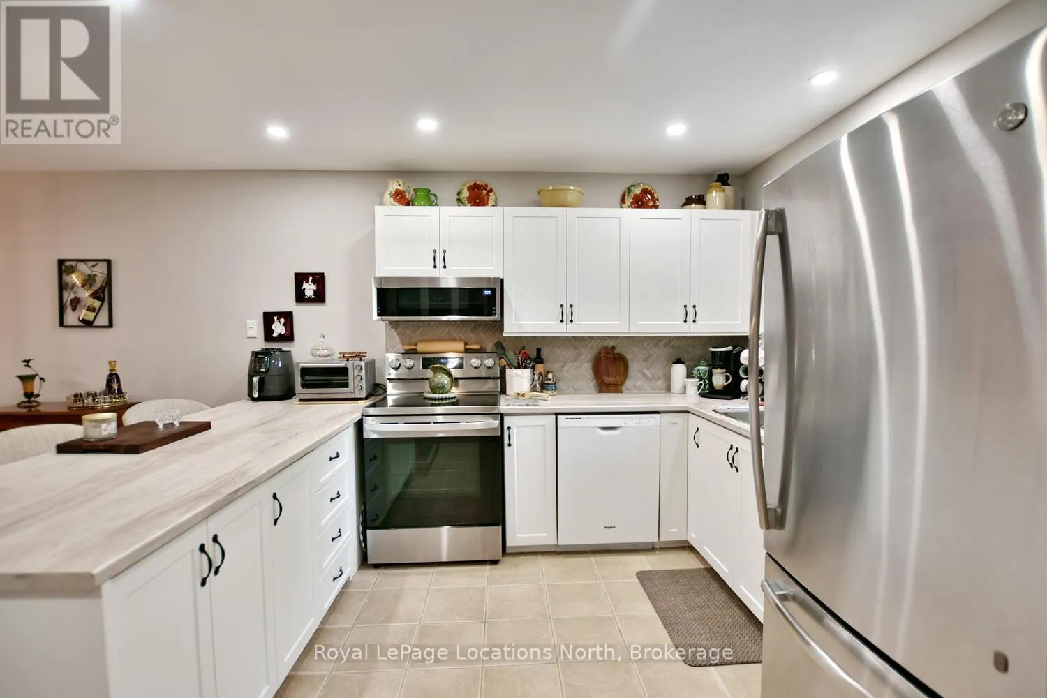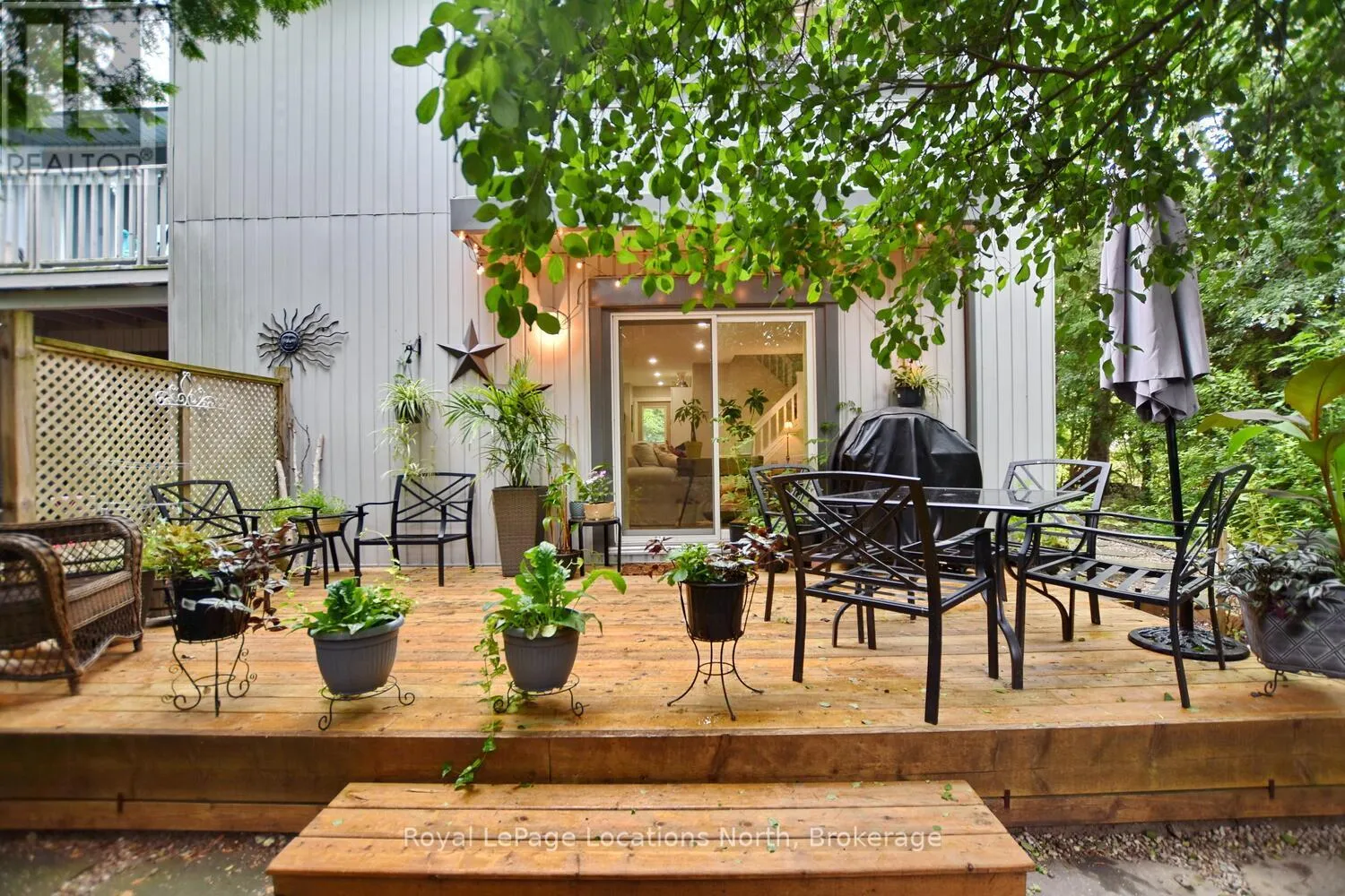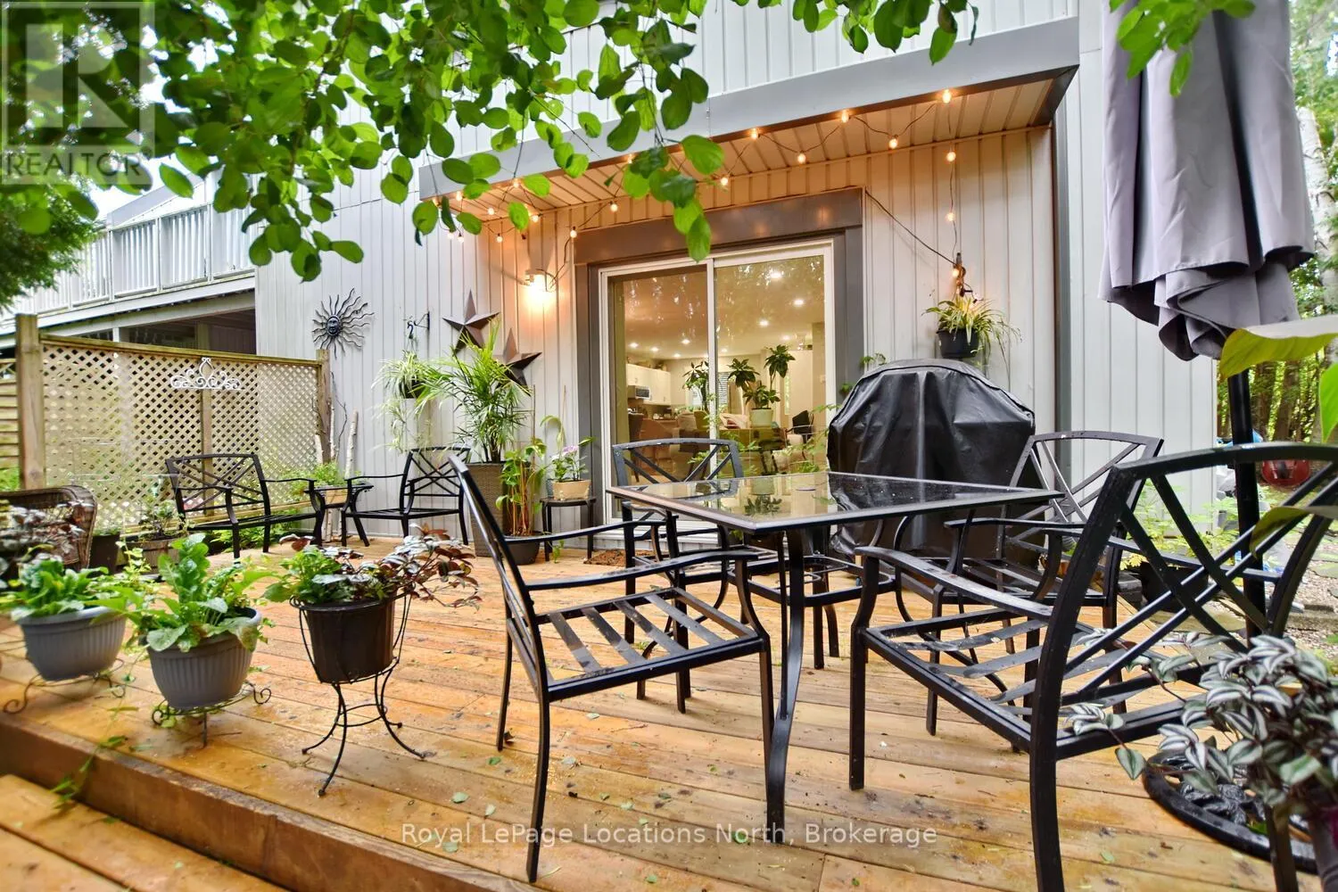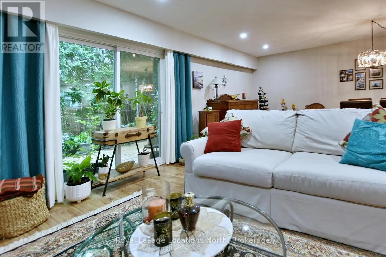 Cross Streets: Harbour and Hwy 26. ** Directions: Hwy 26 to Harbour St, left to Dawson Dr. Welcome to this private oasis found in Collingwood's popular Living Stone Resort area (Formerly Cranberry Resort). This huge end unit, 3 Bedroom, 2 Bath, townhome was recently renovated with many upgrades throughout. Enter to a large open concept space, starting with a newly renovated kitchen with breakfast peninsula which all overlooks the large living room with gas fireplace and a huge dining room. There is a large pantry/laundry room just off of the kitchen for ample storage as well. Continue on through the large sliding doors to a huge deck and very private backyard for entertaining your family and friends. The quiet, serene view has an abundance of trees and gardens. The pathway leading to the golf course runs directly behind this property allowing you to take casual strolls along the many trails or enjoy your favorite beverages and food on the largest outdoor deck in Collingwood just a short walk to golf course clubhouse. Moving upstairs you will find an enormous Primary Bedroom which runs the entire width of the back of the condo with a stunningly renovated ensuite bathroom. The rest of the upstairs offers 2 more very spacious bedrooms and the main 4 piece bath, which also has been beautifully upgraded. Spend your days hiking and biking this area right outside your front door. The famous Blue Mountain Village and Ski Resort is a short 10 minute drive. Explore Collingwood's historic downtown which is only 5 minutes away and offers all the dining, shopping, and entertaining venues that you need. Public Transit also runs right outside the condo for your convenience. This is the lifestyle that you have always dreamed of and deserve!! Please call today for a showing!!! (id:27476)