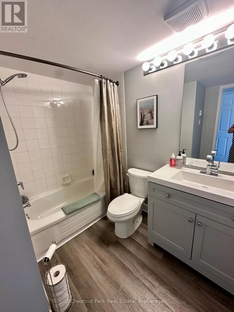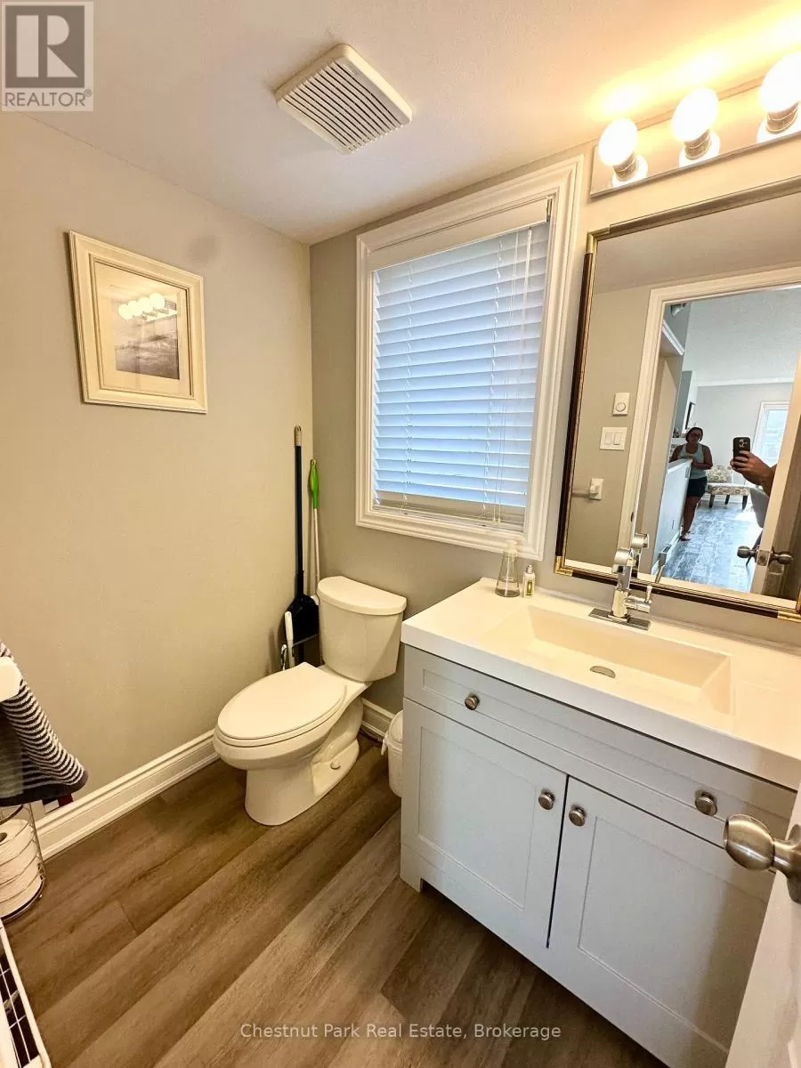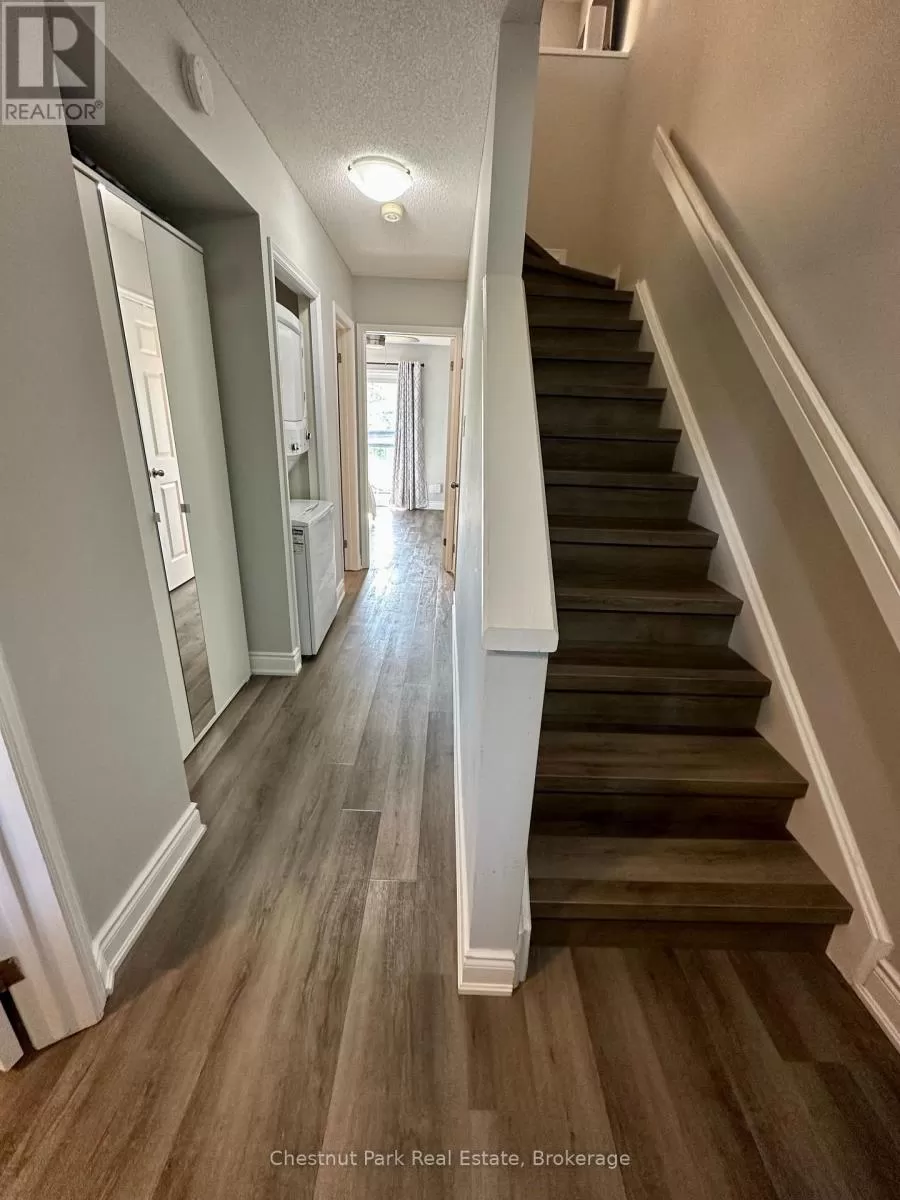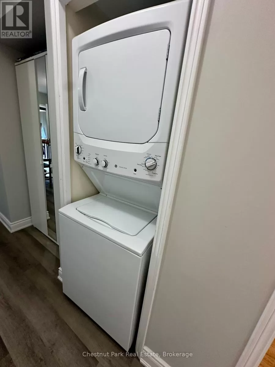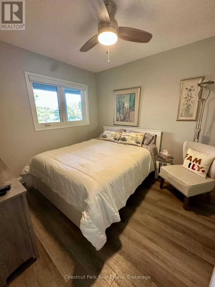 Highway 26 to Lighthouse Point Available for the ski season mid December to mid April, this two-bedroom, two-bathroom condo features a reverse floor plan. The entry is located on the second level, where you will find the bedrooms, a bathroom, and a laundry area. The upper level boasts an open-concept living, dining, and kitchen space with cathedral ceilings, creating an airy atmosphere. Additional amenities include a gas fireplace, a storage/pantry area adjacent to the kitchen, and a two-piece bathroom. The condo has been tastefully remodeled and offers a view of Georgian Bay. Please note that all utilities are additional to the rental rate, and references are required. There is no landline, and pets and smoking are not permitted. (id:27476)