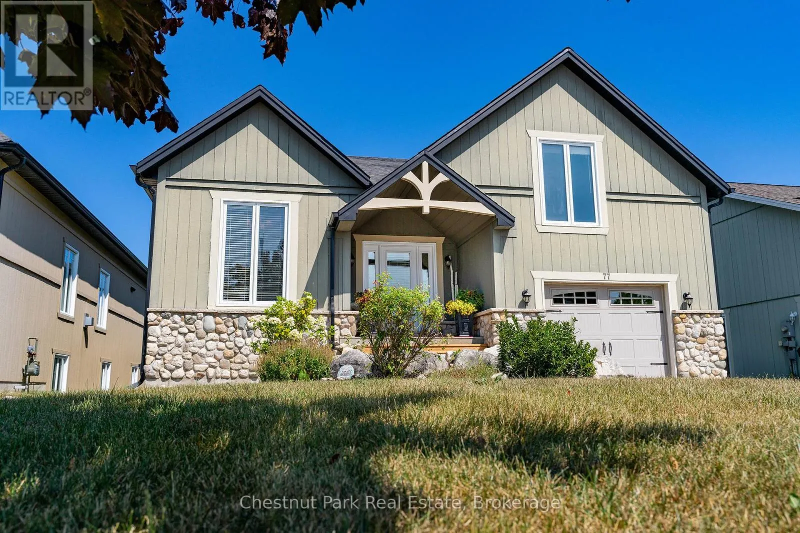Cross Streets: Hurontario Street and Findlay Drive. ** Directions: Hurontario St. south from downtown Collingwood to Findlay Dr, turn right on Findlay to the sign at #77. Welcome to 77 Findlay Drive in Collingwood, where thoughtful design meets year-round lifestyle appeal. Located just minutes from downtown Collingwood's shops, restaurants, art galleries, marina and waterfront trails, this 2889 total sq.ft. finished 3 bedroom, 2 bathroom raised bungalow is also perfectly situated for outdoor enthusiasts. The main floor includes a spacious primary bedroom with large walk-in closet and 4-piece ensuite, a bright living/dining and gourmet kitchen area, and a separate front office that can double as a guest room for overnight visitors. A unique bonus room above the garage is accessed through the laundry room and provides the perfect space for extra storage of your Christmas decorations, sports equipment and overflow clothing. The fully finished walkout basement is made for family fun or hosting guests, with a large open recreation/media room, two additional bedrooms, a 3-piece bath, and a bonus room ideal for a home gym or hobby space. If you're hitting the slopes at nearby Devils Glen, Osler Bluff Ski Club or Blue Mountain, or strolling the Georgian Trail, adventure is always within reach. Backing onto an environmentally protected storm management pond, this property offers a peaceful, private setting and a landscaped backyard with surrounding perennial gardens and partial fencing. Inside, the home features an open-concept main floor with engineered hardwood floors, a large kitchen island - ideal for entertaining, lovely gas fireplace in the living room, and walkout to a deck, perfect for outdoor dining and friends and family gatherings. Whether you're seeking a full-time residence or a weekend getaway, this property delivers versatility and a chance to live the coveted four-season lifestyle that Collingwood and the surrounding area is known for. (id:27476)
