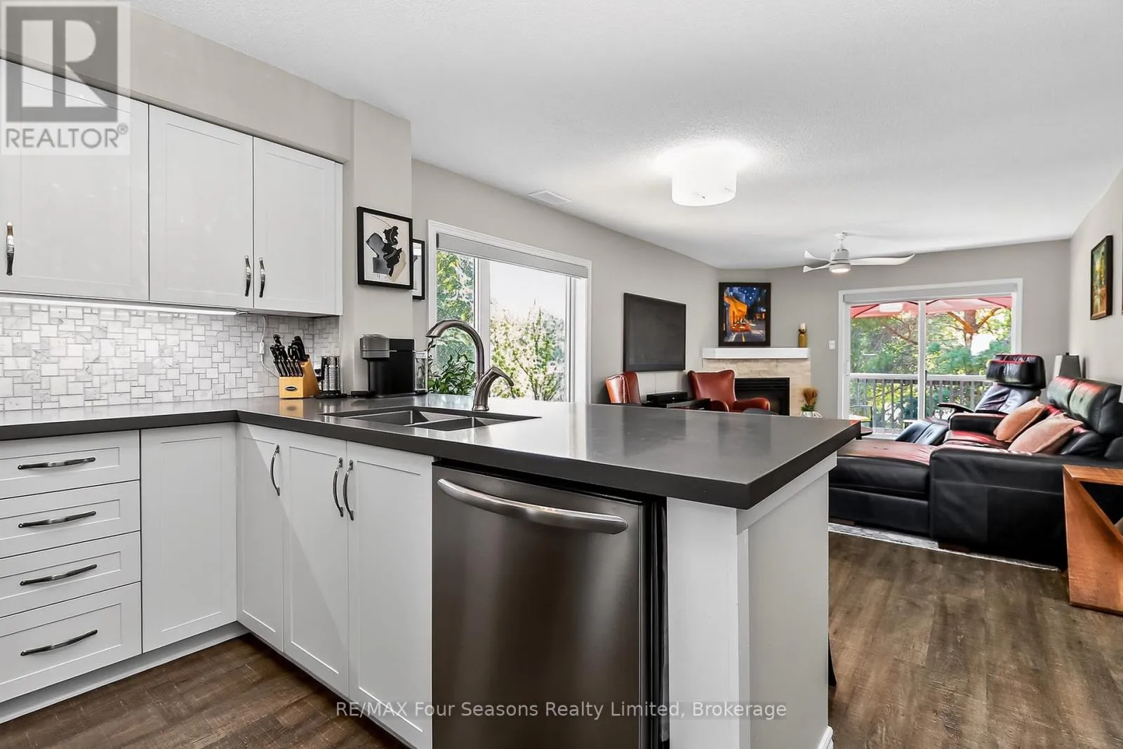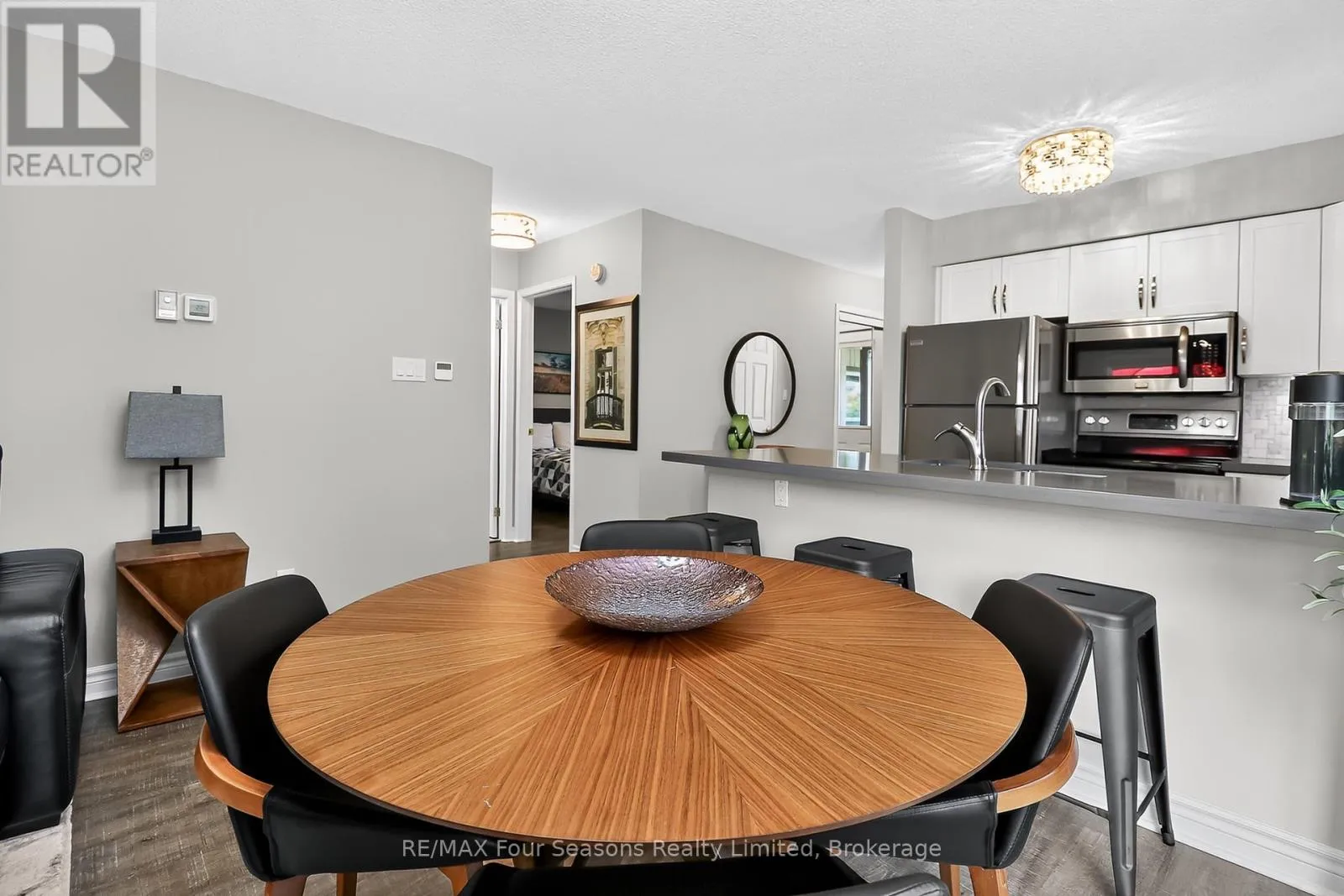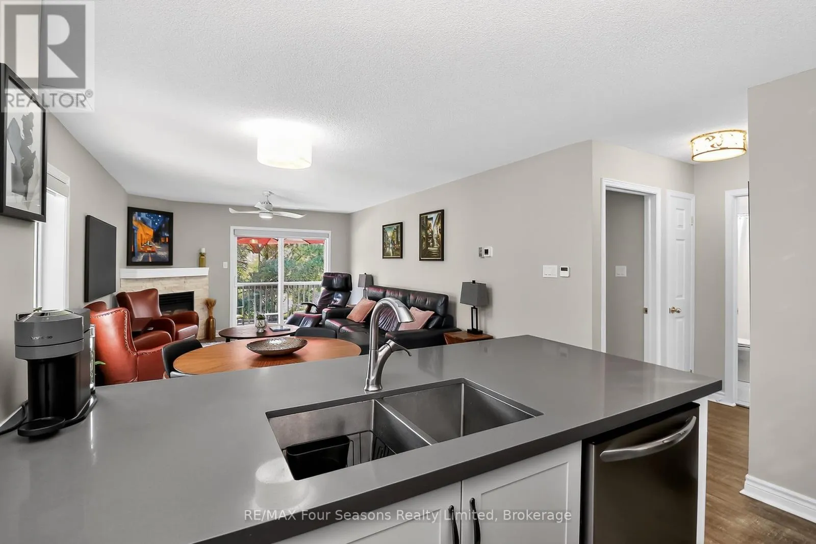 Cross Streets: Lighthouse Lane/Hwy26. ** Directions: Hwy 26W to Lighthouse Point entrance.Make first right on to Mariners Way, and first left in to cut de sac. Unit is in first building on your right, second level. Lighthouse Point; a waterfront development with a resort like setting and amenities for year round enjoyment. This corner unit has the added benefit of a large picture window in the dining area, with views of the trees. Two bedroom renovated condo on the second floor (no unit above you) with south facing balcony and two full baths. Gas heating, central air and gas fireplace. Many updates and improvements throughout. Stainless appliances and 2024 stackable washer/dryer, Ensuite bath with enlarged walk in shower, plus full four piece guest bathroom with tub/shower. A boat slip is included in the private on site marina (annual maintenance fee applies). The abundance of amenities is sure to WOW you. Walking trails along the waterfront, indoor rec centre (pool, hot tubs, fitness room, games room, library, common room with full kitchen and patio overlooking the marina), 6 dedicated Pickleball courts, 7 tennis courts, childrens playground, canoe/kayak/SUP outdoor storage, 2 beach areas, 2 outdoor swimming pools. As a boat slip owner, you will also have access to the Mariners clubhouse and its own outdoor swimming pool. Various themed events and activities are held throughout the year, encouraging community engagement and an active sociable lifestyle. (id:27476)