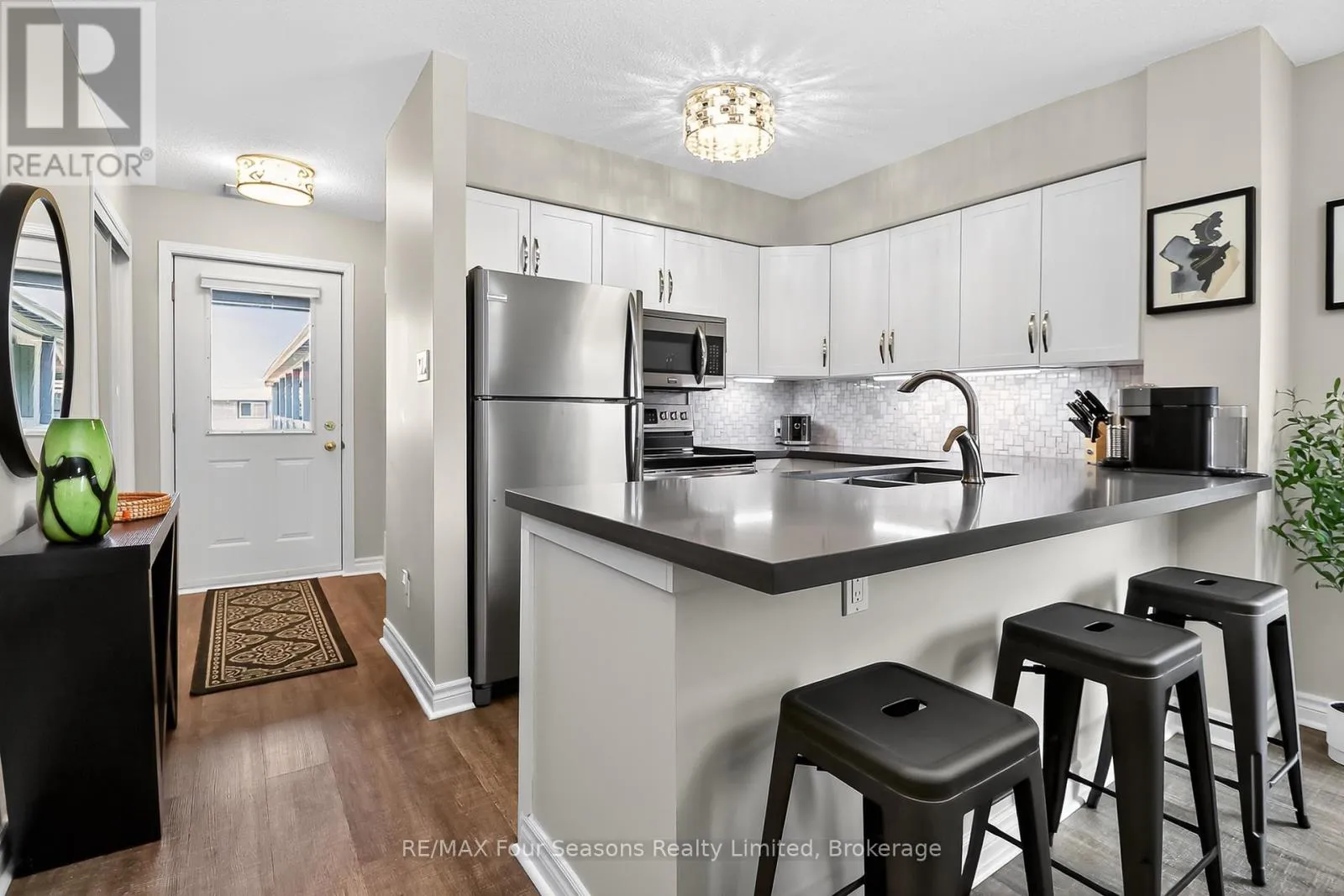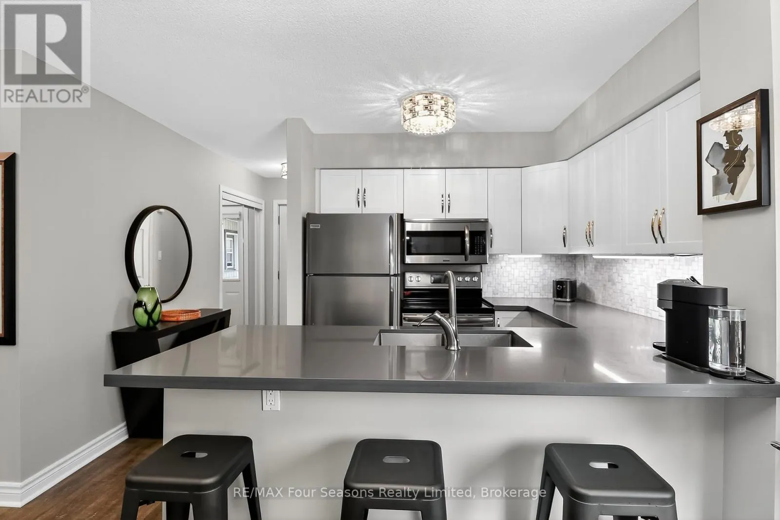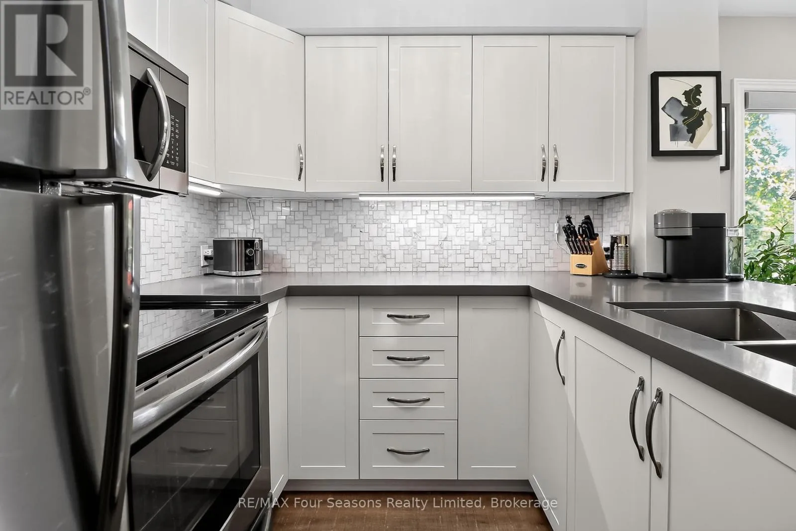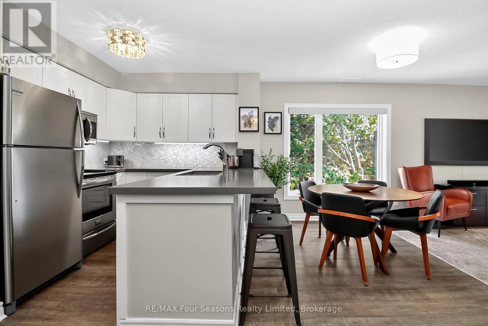 Cross Streets: Lighthouse Lane/Hwy26. ** Directions: Hwy 26W to Lighthouse Point entrance.Make first right on to Mariners Way, and first left in to cut de sac. Unit is in first building on your right, second level. Lighthouse Point; a waterfront development with a resort like setting and amenities for year round enjoyment. This corner unit has the added benefit of a large picture window in the dining area, with views of the trees. Two bedroom renovated condo on the second floor (no unit above you) with south facing balcony and two full baths. Gas heating, central air and gas fireplace. Many updates and improvements throughout. Stainless appliances and 2024 stackable washer/dryer, Ensuite bath with enlarged walk in shower, plus full four piece guest bathroom with tub/shower. A boat slip is included in the private on site marina (annual maintenance fee applies). The abundance of amenities is sure to WOW you. Walking trails along the waterfront, indoor rec centre (pool, hot tubs, fitness room, games room, library, common room with full kitchen and patio overlooking the marina), 6 dedicated Pickleball courts, 7 tennis courts, childrens playground, canoe/kayak/SUP outdoor storage, 2 beach areas, 2 outdoor swimming pools. As a boat slip owner, you will also have access to the Mariners clubhouse and its own outdoor swimming pool. Various themed events and activities are held throughout the year, encouraging community engagement and an active sociable lifestyle. (id:27476)