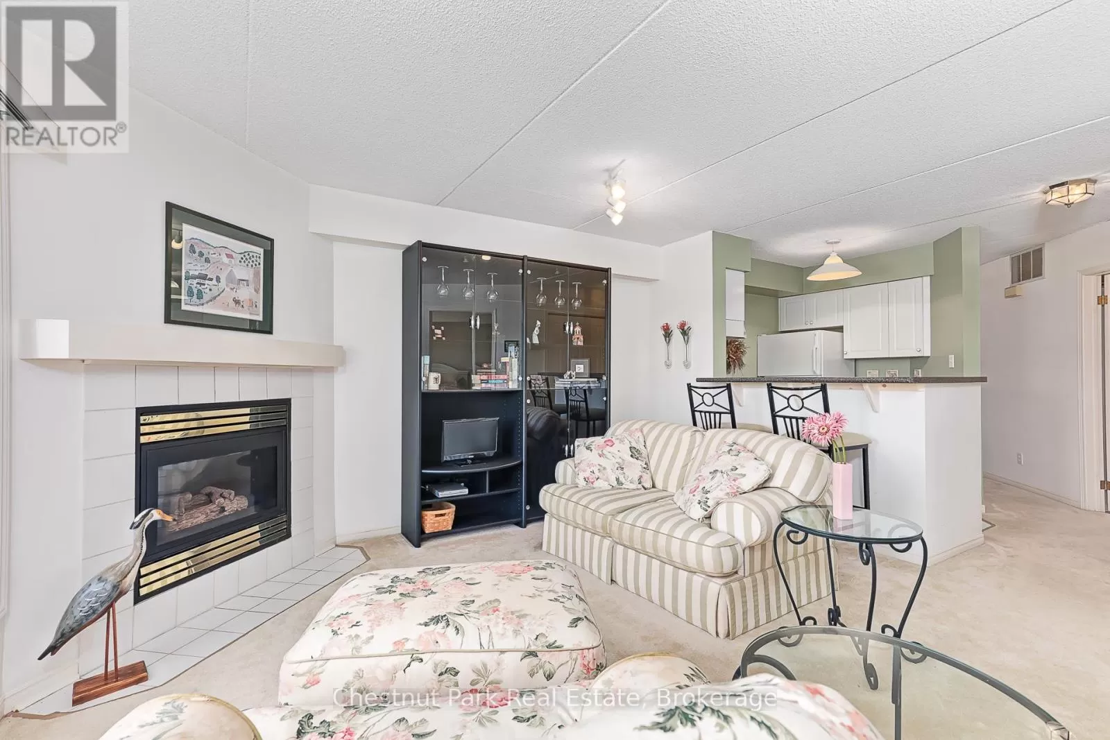 Cross Streets: Highway 26. ** Directions: Hwy 26 to LHP entry gate, straight back to Johnston Park. Welcome to 701 Johnston Park Avenue! This highly sought-after ground floor unit offers the convenience of no stairs and easy access to the waterfront and recreation center. The one-bedroom, one-bathroom layout features an open concept design, providing a perfect canvas for your personal touches. Enjoy a lovely outdoor patio surrounded by nature, and bask in the brightness of large windows that flood the space with natural light. The unit is equipped with a gas fireplace, a four-piece bathroom, and a primary bedroom with a spacious closet. This property is an excellent choice for those seeking a low-maintenance and economical living option. Experience a wealth of on-site amenities, including two private beaches, nine tennis courts (which include pickleball facilities), and two outdoor pools. Enjoy access to a private marina and over 2 kilometers of waterfront walking trails along Georgian Bay. Additionally, the expansive recreation center features an indoor pool, hot tubs, a sauna, a party room, a fitness center, a children's games room, and much more! Collingwood is renowned for its premier downhill skiing, hiking, and vibrant shopping and dining opportunities. The development boasts a balanced mix of full-time and part-time residents, with rental restrictions in place to ensure ultimate enjoyment for owners. Don't miss this fantastic opportunity! (id:27476)