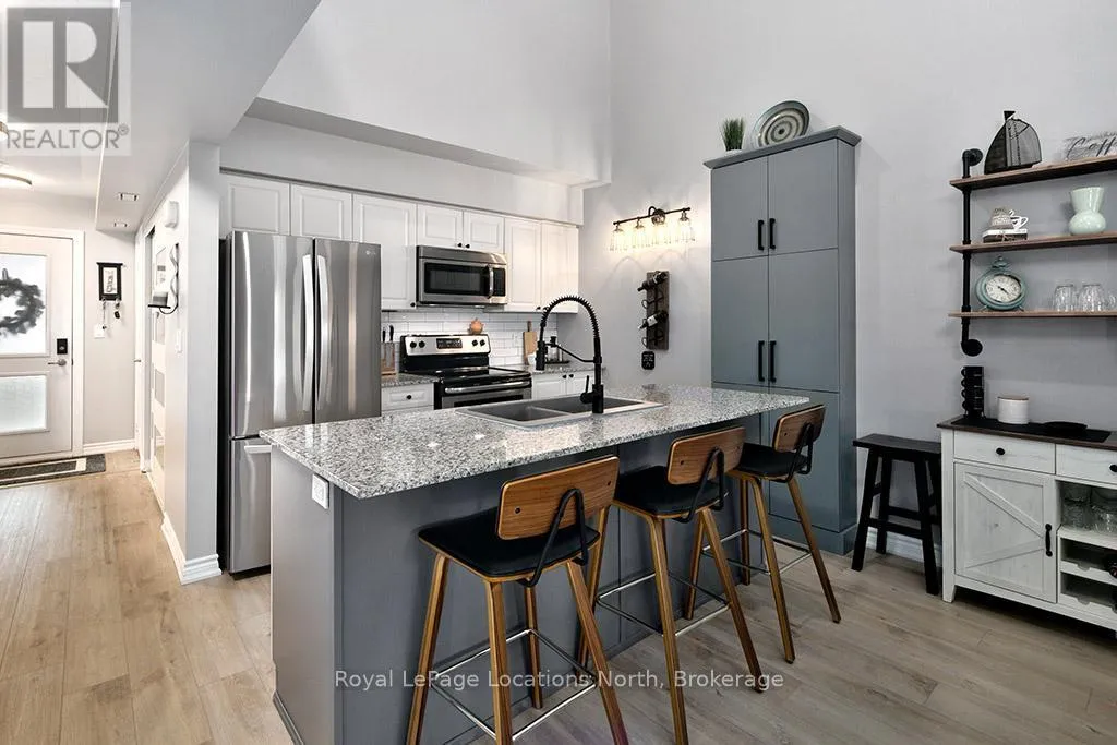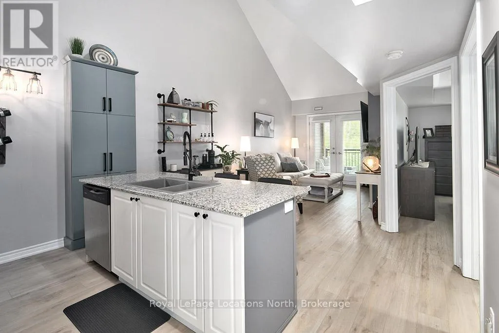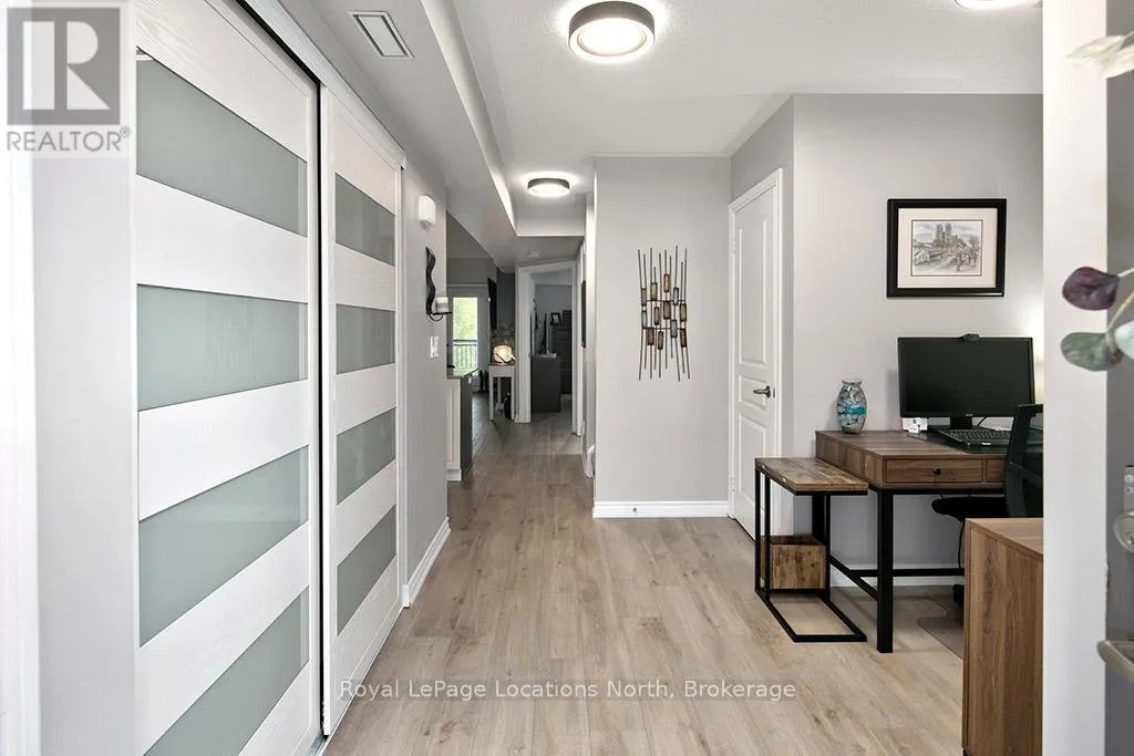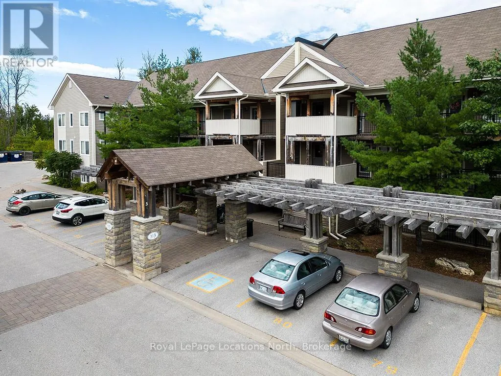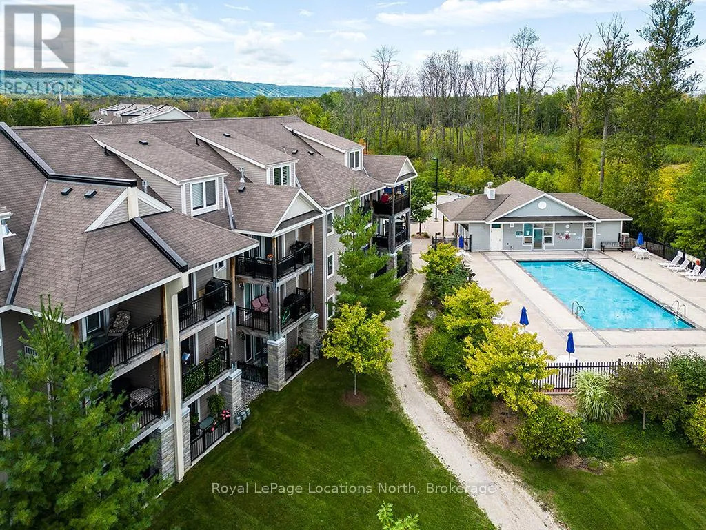 Cross Streets: Hwy 26 and Cranberry Trail. ** Directions: Hwy 26 to Cranberry Trail to Brandy Lane Dr. Welcome to this beautifully cared for 2-bedroom, 2-bathroom condo located in the sought-after Wyldewood community in Collingwood. Perfect as a full-time residence or weekend escape, this turn-key third-floor suite offers modern comfort, thoughtful upgrades, and access to the very best of the Collingwood lifestyle. Ideally situated in the desirable Brandy Lane neighbourhood, this bright and airy unit features a spacious open-concept layout with large patio doors that open up to a lovely balcony. A modern kitchen equipped with stainless steel appliances, granite countertops, and a generous island with breakfast counter opens into the dining and living areas. A cozy gas fireplace adds warmth and ambiance, creating an inviting space to relax or entertain. Enjoy your private covered balcony for a peaceful morning coffee or just reading a book, and featuring a gas BBQ hookup perfect for year-round outdoor cooking. The spacious primary suite includes a large closet and a private 4-piece ensuite bathroom, while the second bedroom is ideal for guests. There is also a den which would be perfect for a home office. A second full bathroom, in-suite laundry and central air conditioning provide everyday comfort and convenience. Additional highlights include elevator access, a large exclusive-use storage locker just steps from the front door ideal for skis, bikes, and seasonal gear and dedicated parking located right outside the buildings main entrance. Residents can enjoy access to the year-round heated outdoor pool, Collingwood and Georgian walking/biking trails. Just minutes from Georgian Bays waterfront, downtown Collingwood, Blue Mountain Resort, and the charming towns of Thornbury, Meaford, and Creemore, this location is a hub for swimming, sailing, skiing, hiking, biking, golfing, shopping, and dining. Don't miss your opportunity to experience the ultimate in four-season living in one of Collingwood's most coveted communities. (id:27476)