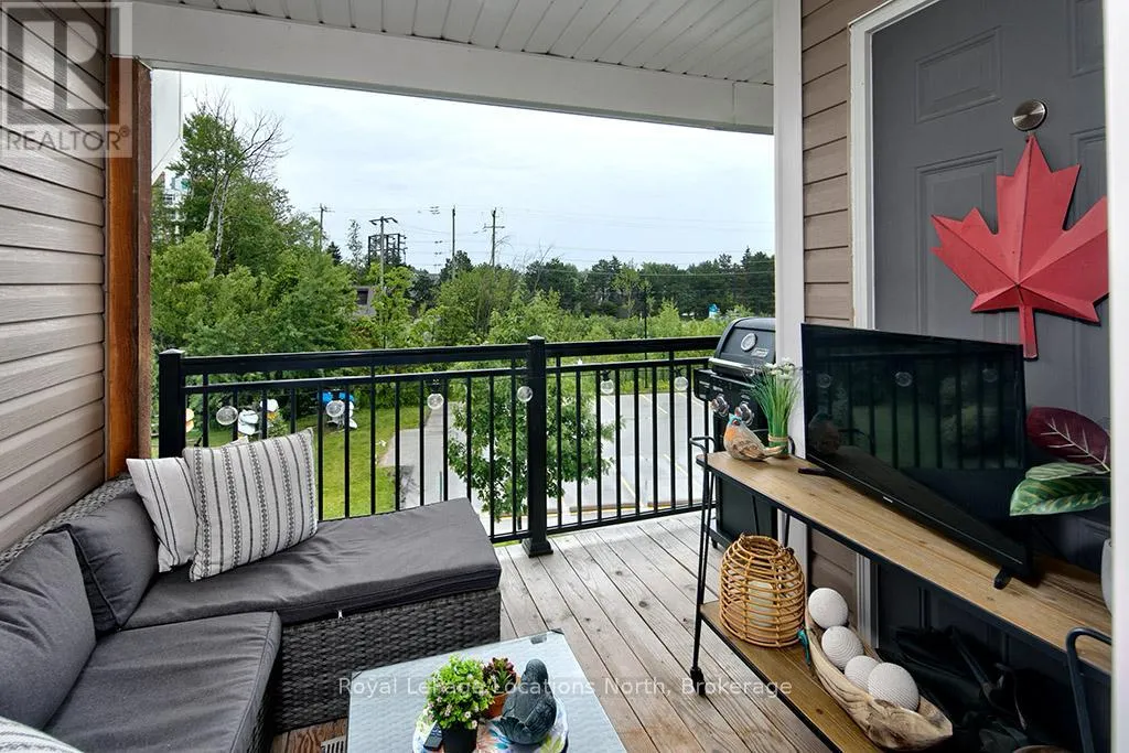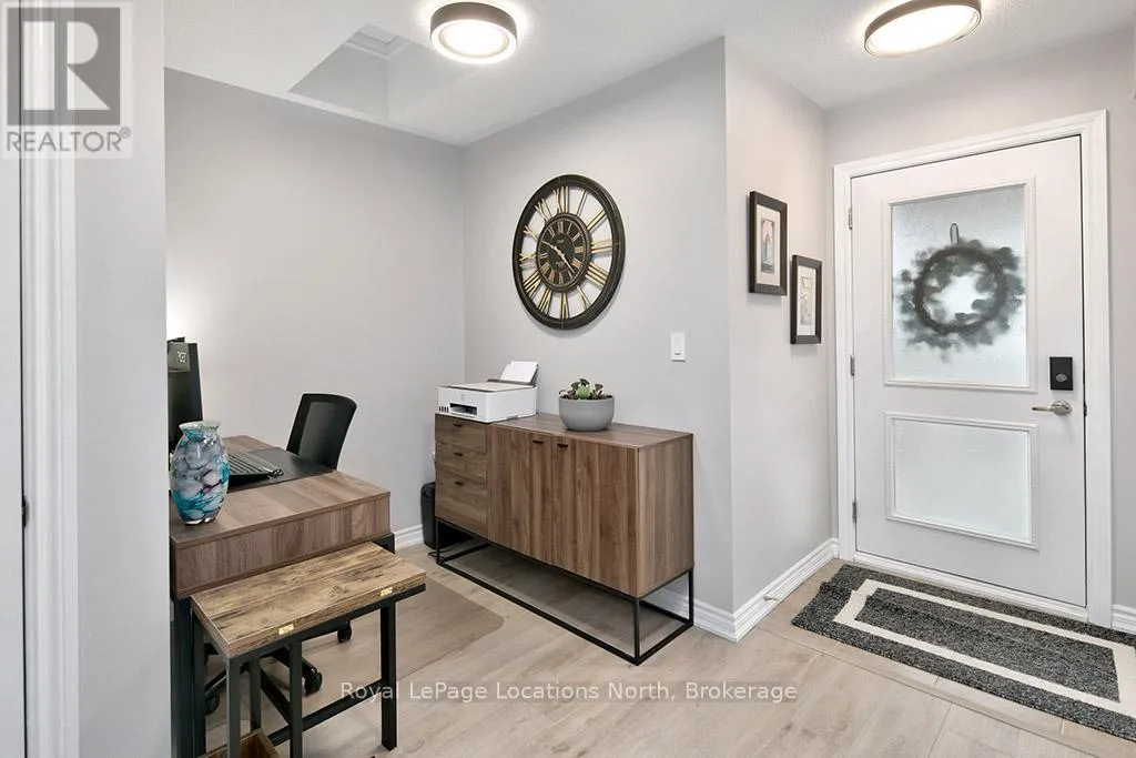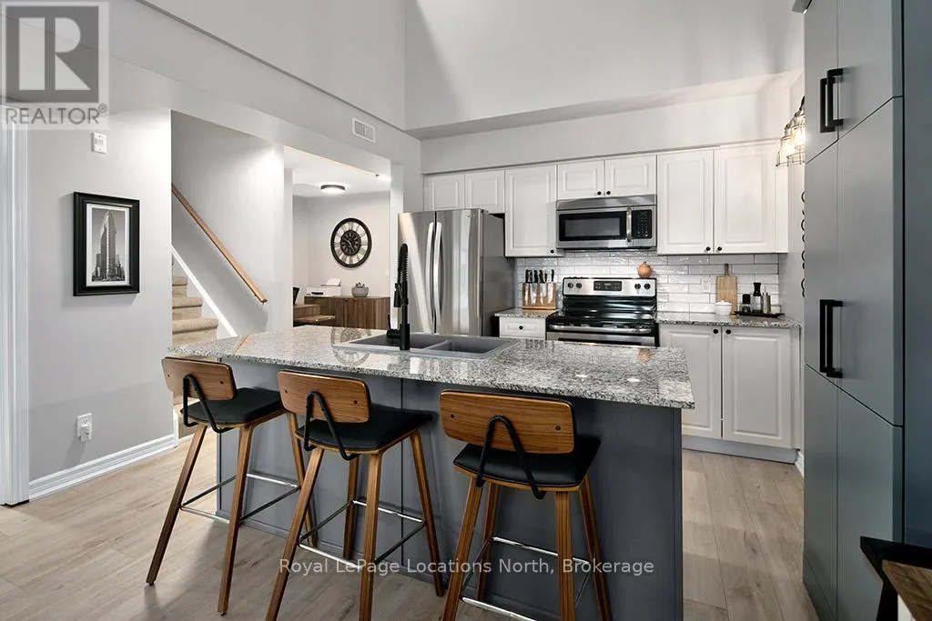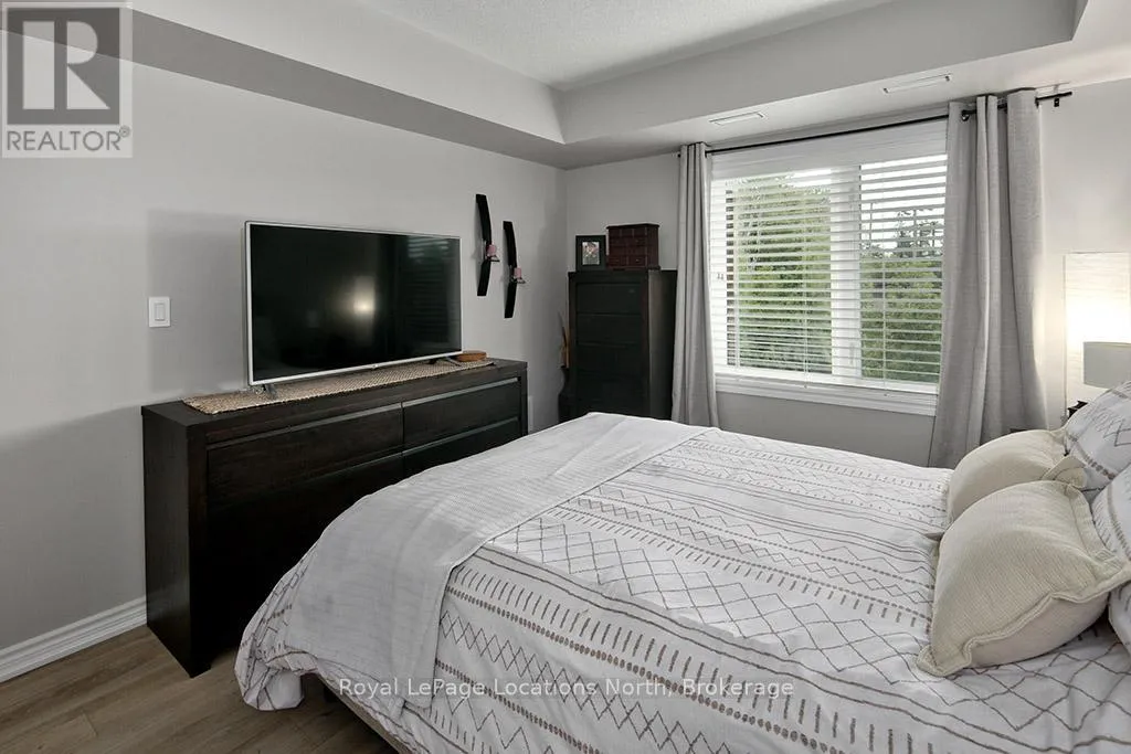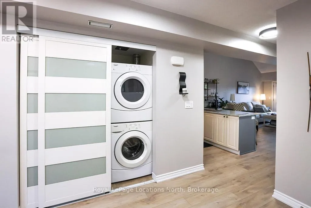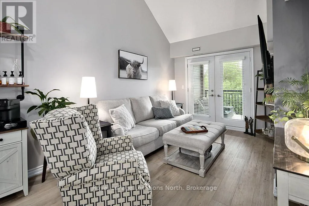 Cross Streets: Hwy 26 and Cranberry Trail. ** Directions: Hwy 26 to Cranberry Trail to Brandy Lane Dr. Welcome to this beautifully cared for 2-bedroom, 2-bathroom condo located in the sought-after Wyldewood community in Collingwood. Perfect as a full-time residence or weekend escape, this turn-key third-floor suite offers modern comfort, thoughtful upgrades, and access to the very best of the Collingwood lifestyle. Ideally situated in the desirable Brandy Lane neighbourhood, this bright and airy unit features a spacious open-concept layout with large patio doors that open up to a lovely balcony. A modern kitchen equipped with stainless steel appliances, granite countertops, and a generous island with breakfast counter opens into the dining and living areas. A cozy gas fireplace adds warmth and ambiance, creating an inviting space to relax or entertain. Enjoy your private covered balcony for a peaceful morning coffee or just reading a book, and featuring a gas BBQ hookup perfect for year-round outdoor cooking. The spacious primary suite includes a large closet and a private 4-piece ensuite bathroom, while the second bedroom is ideal for guests. There is also a den which would be perfect for a home office. A second full bathroom, in-suite laundry and central air conditioning provide everyday comfort and convenience. Additional highlights include elevator access, a large exclusive-use storage locker just steps from the front door ideal for skis, bikes, and seasonal gear and dedicated parking located right outside the buildings main entrance. Residents can enjoy access to the year-round heated outdoor pool, Collingwood and Georgian walking/biking trails. Just minutes from Georgian Bays waterfront, downtown Collingwood, Blue Mountain Resort, and the charming towns of Thornbury, Meaford, and Creemore, this location is a hub for swimming, sailing, skiing, hiking, biking, golfing, shopping, and dining. Don't miss your opportunity to experience the ultimate in four-season living in one of Collingwood's most coveted communities. (id:27476)