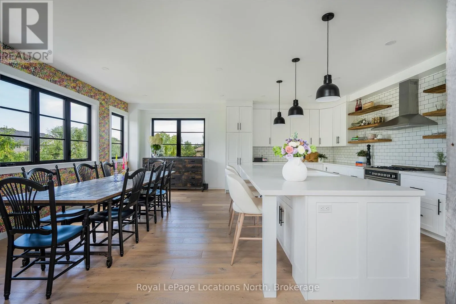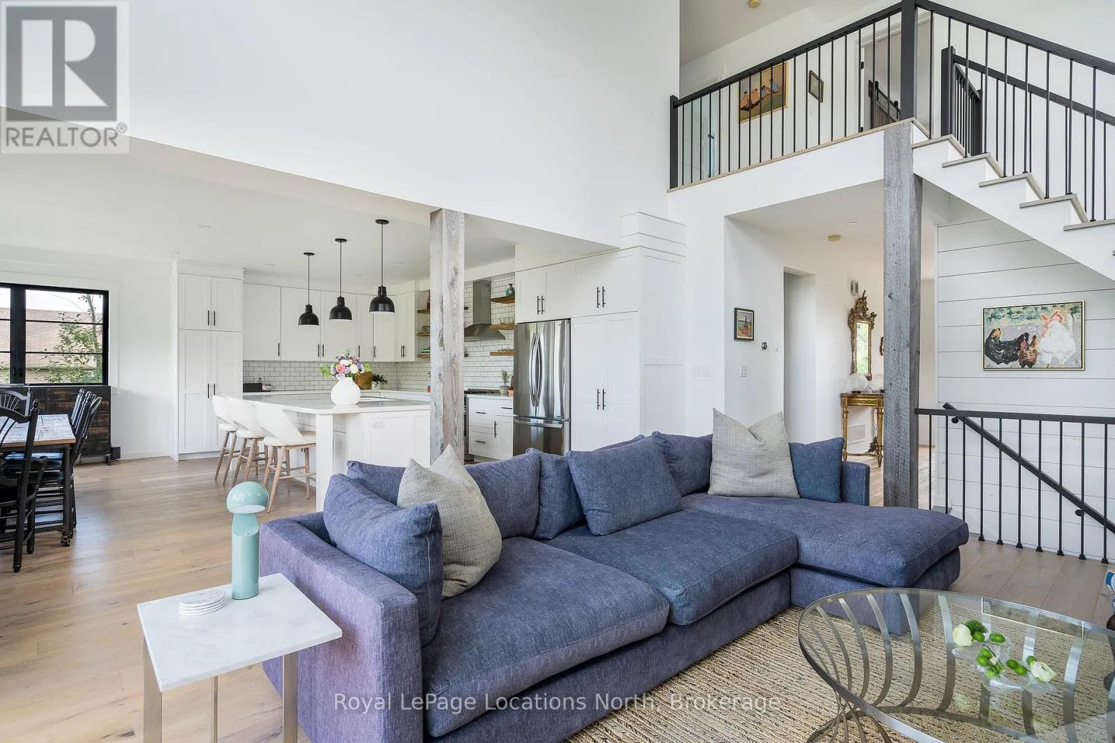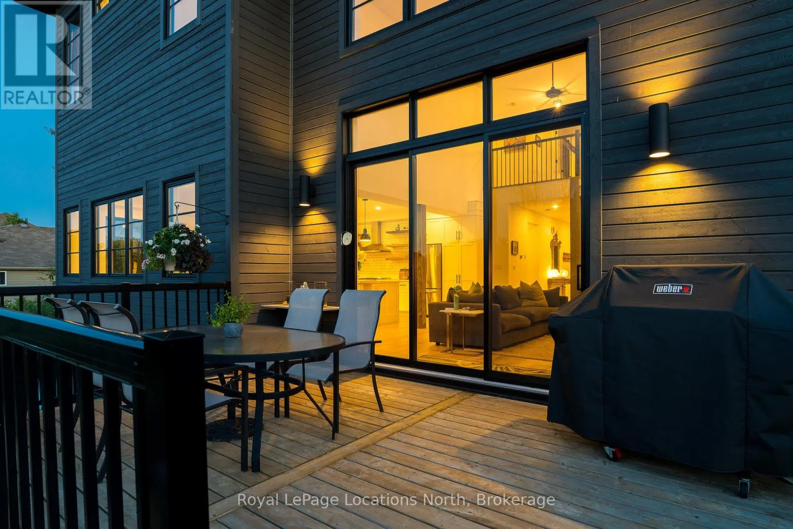 Cross Streets: Hurontario & Stanley Streets. ** Directions: Hurontario Street to west on Stanley Street, arrive at 49 Stanley. Welcome to one of Collingwood's most exclusive addresses, where elegance and comfort blend seamlessly in this custom-built two-storey home. Set on an impressive 66 x 167 ft full town lot, this residence offers over 3,700 sq ft of beautifully finished living space, with 5 bedrooms and 4 bathrooms designed for modern family living and entertaining. From the moment you step inside, soaring ceilings and sun-filled windows create a sense of openness and light. The main floor showcases wide-plank white oak engineered hardwood and thoughtful details throughout. At the heart of the home, the gourmet kitchen invites gathering with its quartz countertops, oversized island, and high-end appliances. The living room makes a statement with its dramatic 20-ft ceiling, cozy gas fireplace, and expansive sliding doors that lead to a private and peaceful backyard. Upstairs, retreat to the luxurious primary suite with remote-controlled blinds, a spacious walk-in closet, and a spa-inspired ensuite featuring double sinks, glass shower, and soaker tub. Two additional spacious bedrooms share a stylish Jack & Jill bathroom, perfect for family or guests. The fully finished lower level extends the living space with a generous recreation room, two more bedrooms, and a five-piece bath. Modern touches like shiplap and barnboard accents bring warmth and character throughout. Outdoors, enjoy a two-tiered deck and hot tub surrounded by nature. The large, private yard would be perfect for a pool. With amazing neighbours, a walkable location to Collingwood's best schools and downtown, and endless style and comfort, this home is truly a must see. (id:27476)