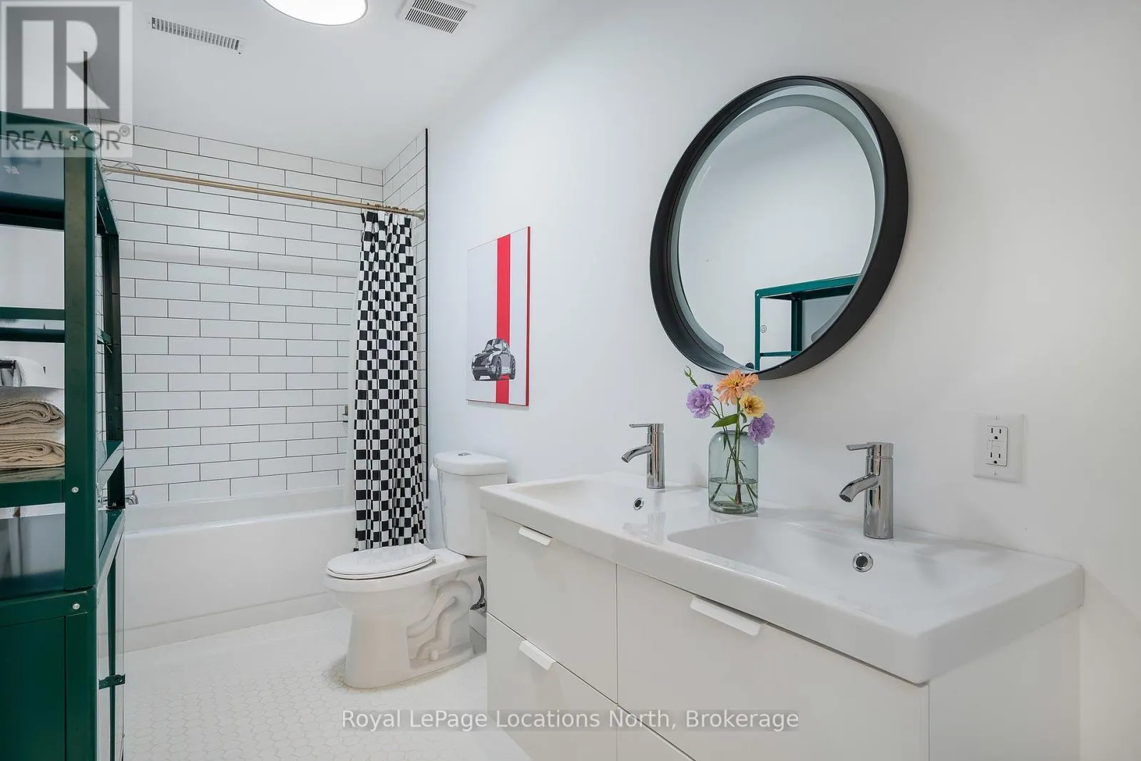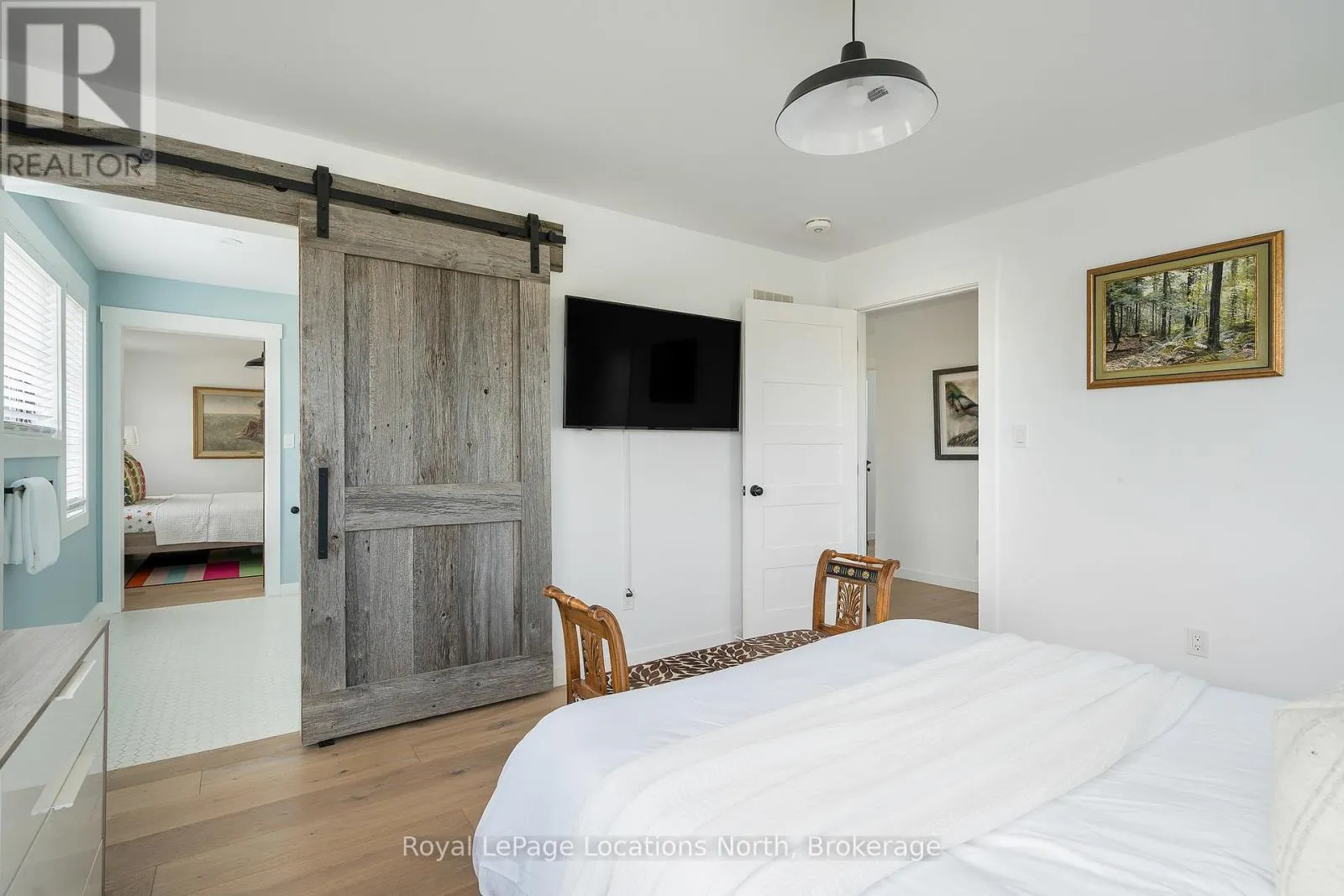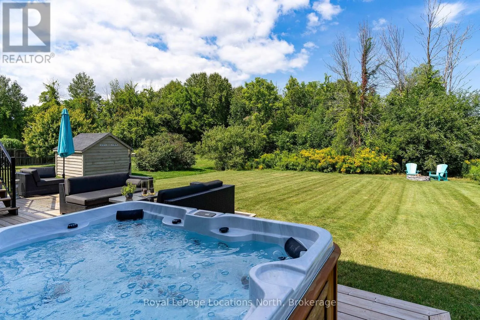 Cross Streets: Hurontario & Stanley Streets. ** Directions: Hurontario Street to west on Stanley Street, arrive at 49 Stanley. Welcome to one of Collingwood's most exclusive addresses, where elegance and comfort blend seamlessly in this custom-built two-storey home. Set on an impressive 66 x 167 ft full town lot, this residence offers over 3,700 sq ft of beautifully finished living space, with 5 bedrooms and 4 bathrooms designed for modern family living and entertaining. From the moment you step inside, soaring ceilings and sun-filled windows create a sense of openness and light. The main floor showcases wide-plank white oak engineered hardwood and thoughtful details throughout. At the heart of the home, the gourmet kitchen invites gathering with its quartz countertops, oversized island, and high-end appliances. The living room makes a statement with its dramatic 20-ft ceiling, cozy gas fireplace, and expansive sliding doors that lead to a private and peaceful backyard. Upstairs, retreat to the luxurious primary suite with remote-controlled blinds, a spacious walk-in closet, and a spa-inspired ensuite featuring double sinks, glass shower, and soaker tub. Two additional spacious bedrooms share a stylish Jack & Jill bathroom, perfect for family or guests. The fully finished lower level extends the living space with a generous recreation room, two more bedrooms, and a five-piece bath. Modern touches like shiplap and barnboard accents bring warmth and character throughout. Outdoors, enjoy a two-tiered deck and hot tub surrounded by nature. The large, private yard would be perfect for a pool. With amazing neighbours, a walkable location to Collingwood's best schools and downtown, and endless style and comfort, this home is truly a must see. (id:27476)