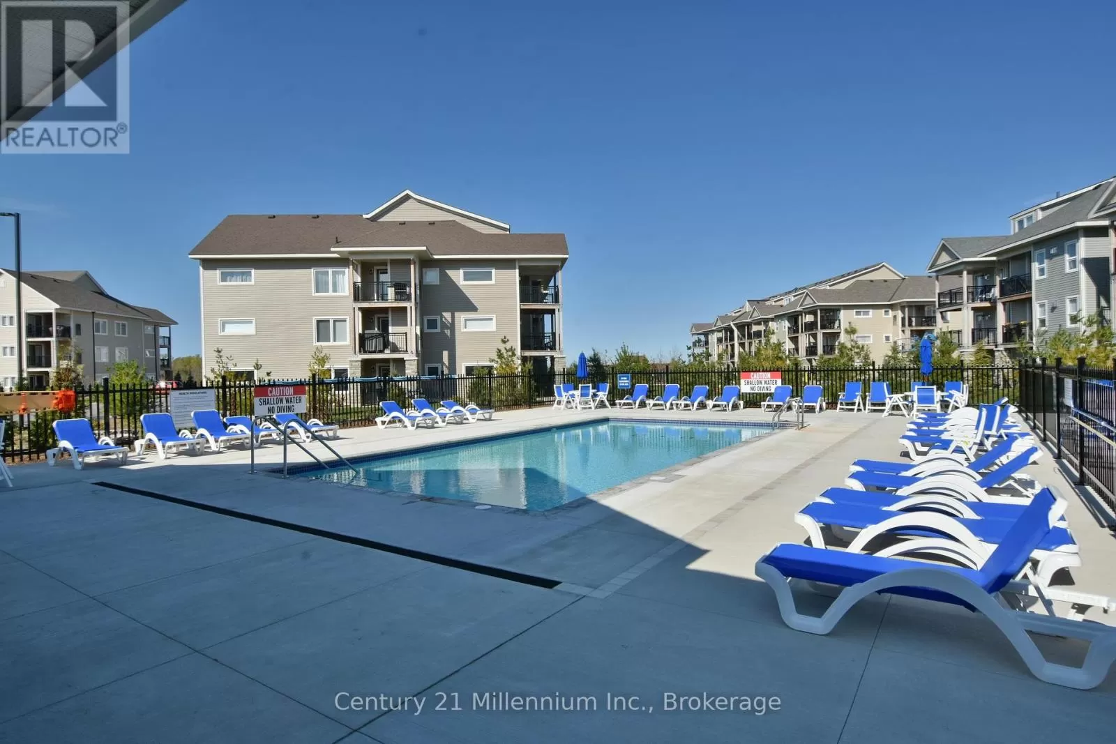 Cross Streets: Highway 26 & Cove Court. ** Directions: From Collingwood towards Blue Mountain along highway 26, turn right on Cove Court, left on Anchorage to building 5 on the right. Parking spaces 172 & 221 assigned to this property. Visitor parking near front of complex. WINTER SKI SEASON RENTAL IN WYLDEWOOD COVE - Beautifully furnished 2 bedroom, 2 bathroom end unit located on the second floor with elevator access featuring gorgeous views of Georgian Bay from the living room and kitchen areas + 2 covered balconies. Community offers a year-round heated outdoor pool, gym and is located a short drive from downtown Collingwood and ski hills. This unit also comes with two assigned parking spots. Pets considered! Please note, wooden sleigh bed in second bedroom has been replaced by single over double bunk bed, as depicted in one of the photos, further, round table in living room has been replaced with a square dining table that folds out with leaves to comfortably seat 6 people. Available December 1st to March 31st. Utilities in addition to rent (id:27476)
