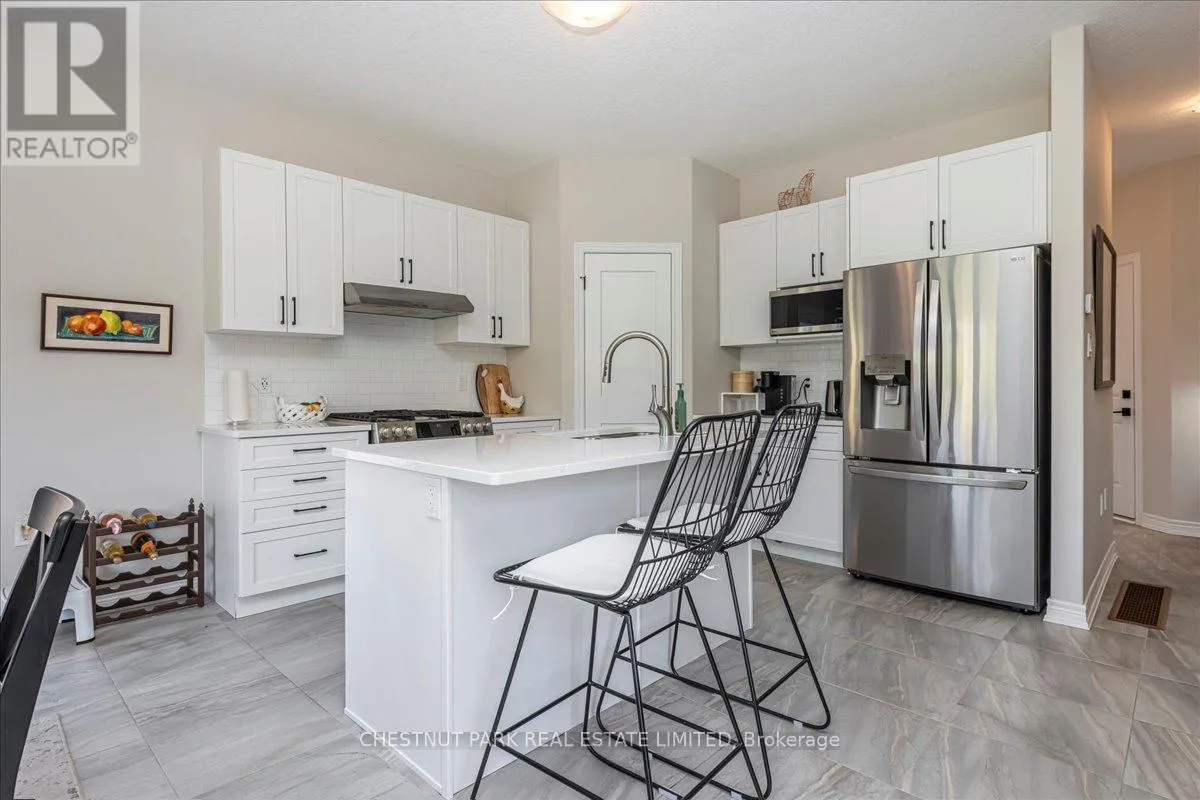 Plewes Dr/High St Welcome to this beautiful single family detached home perfect for your family for the ski season. Located a short distance from the Town of Collingwood, Osler Ski Club and a 12 minute drive to Blue Mountain Ski Resort. This elegantly furnished rental includes three bedrooms and three bathrooms over two levels. The primary bedroom includes south facing windows, a walk in closet, and an ensuite complete with a soaker tub. The open concept family room includes an electric fireplace and generous seating for apres ski. A tiled front foyer is complete with a two piece powder room and large closet. One indoor garage parking space and two driveway spaces included. (id:27476)