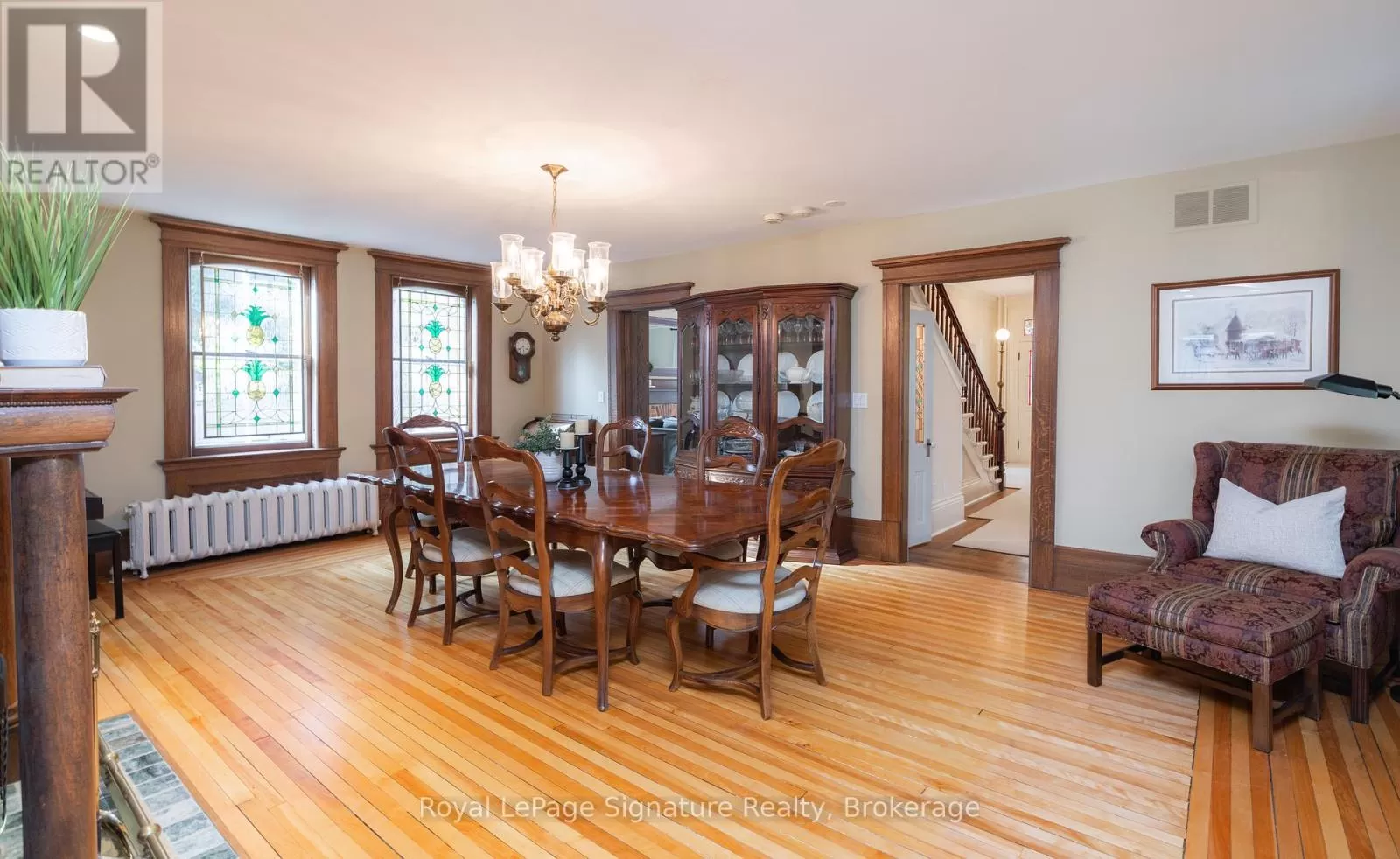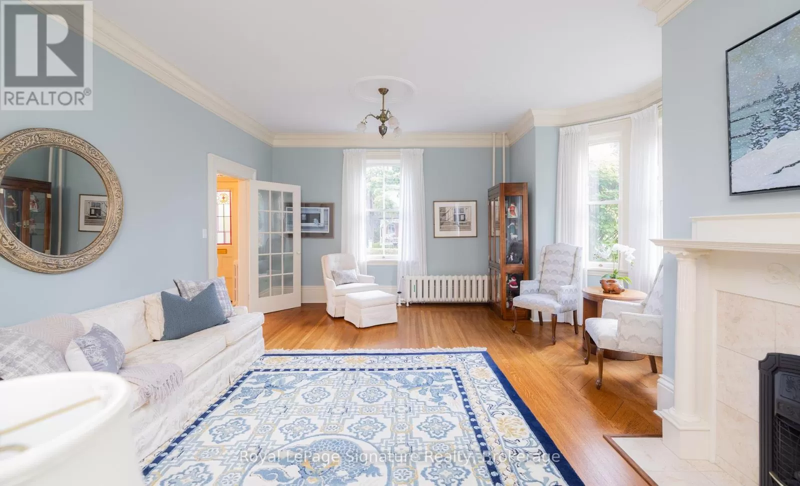 Cross Streets: Birch. ** Directions: North on Hurontario, West on Third Street, Turn south on Birch as driveway is off Birch street. See attached supplement for screenshot of driveway entrance. Experience the timeless elegance of this historic century home, perfectly situated in the heart of Collingwood. Set on a rare oversized lot of just under half an acre, this beautifully restored residence offers both prestige and convenience, steps to the downtown core with its vibrant restaurants, shops, cafés, farmers market, and the local library. Inside, the home exudes character and sophistication. Original millwork, soaring ceilings, and light-filled principal rooms reflect a level of craftsmanship rarely found today, while thoughtful updates bring modern comfort to every corner. With 5 spacious bedrooms, 2 fully updated bathrooms, and 2 additional main floor powder rooms, the home is perfectly suited for both family living and entertaining guests. The well appointed kitchen features top-of-the-line appliances and seamless flow for casual meals or elegant dinner parties. Beyond the interior, lifestyle takes centre stage, relax in the screened-in porch, unwind in the gazebo, or enjoy the privacy of lush, manicured gardens that create a sanctuary just steps from downtown. With an attached double-car garage and an unmatched in-town property size, this offering is as rare as it is refined. A true Collingwood treasure where historic charm meets modern luxury in an unbeatable walkable location. (id:27476)
