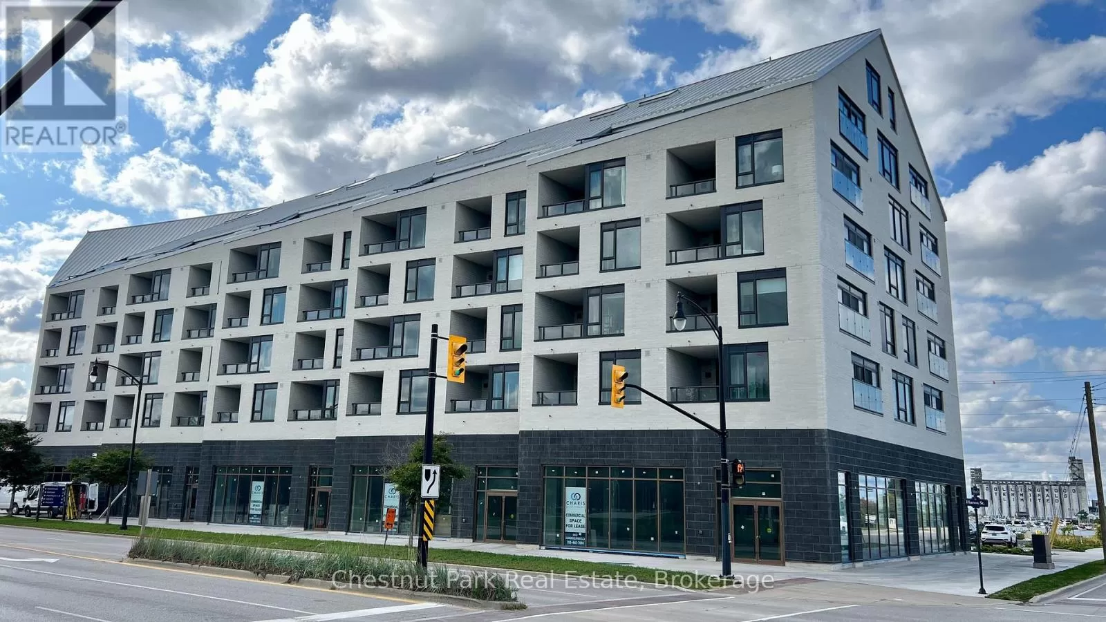 Cross Streets: Huron St & Heritage Dr. ** Directions: N/W corner of Hwy 26 (Huron St) & Heritage Dr - ground floor of Harbour House condominium. Rare opportunity to lease the last and final commercial suite available at the newly constructed Harbour House Condominiums. Total size of Suite 102 total is 5,675 SF, however the landlord is able to divide the space up if desired. Located at the N/W corner of Huron Street (Highway #26) and Heritage Drive, this location enjoys a very high number of vehicular and pedestrian traffic. Suite 102 is directly adjacent to the east of Westland Insurance office. This suite has direct frontage/exposure on Highway 26 with private reserved surface parking available at the rear of the building plus the underground P1 paid public parking available featuring 100 spots with an elevator to bring shoppers to the ground level. Wide range of uses are permitted. (id:27476)