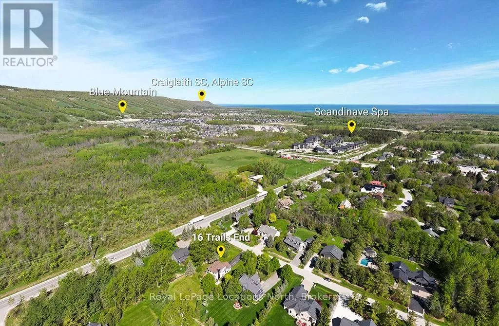 Cross Streets: Grey Road 19 & Trails End. ** Directions: Hwy 26 To Grey Road 19 South to Trails End East - See Sign At 16 Trails End. Now offered at a New Price - your chance to live the coveted Blue Mountain lifestyle awaits. Set on half an acre in the prestigious Mountain View Estates, this beautifully updated 3-bed, 2.5-bath home offers the ultimate four-season lifestyle - with the areas best outdoor amenities at your fingertips. Enjoy world-class skiing at Blue Mountain, unwind at Scandinave Spa, bike or hike the nearby trails, or paddle on Georgian Bay - all just minutes away. Conveniently located near Collingwood's shops and services, and a short drive to the charming town of Thornbury. This sun-drenched property boasts coveted south-west backyard exposure, flooding the home with natural light and offering beautiful afternoon sun. One of the rare few, this home includes deeded access to a private, forested 6-acre parcel with a meandering creek and peaceful trail system - perfect for scenic dog walks or cross-country skiing, right from your doorstep. Inside, a series of thoughtful renovations enhance comfort and style: new flooring, paint, trim, pot lights, water purification system, furnace - heat pump - water heater (2024), and a newly finished rec room in the lower level (2025). The main floor features a charming sitting area with an architecturally interesting window connecting to the formal dining space. At the back, the open-concept kitchen, eat-in nook, and cozy TV room are framed by walls of windows and walk-out access to the full length back deck - ideal for entertaining on warm summer nights. A powder room and laundry with garage access complete this level. Upstairs, the spacious primary retreat offers a walk-in closet and spa-like ensuite, while two additional bedrooms share a 4-piece bath. The lower level includes a newly finished recreation room plus an expansive unfinished area ready for your vision - or perfect as-is for storage. Whether you ski, bike, hike, or simply enjoy nature, this is a rare opportunity to live the best of the Blue Mountain lifestyle. (id:27476)