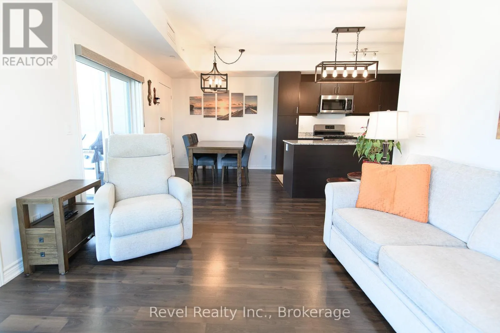Cross Streets: HWY 26 / Cranberry Trail East. ** Directions: HWY 26 to Cranberry Trail East to Spooner. Discover your Collingwood escape, where every day feels like a vacation. This 1,015 sq. ft. 2-bedroom plus den condo combines comfort, functionality, and stunning views in one inviting space. With bright south-west exposure, you'll enjoy seasonal golf course views and a perfect vantage point over the outdoor pool from the expansive 8 x 17 balcony, complete with a gas BBQ hookup.Inside, the open-concept living, kitchen, and dining area is highlighted by 9 ceilings, custom Hunter Douglas blinds, carpet-free flooring, and a stylish kitchen featuring granite countertops, a gas stove, stainless steel appliances, and an upgraded Whirlpool fridge. Convenience is key with in-suite laundry. The primary bedroom offers a walk-in closet and private ensuite, and every room is designed to maximize natural light and capture a view. Living here is about more than just the home; its about the lifestyle. Start your day with a workout or run at the clubhouse fitness centre, spend summer afternoons by the pool, cycle the Georgian Trail, take in the boats on Georgian Bay, or hit the slopes at Blue Mountain in winter. Underground parking keeps your vehicle clear of snow, while a heated breezeway ensures safe, ice-free access. For added convenience, a 5 x 7 storage locker is located right beside the unit.With Georgian Bay, golf, shopping, restaurants, and year-round community events only minutes away, this is the perfect place to enjoy Collingwood in every season. Maintenance fees include access to the outdoor pool, fitness centre with accessible shower/change facilities, and all common elements. (id:27476)