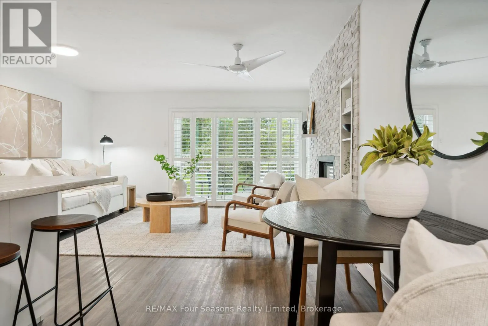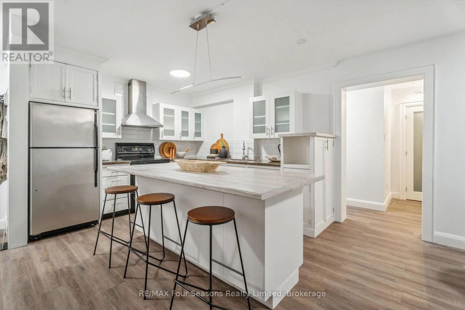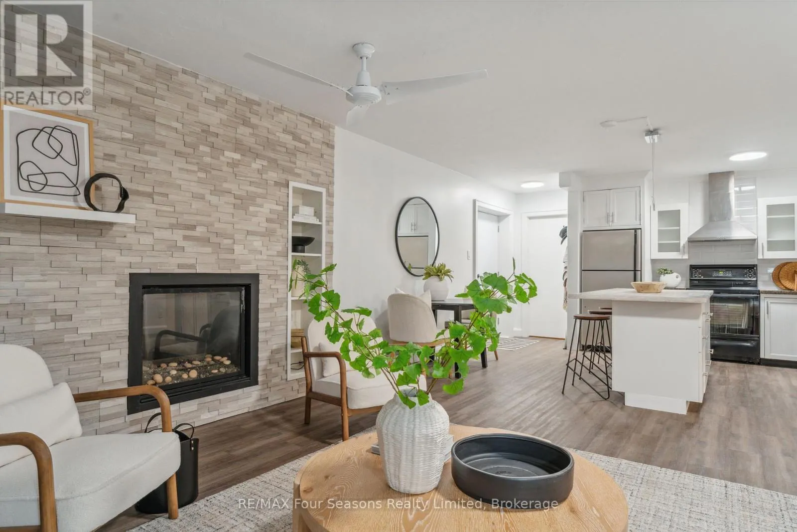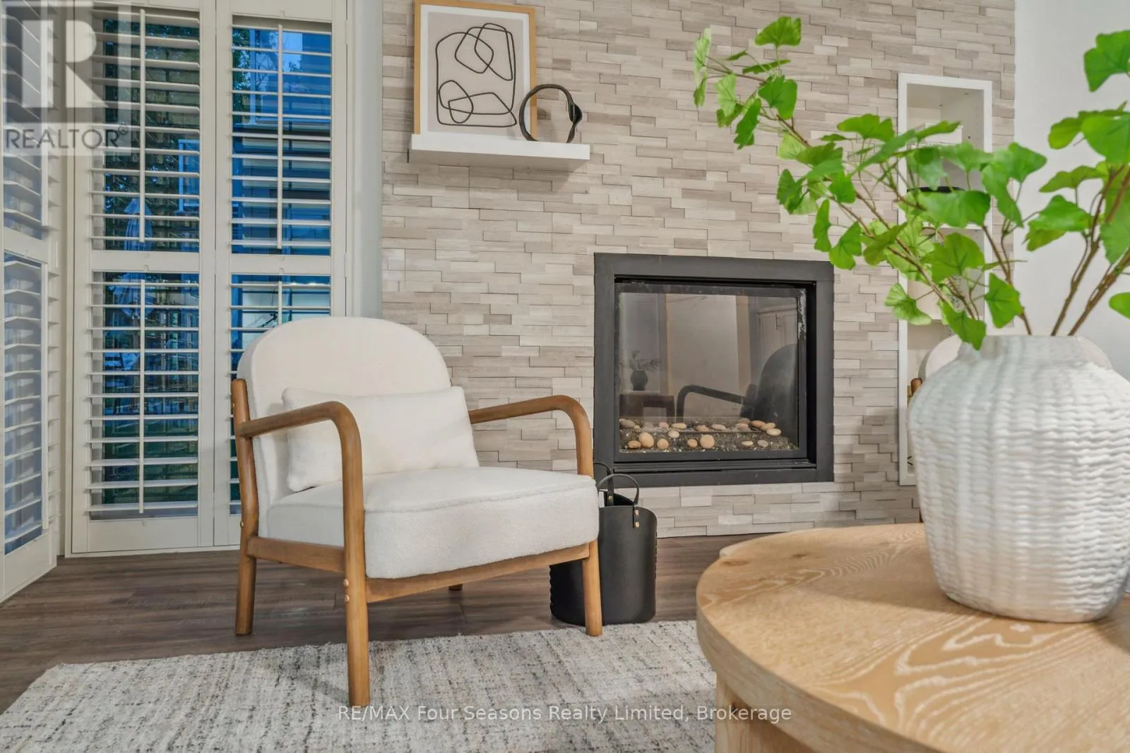Cross Streets: Highway 26 West and Trott Boulevard. ** Directions: Highway 26 West to Trott Boulevard. Welcome to The Cove, one of Collingwood's most desirable waterfront communities, where Georgian Bay is right outside your door and four-season adventure is always within reach. This spacious 2-bedroom, 2-bath condominium offers a relaxed, low-maintenance lifestyle with stunning waterfront living and an unbeatable location. Step inside and you're greeted by an open-concept living space. The kitchen is thoughtfully designed with modern appliances, a breakfast bar for casual dining, and seamless flow into the dining and living areas. Large windows frame views of the bay, while a cozy gas fireplace sets the stage for après-ski evenings with friends and family. From the living room, walk out to your private patio and enjoy morning coffee as the sun rises, or take in breathtaking sunsets over the water. The primary suite offers a peaceful retreat, complete with an ensuite bath and generous closet space and a second walkout patio. A second bedroom and full bath provide comfort for guests or family. With in-suite laundry, ample storage, and dedicated parking, everyday living is made simple. Enjoy peace of mind with major exterior upgrades completed in 2024, including new siding, roof, and insulation. Life at The Cove means more than just a home, its a lifestyle. Launch a kayak or paddle board steps from your door, cycle along the Georgian Trail, or explore Collingwood's vibrant downtown shops and restaurants. In winter, skiing at Blue Mountain is only minutes away, followed by evenings relaxing fireside. Golf courses, marinas, and private nature trails surround you, ensuring endless opportunities to enjoy everything Southern Georgian Bay has to offer. Whether you're looking for a full-time residence, a weekend retreat, or a seasonal getaway, 44 Trott Boulevard, Unit #7 at The Cove combines comfort, style, and location for the ultimate Collingwood experience. Condo fees include Bell Fibe Better TV with Crave + 1.5 GB unlimited internet. (id:27476)