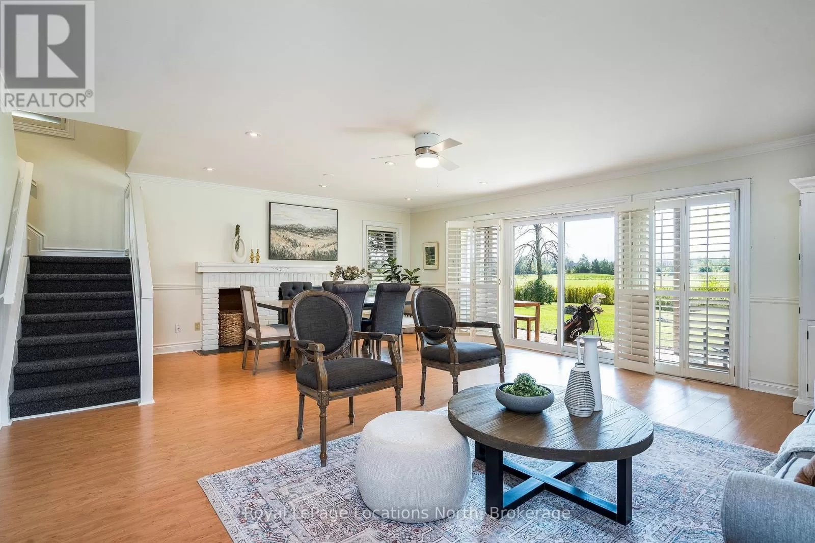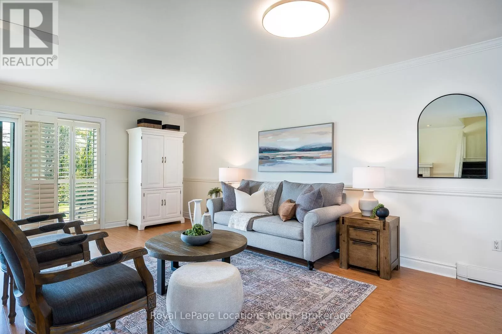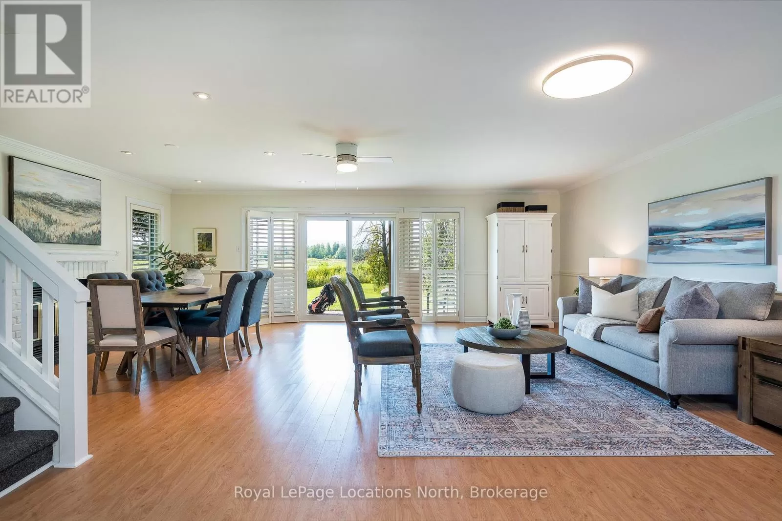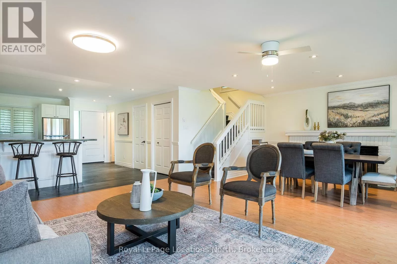 Cross Streets: Dawson Drive/Oxbow Crescent. ** Directions: Head West on Highway 26 towards Thornbury, turn left on Keith Ave, Right on Dawson Dr, left on Oxbow Cres to #572. Welcome to this gorgeous 2-level, 3 bedroom/2.5 bath end unit condo, with spectacular golf course and escarpment views! Offering over 1,600 square feet, with an open-concept main floor, this home is perfect for both entertaining and enjoying tranquil, private moments. Nestled in a quiet crescent within the Living Stone Resort community (formerly Cranberry) in Collingwood, the kitchen seamlessly flows into the expansive and light-filled living and dining areas, and is enhanced by a cozy wood burning fireplace. Sliding glass doors, with stylish California shutters, lead to a patio overlooking the adjacent golf course - perfect for enjoying a morning coffee or unwinding at the end of the day. Upstairs, the spacious primary bedroom offers a peaceful retreat with a private balcony and a 3-piece en-suite bath. Two additional bedrooms and a 3-piece bath complete the upper level. The main floor also features a convenient laundry room and powder room. Outside, a walk-in storage locker provides ample space for skis, bikes, etc. This home is ideally located beside the golf course, just steps to scenic trails, and the charming shops and restaurants at Cranberry Mews. Georgian Bay and downtown Collingwood are a short drive or bike ride away, and skiing is just 10 minutes away, making this the perfect four-season retreat. Exclusive parking (1 space) and visitor spots add to the convenience. Don't miss the opportunity to experience the Collingwood lifestyle in this beautifully appointed condo! (id:27476)
