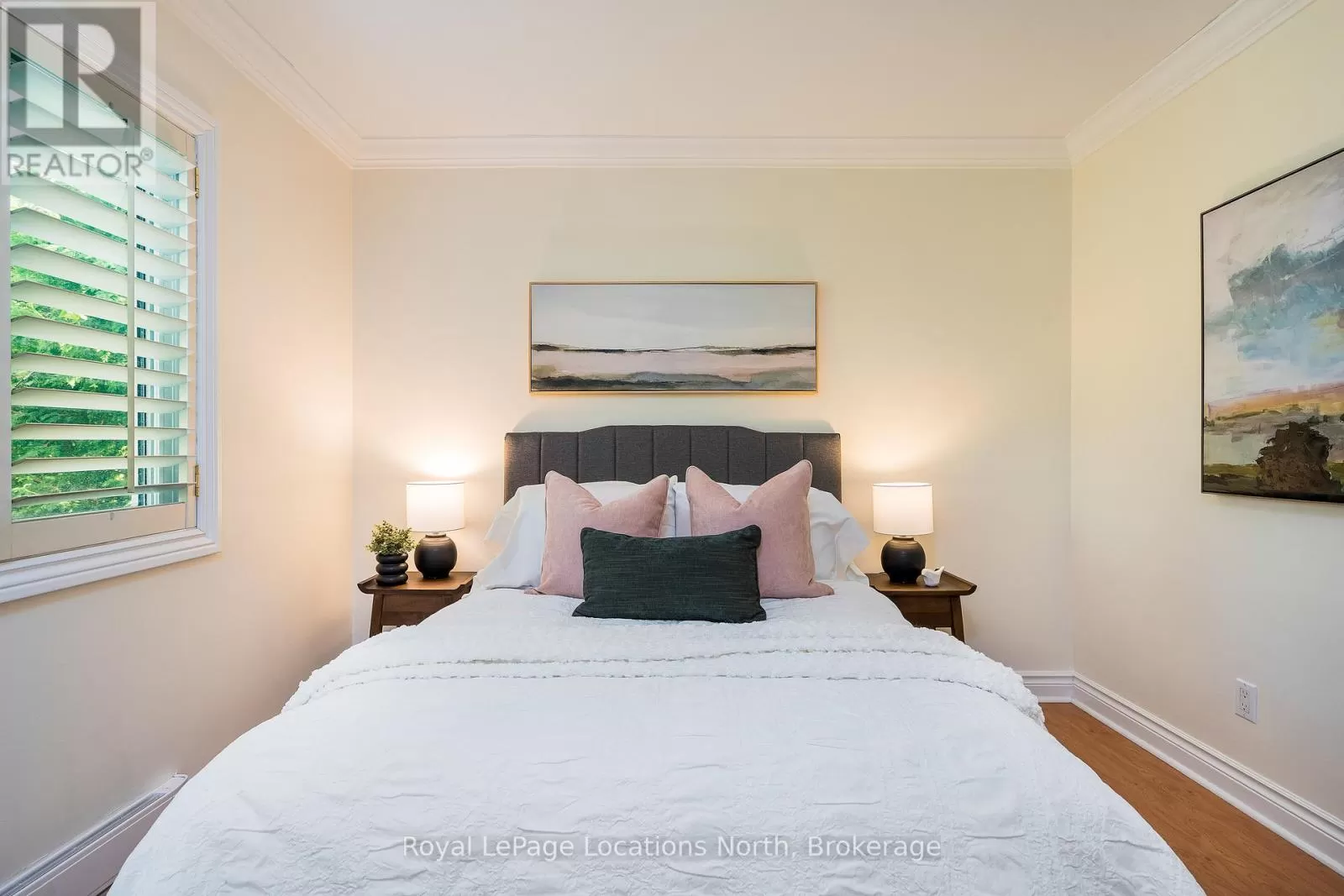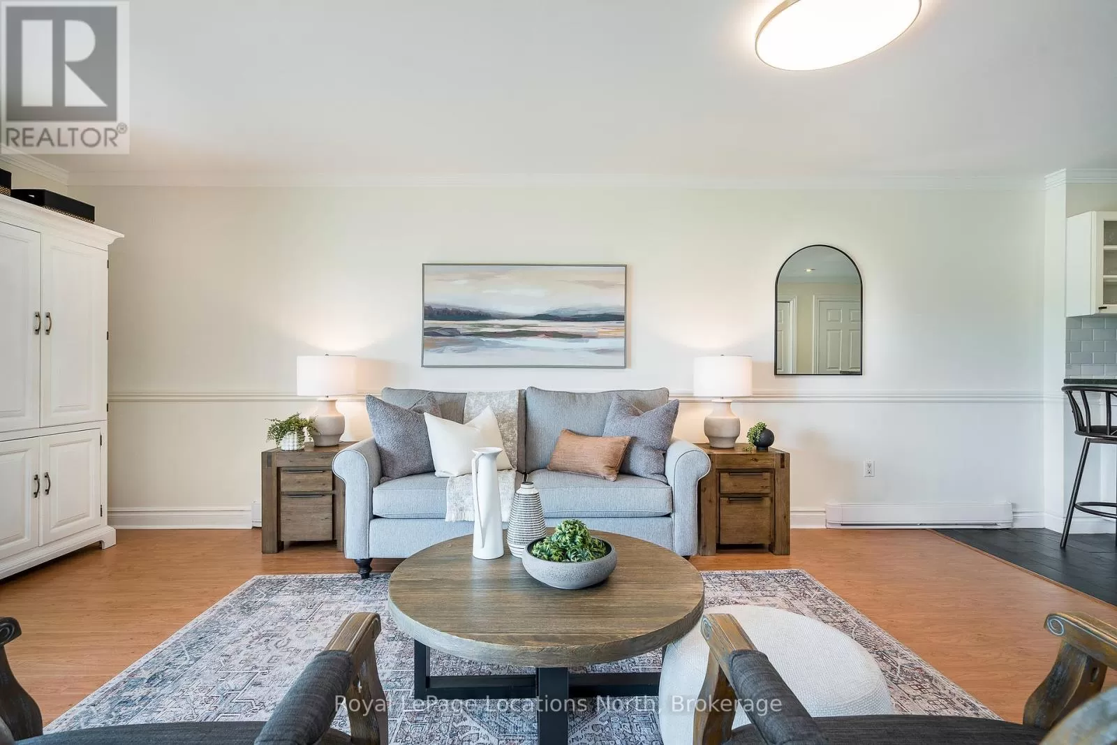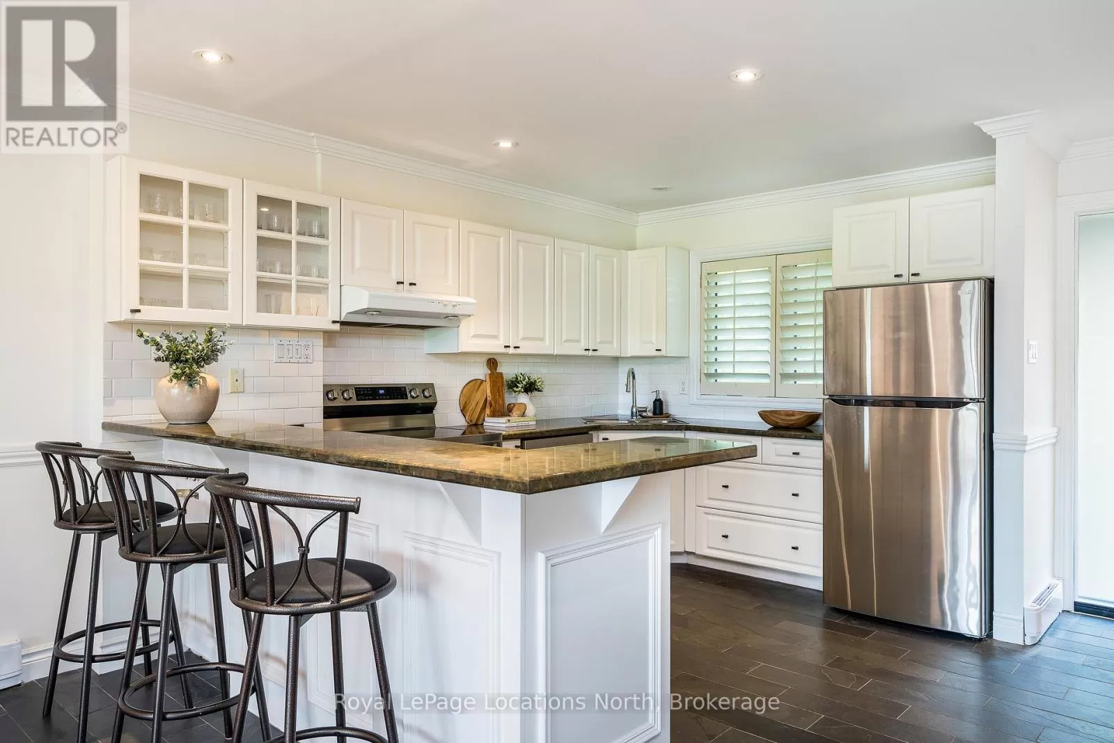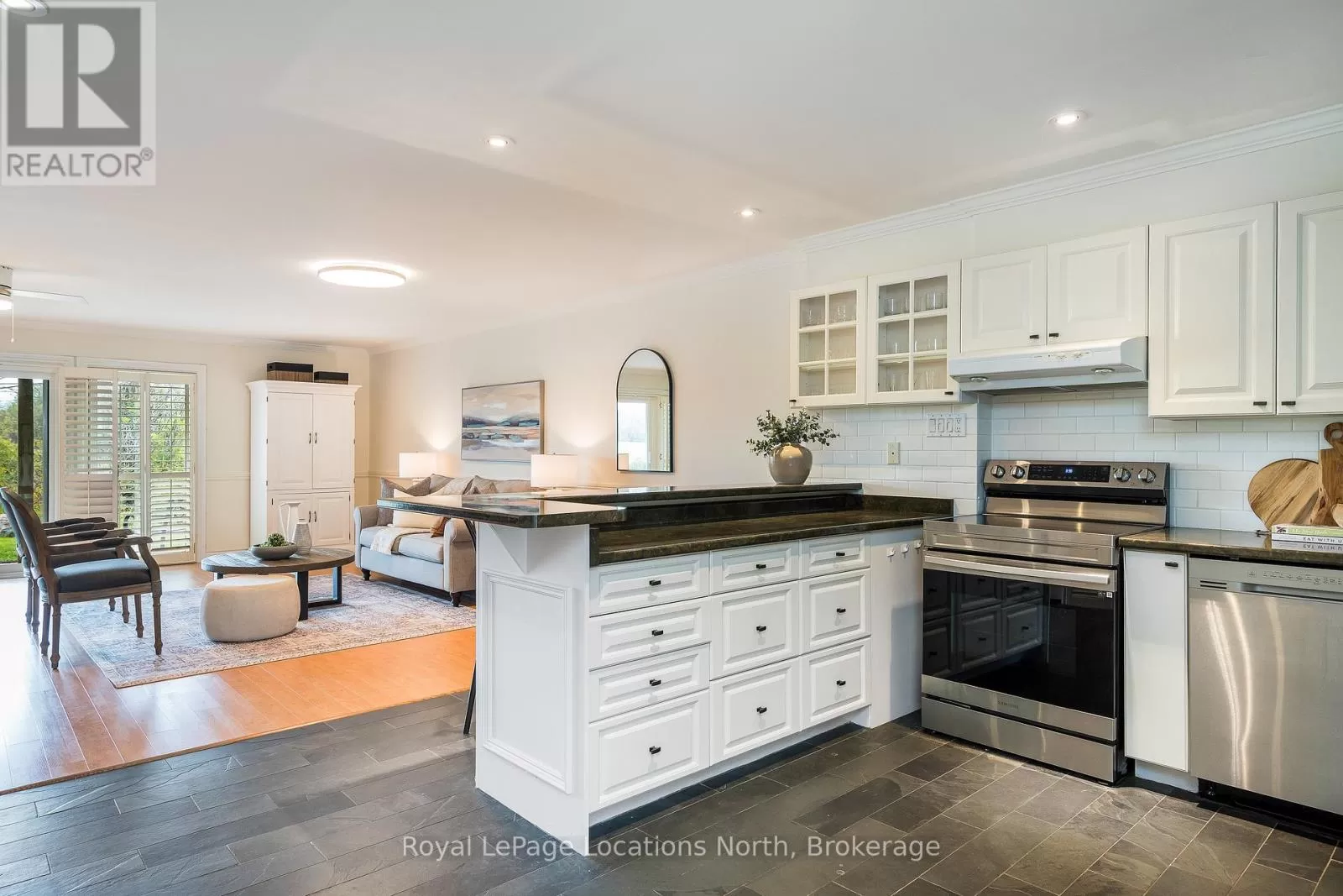 Cross Streets: Dawson Drive/Oxbow Crescent. ** Directions: Head West on Highway 26 towards Thornbury, turn left on Keith Ave, Right on Dawson Dr, left on Oxbow Cres to #572. Welcome to this gorgeous 2-level, 3 bedroom/2.5 bath end unit condo, with spectacular golf course and escarpment views! Offering over 1,600 square feet, with an open-concept main floor, this home is perfect for both entertaining and enjoying tranquil, private moments. Nestled in a quiet crescent within the Living Stone Resort community (formerly Cranberry) in Collingwood, the kitchen seamlessly flows into the expansive and light-filled living and dining areas, and is enhanced by a cozy wood burning fireplace. Sliding glass doors, with stylish California shutters, lead to a patio overlooking the adjacent golf course - perfect for enjoying a morning coffee or unwinding at the end of the day. Upstairs, the spacious primary bedroom offers a peaceful retreat with a private balcony and a 3-piece en-suite bath. Two additional bedrooms and a 3-piece bath complete the upper level. The main floor also features a convenient laundry room and powder room. Outside, a walk-in storage locker provides ample space for skis, bikes, etc. This home is ideally located beside the golf course, just steps to scenic trails, and the charming shops and restaurants at Cranberry Mews. Georgian Bay and downtown Collingwood are a short drive or bike ride away, and skiing is just 10 minutes away, making this the perfect four-season retreat. Exclusive parking (1 space) and visitor spots add to the convenience. Don't miss the opportunity to experience the Collingwood lifestyle in this beautifully appointed condo! (id:27476)