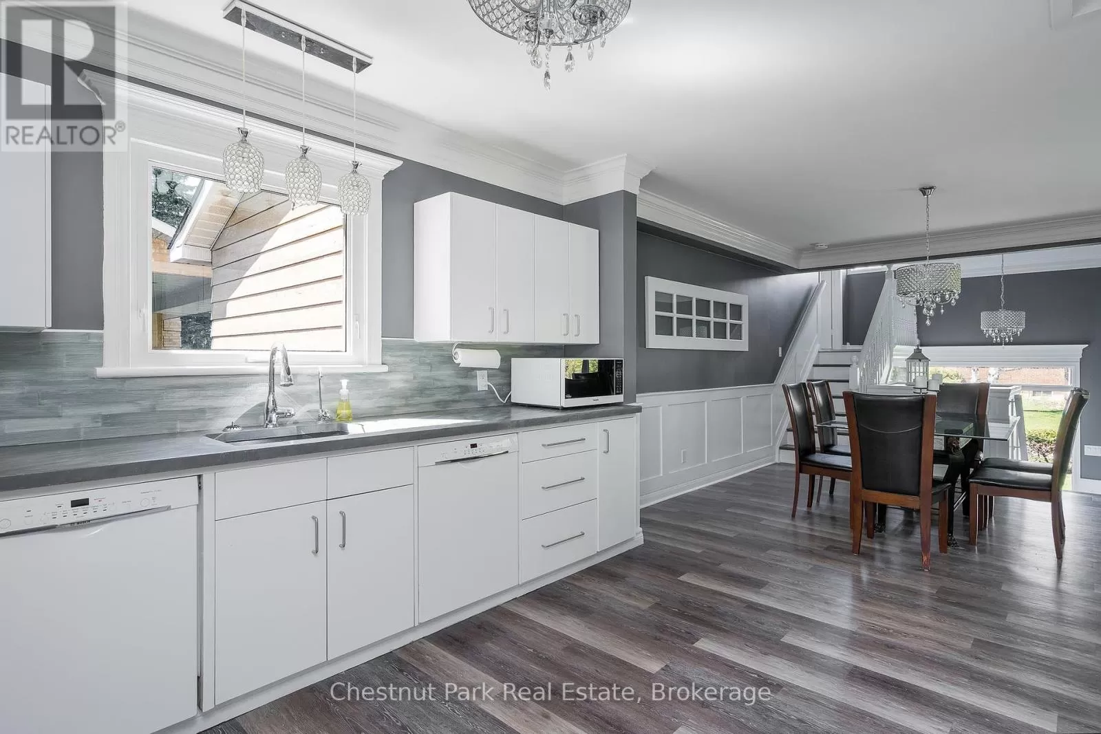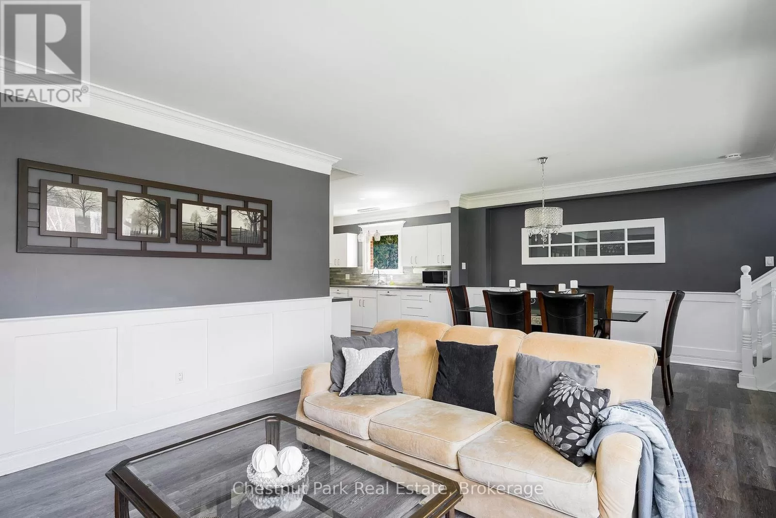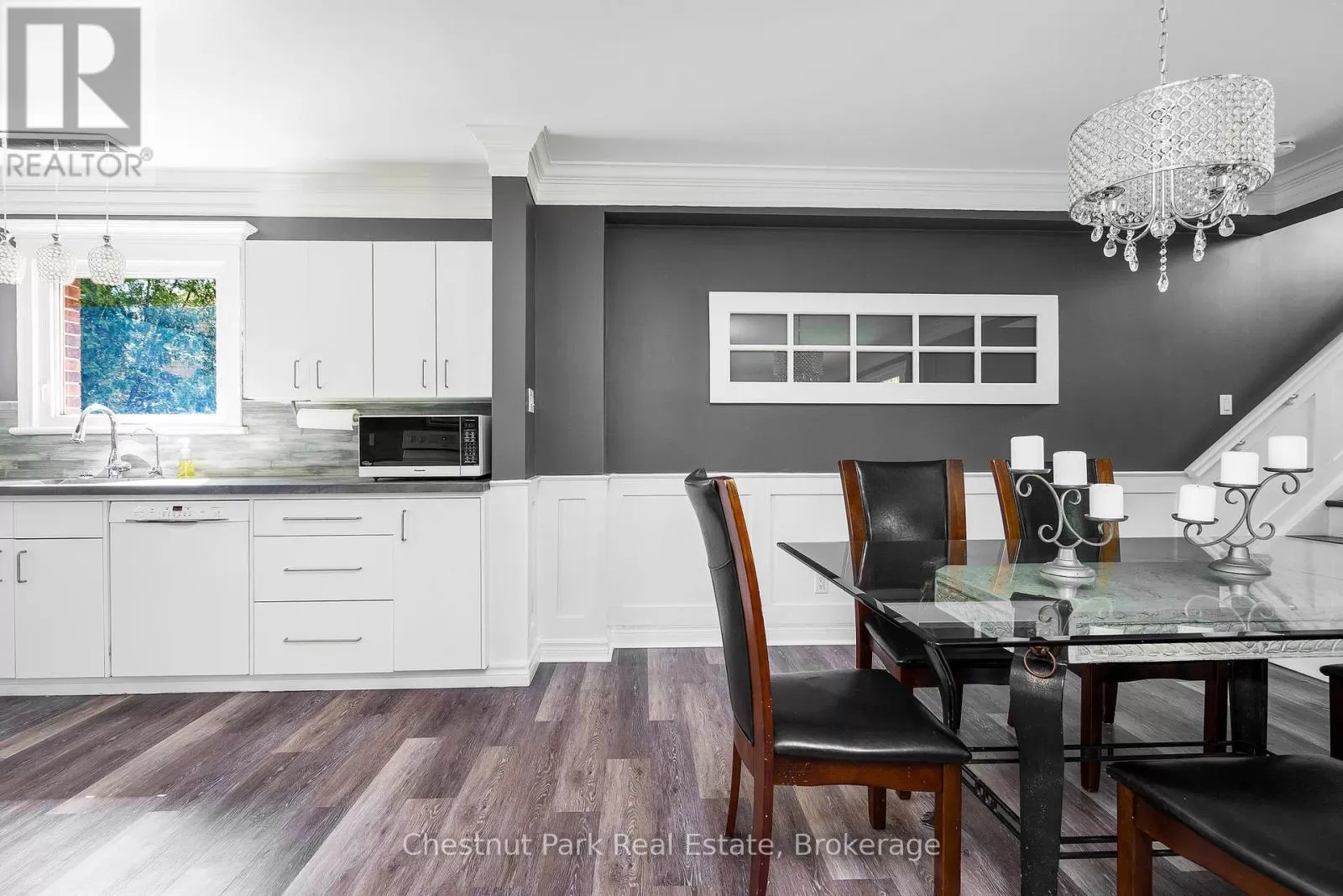 Cross Streets: Spruce and Water Streets. ** Directions: From First Street (Highway 26) take Spruce Street north to Water Street. Turn left on Water Street. First home on the left. In the Heart of Ontario's Four-Season Playground, tucked away next to the waterfront, this hidden enclave of homes is one of Collingwood's best-kept secrets - accessible via the scenic boardwalk trail system. From your doorstep, enjoy a short stroll to a thriving commercial district filled with brew pubs, restaurants, boutique shops, and everyday conveniences. The trail system also connects you to Collingwood's Arboretum, a seasonal splash pad, family parks, and the popular waterfront amphitheatre. Walk to Mountain View Public School, Heritage Park with its Aquatic Centre, skatepark, ball diamonds, and dog park - everything your family needs is just minutes away. This spacious five-bedroom, two-bathroom home features three separate living areas and a beautifully designed kitchen, making it perfect for growing families, multi-generational households, or professionals working from home. Bold colours, artistic touches, and abundant natural light create a warm, welcoming atmosphere that feels uniquely yours. Whether you're drawn by the area's natural beauty, community charm, or year-round recreational opportunities, this home offers it all - a rare blend of comfort, style, and location. (id:27476)