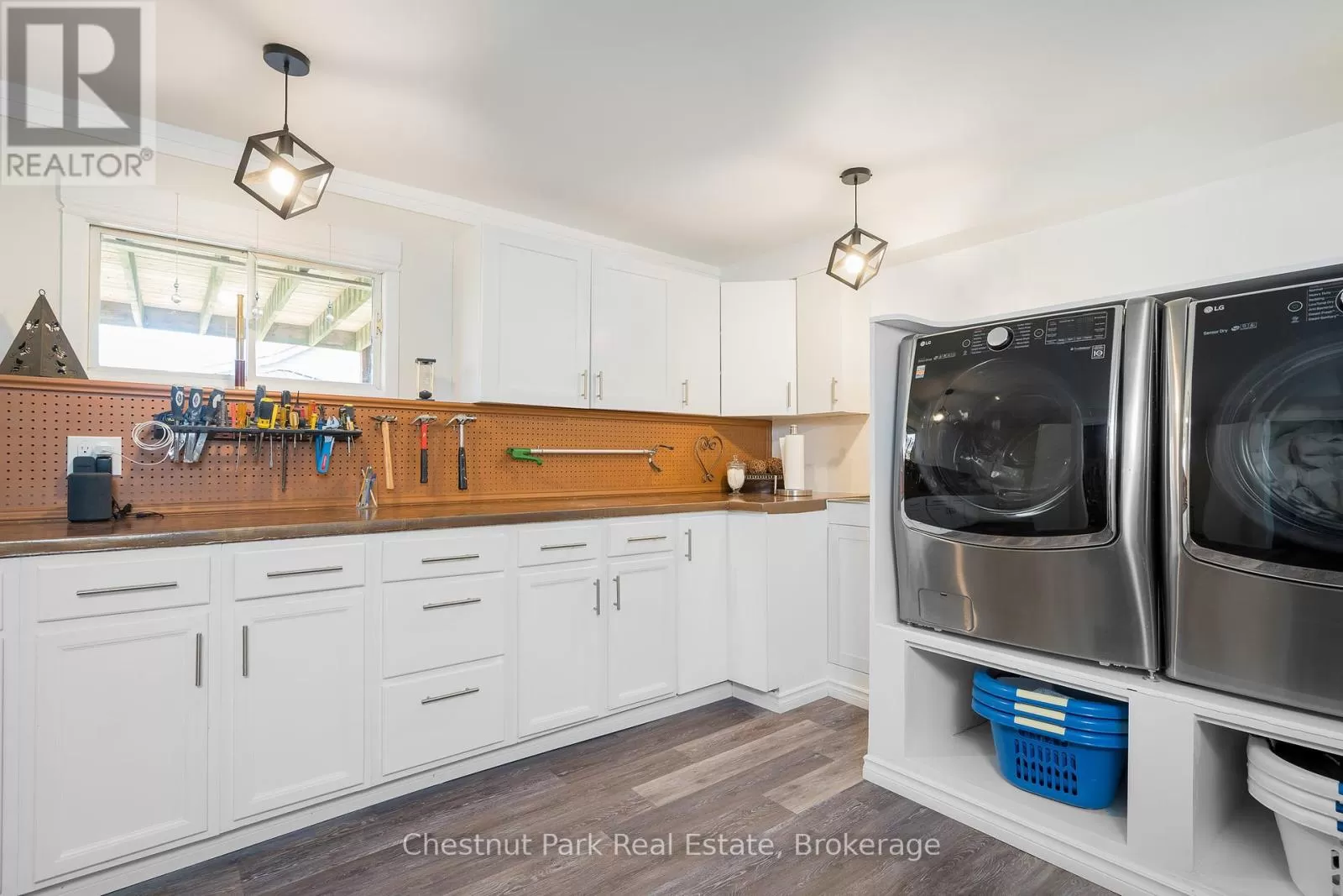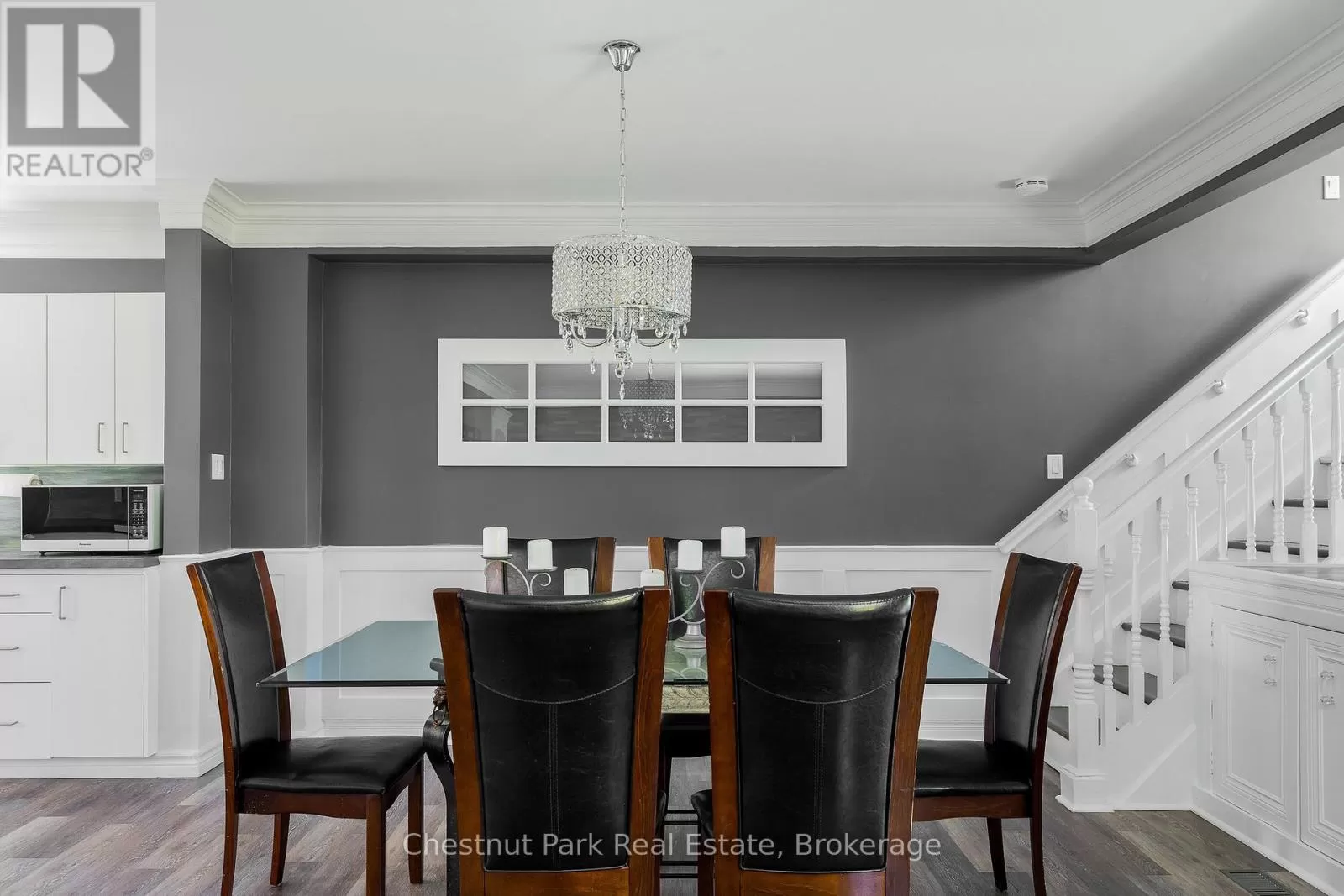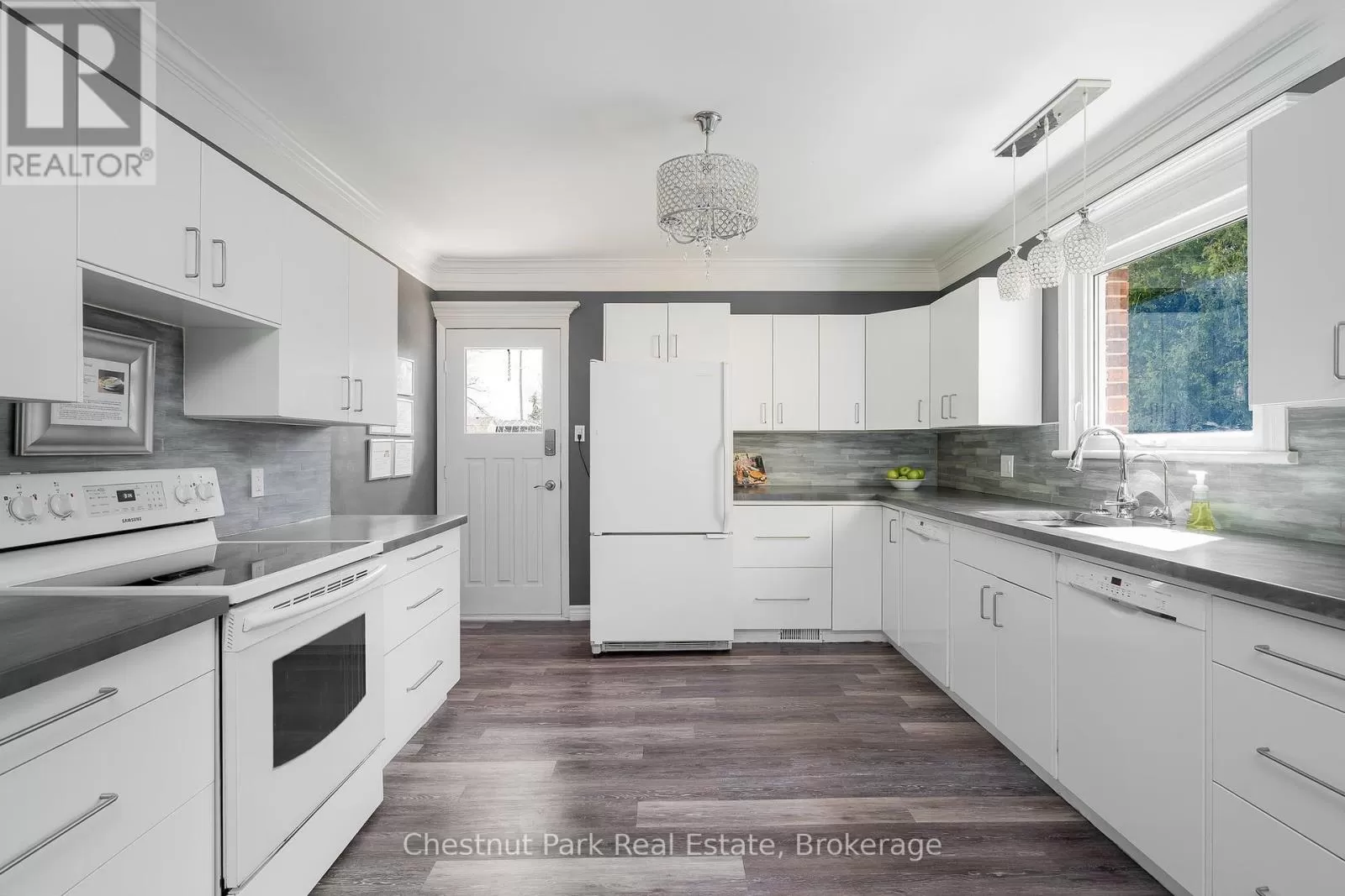 Cross Streets: Spruce and Water Streets. ** Directions: From First Street (Highway 26) take Spruce Street north to Water Street. Turn left on Water Street. First home on the left. In the Heart of Ontario's Four-Season Playground, tucked away next to the waterfront, this hidden enclave of homes is one of Collingwood's best-kept secrets - accessible via the scenic boardwalk trail system. From your doorstep, enjoy a short stroll to a thriving commercial district filled with brew pubs, restaurants, boutique shops, and everyday conveniences. The trail system also connects you to Collingwood's Arboretum, a seasonal splash pad, family parks, and the popular waterfront amphitheatre. Walk to Mountain View Public School, Heritage Park with its Aquatic Centre, skatepark, ball diamonds, and dog park - everything your family needs is just minutes away. This spacious five-bedroom, two-bathroom home features three separate living areas and a beautifully designed kitchen, making it perfect for growing families, multi-generational households, or professionals working from home. Bold colours, artistic touches, and abundant natural light create a warm, welcoming atmosphere that feels uniquely yours. Whether you're drawn by the area's natural beauty, community charm, or year-round recreational opportunities, this home offers it all - a rare blend of comfort, style, and location. (id:27476)