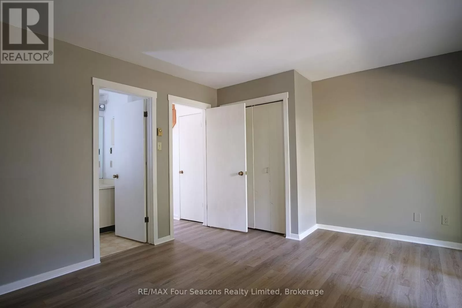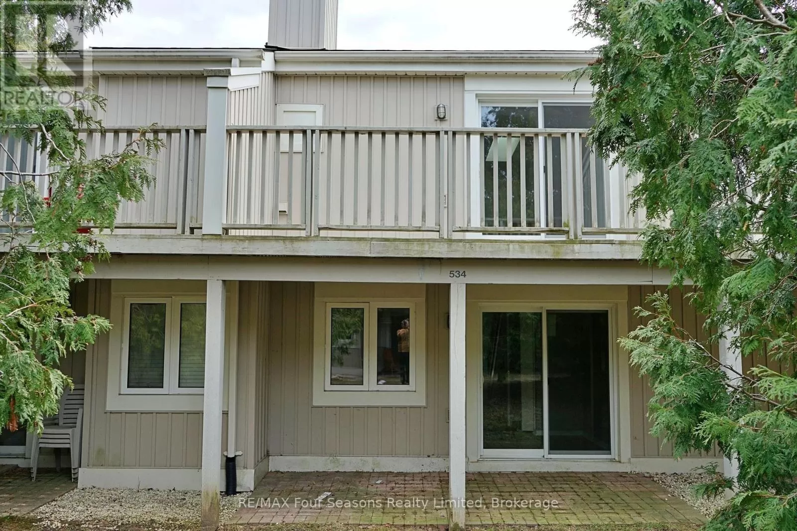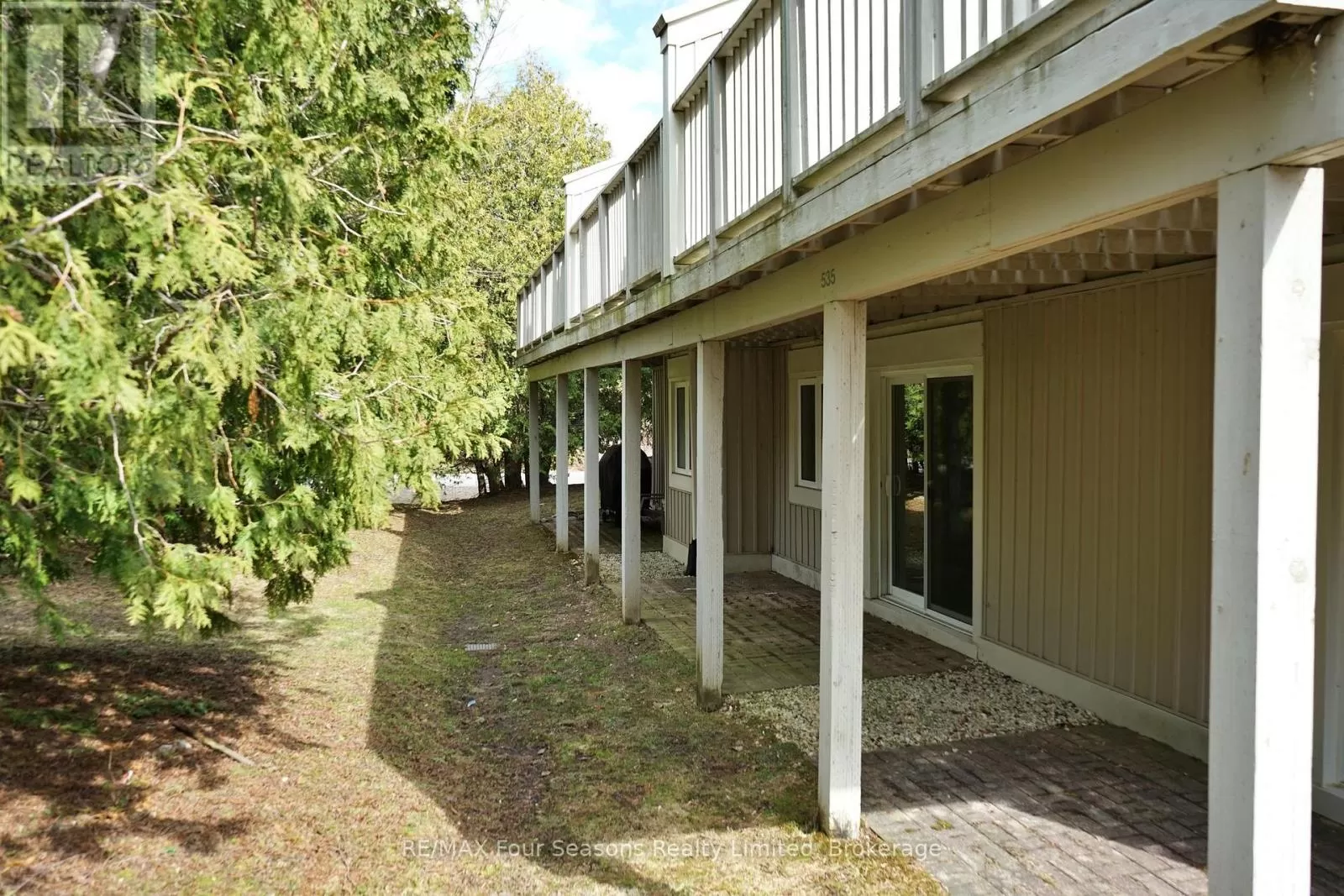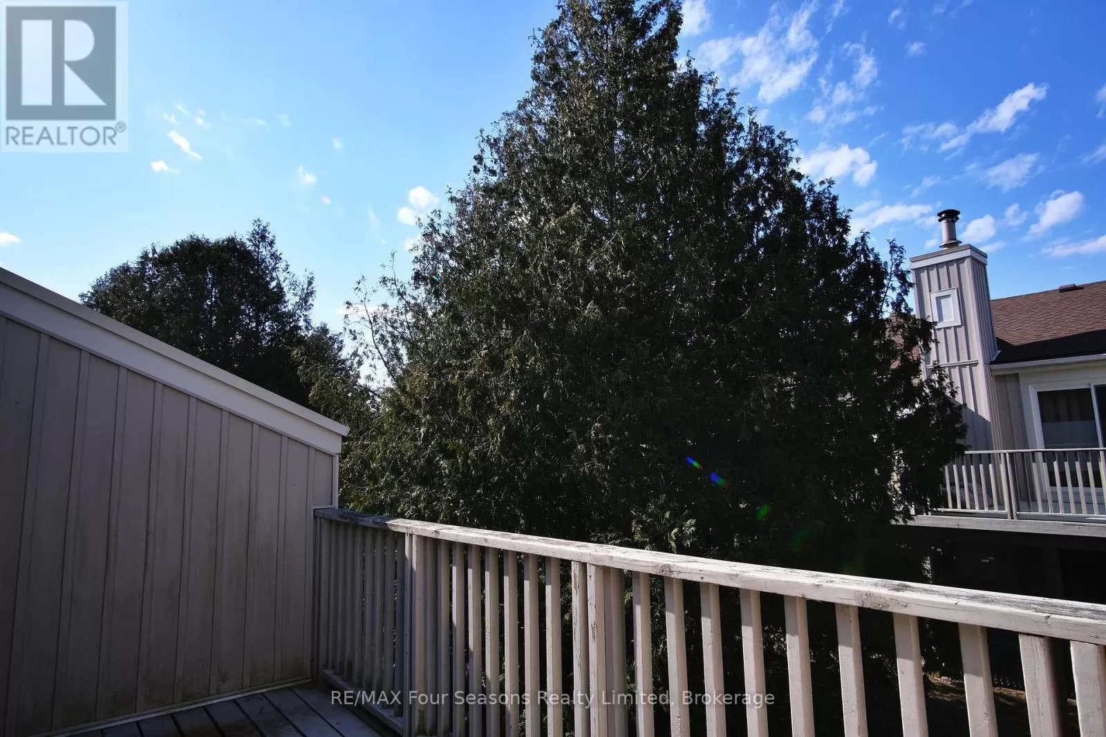 Cross Streets: Harbour St W/Dawson Drive. ** Directions: Hwy 26 to Harbour St W to Dawson Drive. Welcome to this bright and inviting 2-bedroom, 2-bathroom townhouse, designed with a unique reverse floor plan. The upper level is the heart of the home, where vaulted ceilings create an airy feel over the open kitchen, dining, and living areas. A cozy wood-burning fireplace sets the scene for relaxed evenings, while a patio door leads to a private balcony perfect for morning coffee or unwinding outdoors. At the entry level, you'll find two comfortable bedrooms, including a spacious primary suite with its own en-suite bath and direct access to a private patio. Recent updates such as new flooring and fresh paint provide a clean canvas for you to add your personal style. Practical touches include in-suite laundry hookups and an assigned parking space just steps from your door. With its thoughtful layout and welcoming atmosphere, this townhouse offers a wonderful opportunity to enjoy comfortable, low-maintenance living. Don't miss your chance to make this charming townhome your own! (id:27476)