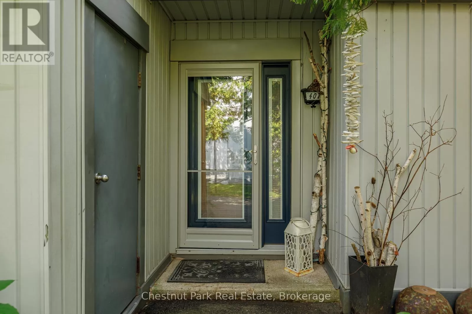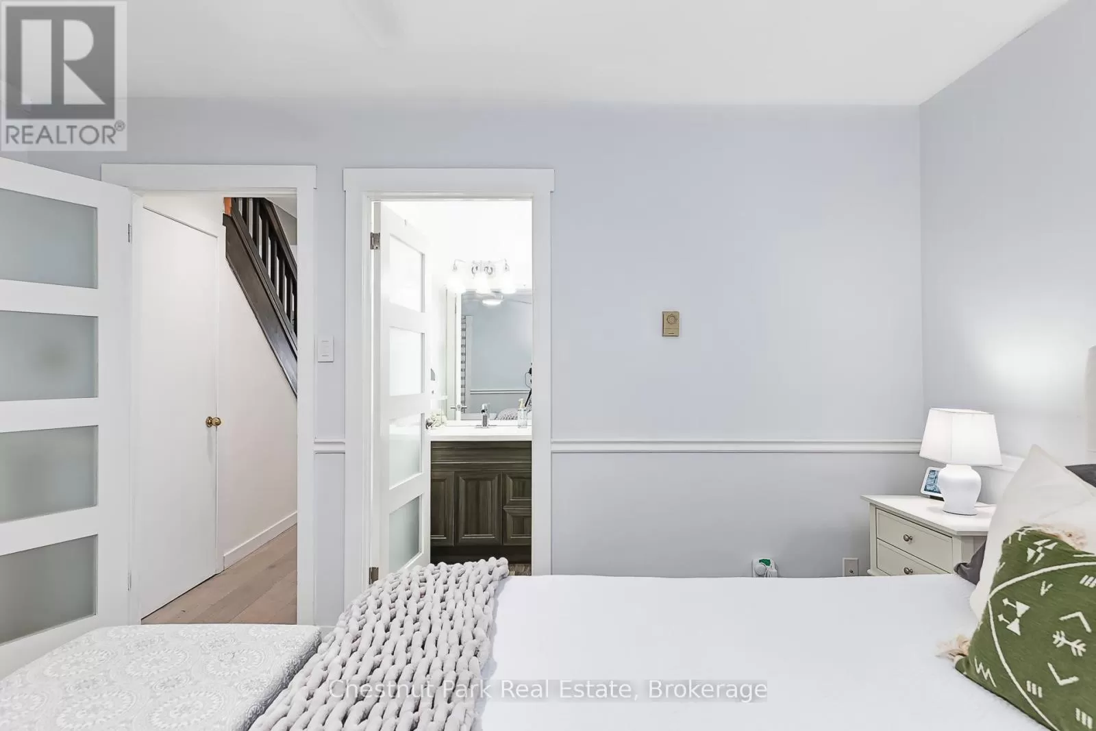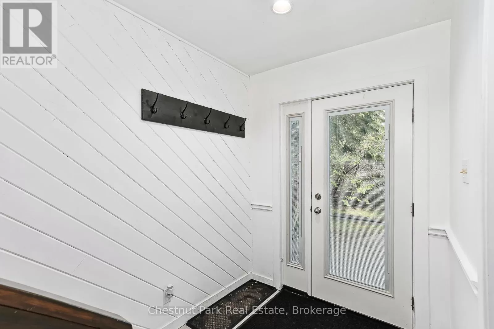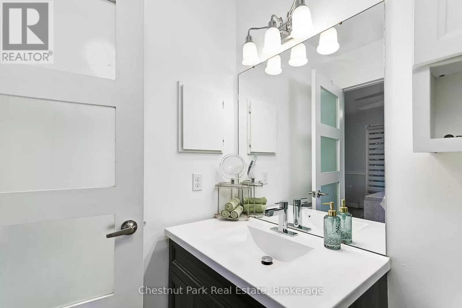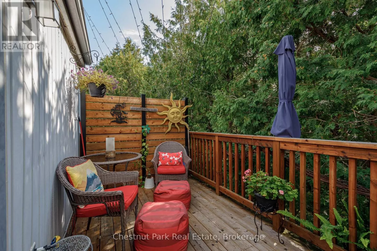 Cross Streets: Hwy 26. ** Directions: Hwy 26 W to Harbour or Keith to Dawson (Meadows). This beautifully updated two-bedroom, two-bathroom condominium is ideally located just a short drive from local beaches, exceptional hiking trails, Blue Mountain, and downtown Collingwood. Thoughtfully designed with a reverse floorplan, the unit features a spacious primary bedroom complete with a four-piece ensuite bathroom. An additional bedroom and bathroom are conveniently situated on the main level. The upper floor showcases a bright, open-concept kitchen, living, and dining area, highlighted by cathedral ceilings, a cozy wood-burning fireplace, and access to a large private deck. This unit has been completely updated from top to bottom, boasting engineered hardwood flooring throughout, as well as modernized bathrooms and a kitchen with ample cupboard space. A must-see to truly appreciate! ALSO LISTED FOR ANNUAL LEASE MLS S12394926 (id:27476)