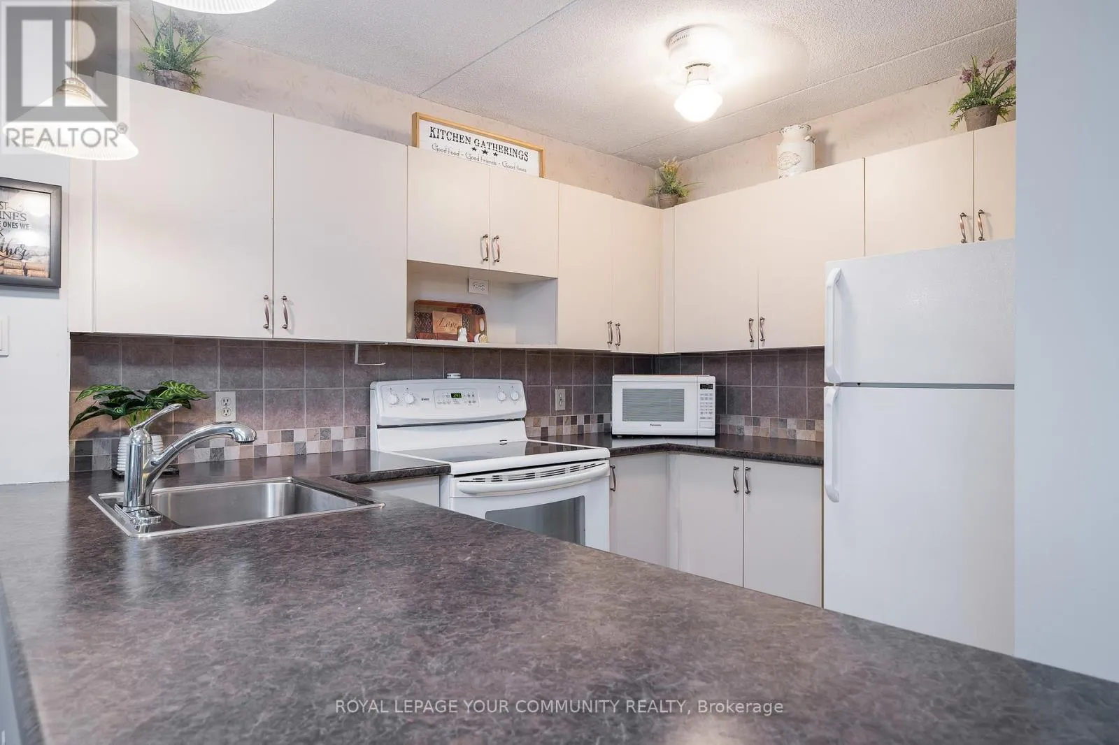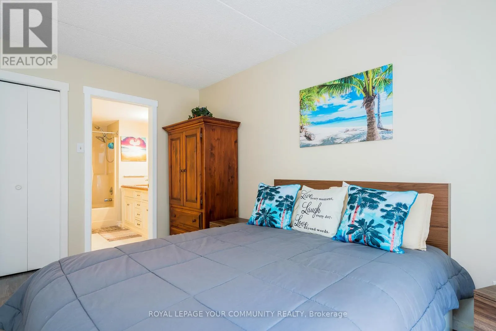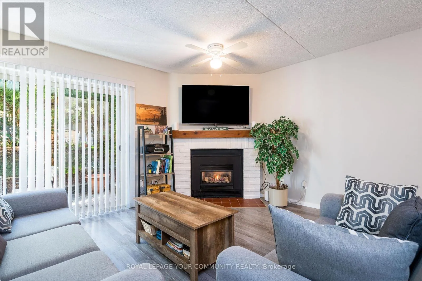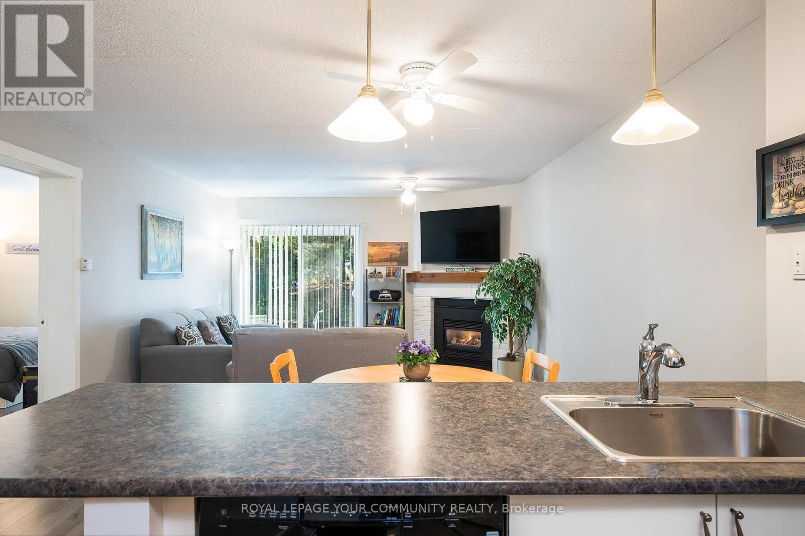 Cross Streets: HWY 26 / TROTT BLVD. ** Directions: Highway 26 North, Right on Trott Blvd, Right into 49 Trott to Last unit on left (Ground floor). Welcome to Harbourside 1 in Collingwood. Bungalow style condo townhouse, main floor corner, with storage locker and walkout to patio. 2 bedroom, 2 bathroom, open concept kitchen, dining room and living room with gas fireplace, in-suite laundry, ceiling fans, ceramic and laminate floor. Tastefully decorated and well maintained. Primary bedroom with ensuite bathroom and walkout to patio. Separate main bathroom with shower and second bedroom. Laminate wood floor throughout. Tastefully decorated and well maintained. Steps to Living water resort, restaurants, walking trails and Whites Bay - natural water front beach. Minutes to Cranberry Golf, downtown Collingwood, Living Water Resort and Spa, The Blue Mountains resort, numerous golf courses, shops, restaurants and more. (id:27476)