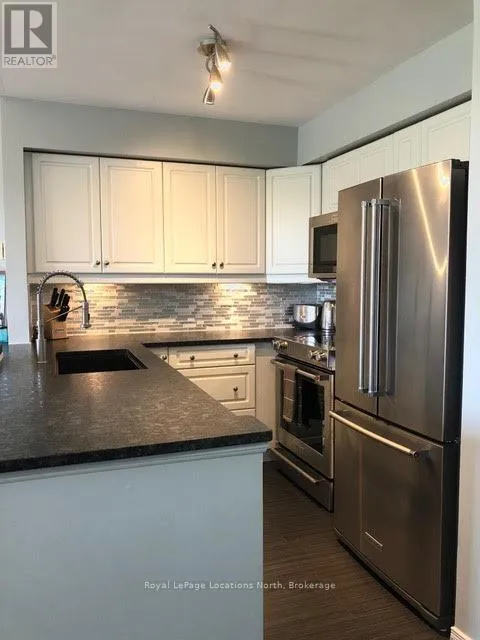 Cross Streets: HWY 26 and Light House Lane. ** Directions: Enter through the gatehouse area, turn right onto Mariners Way, follow past around bend, turn left onto Johnston Park Ave. Unit range holding 639 will be located on right hand side. SEASONAL SKI RENTAL -- Available December 1, 2025 to April 15, 2026 (Dates Flexible). Welcome to this bright and beautifully maintained top-floor condo in the highly desirable waterfront community of Lighthouse Point. This fully furnished, two-bedroom, two-bathroom unit offers a warm and inviting space to enjoy the winter season in Collingwood. Freshly painted and thoughtfully updated, the condo features an open-concept kitchen, dining, and living area with walk-out to a oversized balcony equipped with a gas BBQ. From this elevated vantage point, enjoy unobstructed views of Georgian Bay, ski hills, and the areas famous sunsets, all overlooking a peaceful conservation area.The modern kitchen has been renovated with granite countertops, a glass tile backsplash, and stainless steel appliances, offering both style and functionality. The primary bedroom features a queen bed and a renovated private ensuite, while the second bedroom and full guest bath provide comfort and flexibility for family or guests. Lighthouse Point offers a true resort lifestyle with outstanding amenities, including an indoor saltwater pool, hot tubs, fitness centre, sauna, gym, games room, holiday parties/events and more. Take advantage of the scenic waterfront walking trails that wind through this quiet, well-maintained community. Located just a minutes away from Blue Mountain, Private ski clubs, downtown Collingwood, and local hiking and snowshoeing trails, this property is ideally situated for anyone looking to enjoy a full winter experience in Southern Georgian Bay. No smoking or vaping. No parties. A family pet may be considered. Secure your ski season rental now and spend the winter in one of Collingwood's most sought-after waterfront communities! (id:27476)