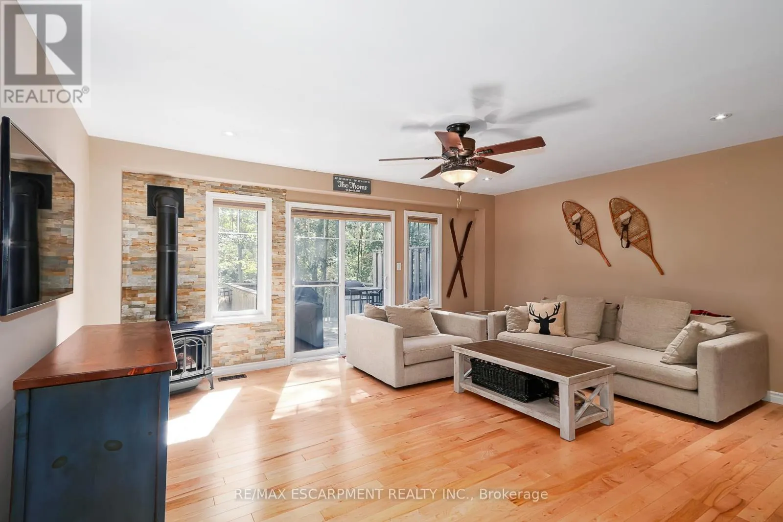 Cross Streets: CONSERVATION WAY. ** Directions: Hwy 26 west from Collingwood to Silver Glen Preserve. Welcome to this beautifully maintained 3-bedroom, 3.5-bath townhome, perfectly nestled in the desirable Silver Glen Preserve community. Backing onto tranquil, protected forest, this unit offers privacy and a serene setting just minutes from all that Collingwood and the Blue Mountains have to offer. Step inside to a bright, open-concept main floor featuring a spacious kitchen with a large island, and 2 gas BBQ hookups on the walk-out deck - ideal for easy outdoor entertaining. Enjoy hardwood flooring throughout the main living areas, ceramic tile in the kitchen and baths, and a cozy corner gas fireplace for chilly evenings. Upstairs, the spacious primary suite includes a private ensuite, with two additional bedrooms and a full bath completing the level. The finished lower level offers a spacious rec room and 3 pc bath. Comfort features include forced air natural gas heating, central A/C, central vacuum, and a whole-home humidifier. The deep garage with inside entry provides great storage and convenience. Silver Glen residents enjoy access to a fantastic recreation centre with a gym, party room, games room, and outdoor in-ground pool. With low condo fees, a welcoming community, and visitor parking, this home is perfect as a full-time residence or weekend chalet. Enjoy the 4-season lifestyle with Cranberry Golf Course just steps away, and easy access to ski hills, Georgian Bay, trails, and downtown Collingwood. Come live, play, and relax in Silver Glen Preserve! (id:27476)