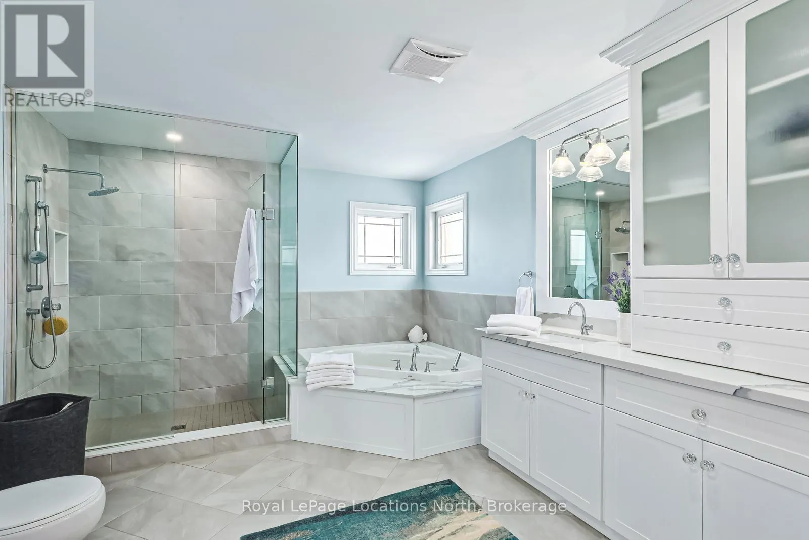 Cross Streets: mair mills and mtn rd. ** Directions: mountain rd to Mair Mills. Welcome to Mair Mills where luxury living meets unbeatable location. Nestled between the majestic Blue Mountains and the vibrant town of Collingwood, this executive-class, all-brick home sits on a rare 0.5-acre south-facing lot backing directly onto the fairways of Blue Mountain Golf & Country Club. With 190 feet of private golf course exposure, this property offers endless sun, views, and tranquility perfect for your dream backyard retreat. Located on a quiet, no-thru street in a neighborhood known for its safety, green spaces, and community amenities including playgrounds and tennis courts this is an ideal place to raise a family. Spanning over 4000 square feet, this 5-bedroom, 5-bathroom home is filled with quality craftsmanship and elegant finishes throughout. The heart of the home is an expansive great room and chefs kitchen, complete with custom built-ins, a 10-ft quartz island, solid wood cabinetry, stainless steel appliances, butlers pantry, and a separate dining room ideal for entertaining or enjoying cozy nights by the fireplace with panoramic golf course views. The primary suite is your personal retreat with a spa-inspired ensuite featuring a soaker tub, separate shower, luxury finishes, and an oversized walk-in closet. Downstairs, the fully finished lower level offers even more living space with a dedicated theatre room, recreation room with electric fireplace, and a private bedroom with ensuite perfect for guests or in-laws. This is one of the largest and most private lots in Mair Mills, and it's ready for your custom landscaping vision. With easy access to skiing, golf, Georgian Bay, and all the charm and convenience of Collingwood just minutes away, this home truly offers the best of four-season living. You're going to love it here. (id:27476)