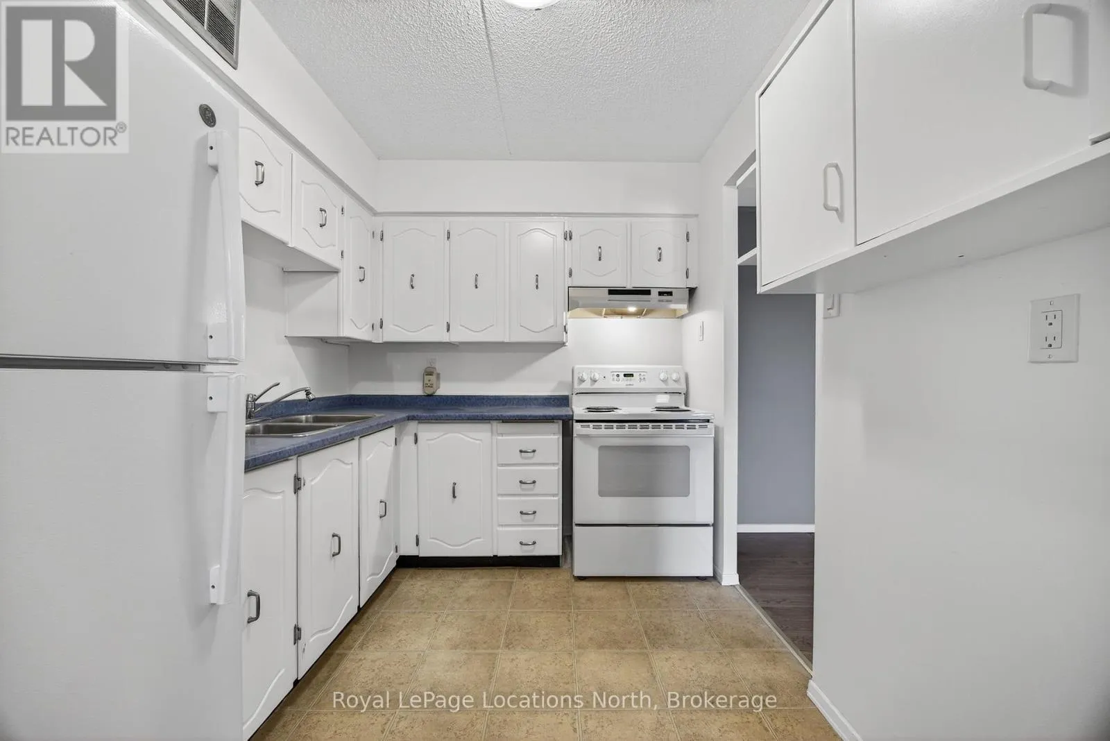Cross Streets: Ontario & Niagara Street. ** Directions: Ontario St E to property. Carefree living in this 2 bedroom condo located at Bayview Terrace. Many renovations including fresh paint, new flooring, kitchen upgrades and new electric baseboard heater. Step onto your private east facing balcony for views of the local baseball and soccer fields, a children's park and the Legion. The elevator and open concept floor plan allow for accessibility needs. The monthly condo fee of $590.00 includes heat, hydro, water, sewer and maintenance fees. Enjoy the nearby amenities including Sunset Point waterfront and park, and local bike trails. Walk to downtown shops and restaurants or take the town bus. This is convenient, carefree and secure living at an excellent price. (id:27476)