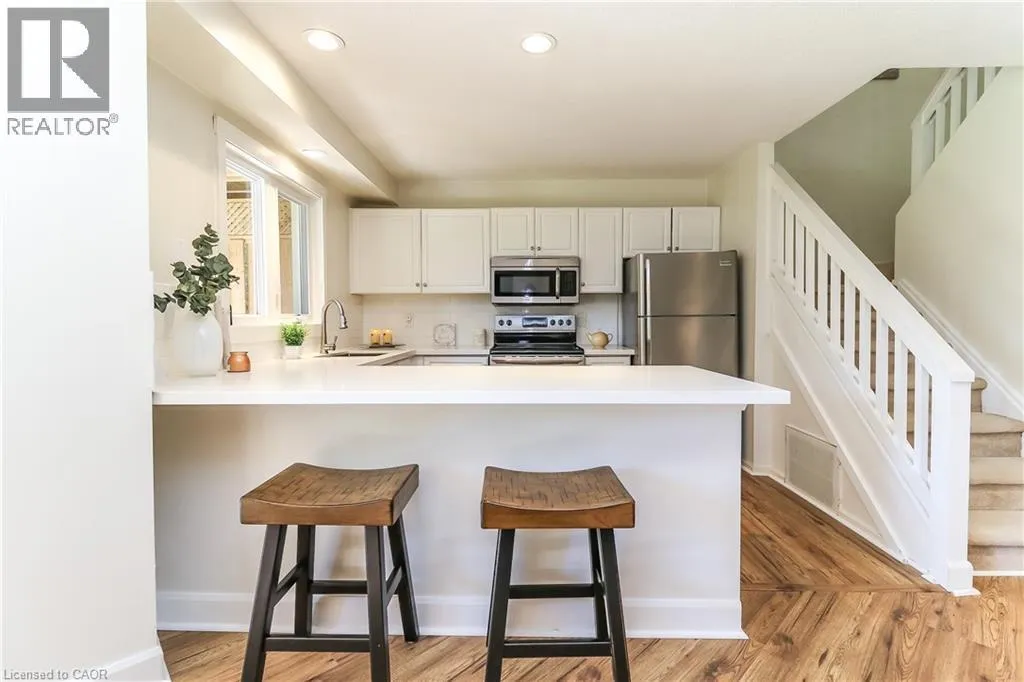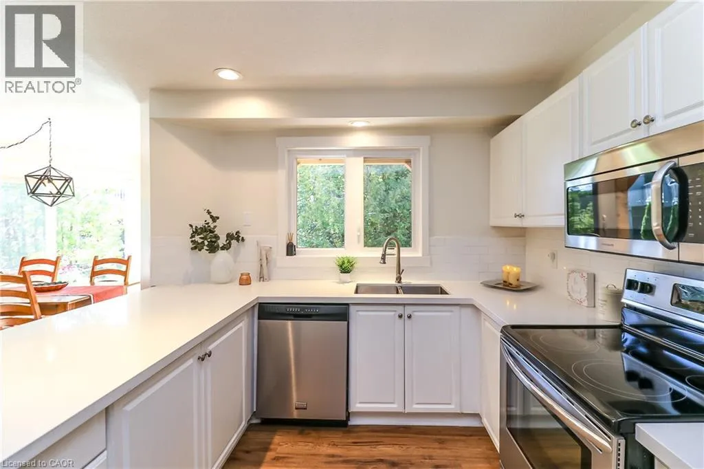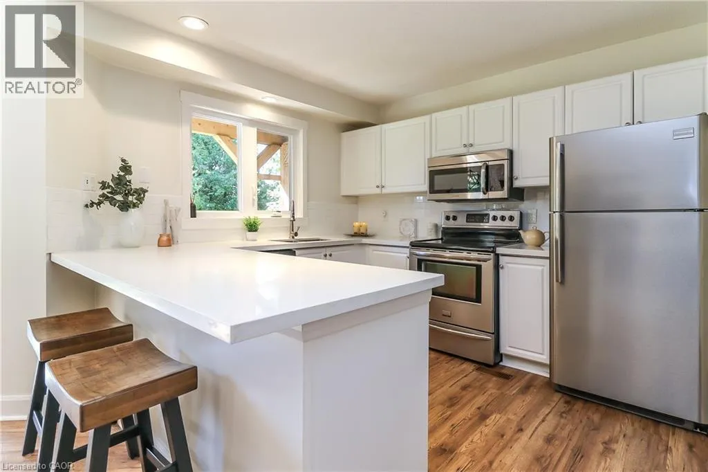 Hwy 26 to Keith Ave. Right on Dawson, left on Fairway to 133 #38. LOCATION! LOCATION! LOCATION! This beautiful corner townhouse sits in a prime spot, backing directly onto the Cranberry Golf Course with breathtaking mountain views from a large upstairs balcony. Perfectly located for year-round enjoyment, this home offers a blend of comfort, style, and convenience in one of Collingwood's most desirable communities. The main floor boasts a spacious open-concept living and dining area, anchored by a custom gas fireplace that creates a warm, inviting atmosphere while efficiently heating the home and keeping energy costs low. The renovated kitchen is a showstopper, featuring an oversized quartz island, stylish backsplash, ample cabinetry, and high-end stainless steel appliances. A walkout leads to a private patio with a BBQ area, surrounded by mature treesâperfect for entertaining or quiet relaxation. Upstairs, the primary suite (currently staged as a reading room) is a private retreat with double fenestration, flooding the room with natural light throughout the day. A generous walk-in closet, a chic en-suite, and direct access to the balcony overlooking the 18th hole make it a standout. The second bedroom also connects to this balcony, the perfect place to sip your morning coffee while soaking up the views. This home is designed for both lifestyle and location. Step outside to bike and hiking trails, or take a short drive to downtown Collingwood and The Blue Mountains. Within walking distance youâll find Harbour Street, the Cranberry Mews shops and restaurants, and the Cranberry Recreation Centre with outdoor pool. Public transit is right at your doorstep with a bus stop on Dawson Drive, offering direct access to Collingwoodâs downtown core, Blue Mountain Village, and Wasaga Beach. Whether youâre searching for a weekend escape or a full-time residence, this property delivers comfort, style, and convenienceâcapturing the very best of the Georgian Bay lifestyle. (id:27476)