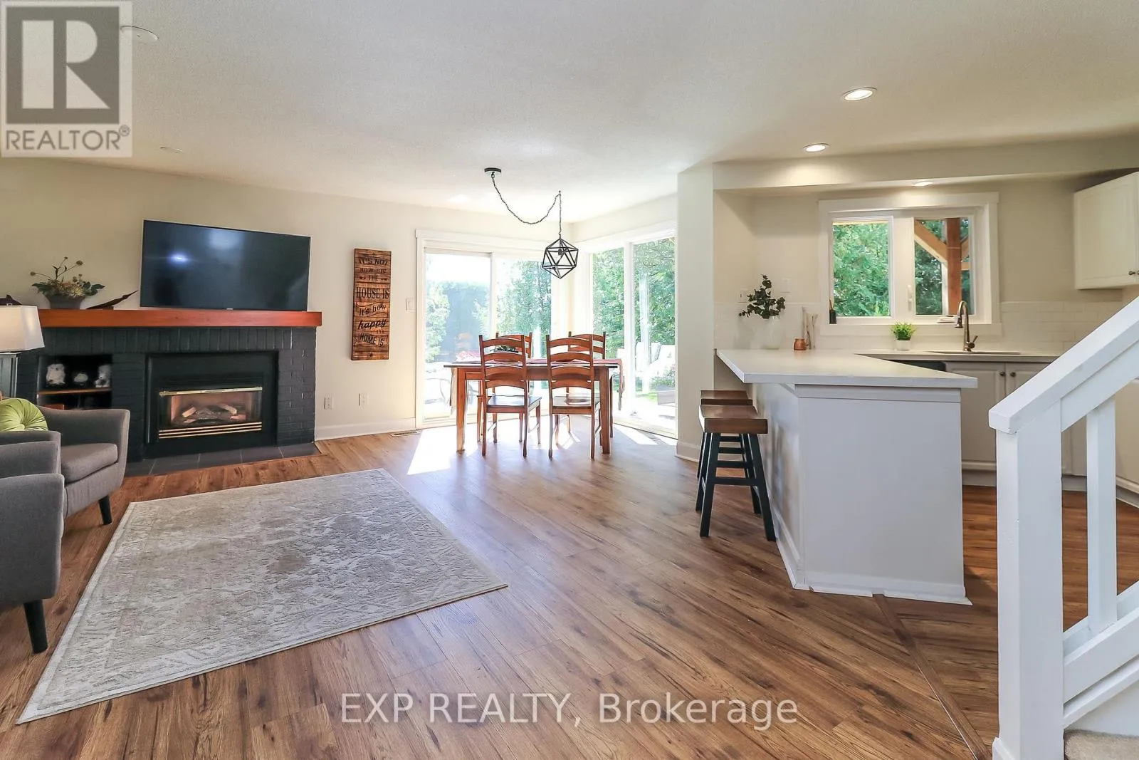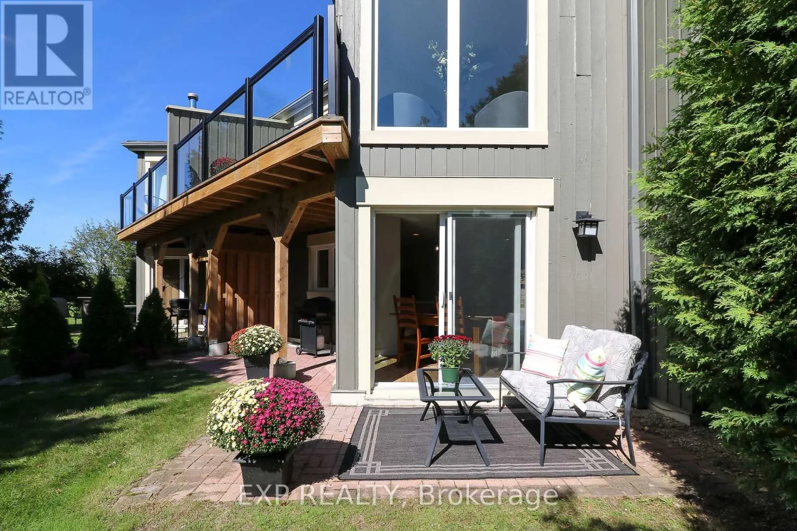 Cross Streets: Dawson, left on Fairway. ** Directions: Hwy 26 to Keith Ave. LOCATION! LOCATION! LOCATION! Top spot at an unbeatable price. This beautiful corner townhouse sits in a prime spot, backing directly onto the Cranberry Golf Course with breathtaking mountain views from a large upstairs balcony. Perfectly located for year-round enjoyment, this home offers a blend of comfort, style, and convenience in one of Collingwood's most desirable communities. The main floor boasts a spacious open-concept living and dining area, anchored by a custom gas fireplace that creates a warm, inviting atmosphere while efficiently heating the home and keeping energy costs low. The renovated kitchen is a showstopper, featuring an oversized quartz island, stylish backsplash, ample cabinetry, and high-end stainless steel appliances. A walkout leads to a private patio with a BBQ area, surrounded by mature trees perfect for entertaining or quiet relaxation. Upstairs, the primary suite (currently staged as a reading room) is a private retreat with double fenestration, flooding the room with natural light throughout the day. A generous walk-in closet, a chic en-suite, and direct access to the balcony overlooking the 18th hole make it a standout. The second bedroom also connects to this balcony, the perfect place to sip your morning coffee while soaking up the views. This home is designed for both lifestyle and location. Step outside to bike and hiking trails, or take a short drive to downtown Collingwood and The Blue Mountains. Within walking distance you will find Harbour Street, the Cranberry Mews shops and restaurants, and the Cranberry Recreation Centre with outdoor pool. Public transit is right at your doorstep with a bus stop on Dawson Drive, offering direct access to Collingwood's downtown core, Blue Mountain Village, and Wasaga Beach. Whether you are searching for a weekend escape or a full-time residence, this property delivers comfort, style, and convenience capturing the very best of the Georgian Bay lifestyle. (id:27476)