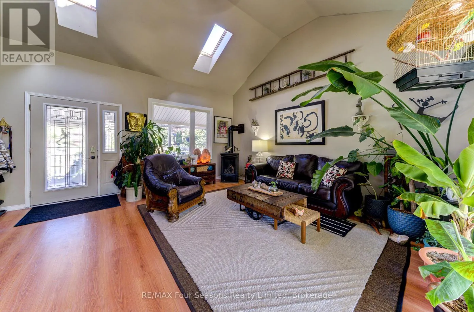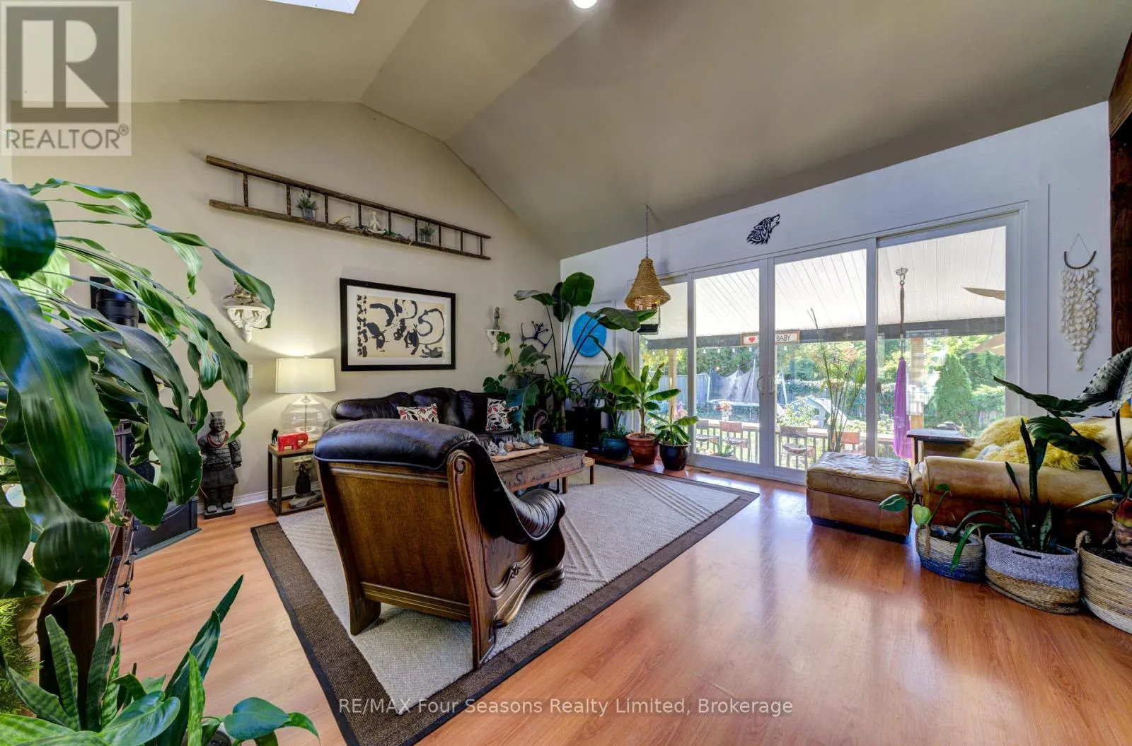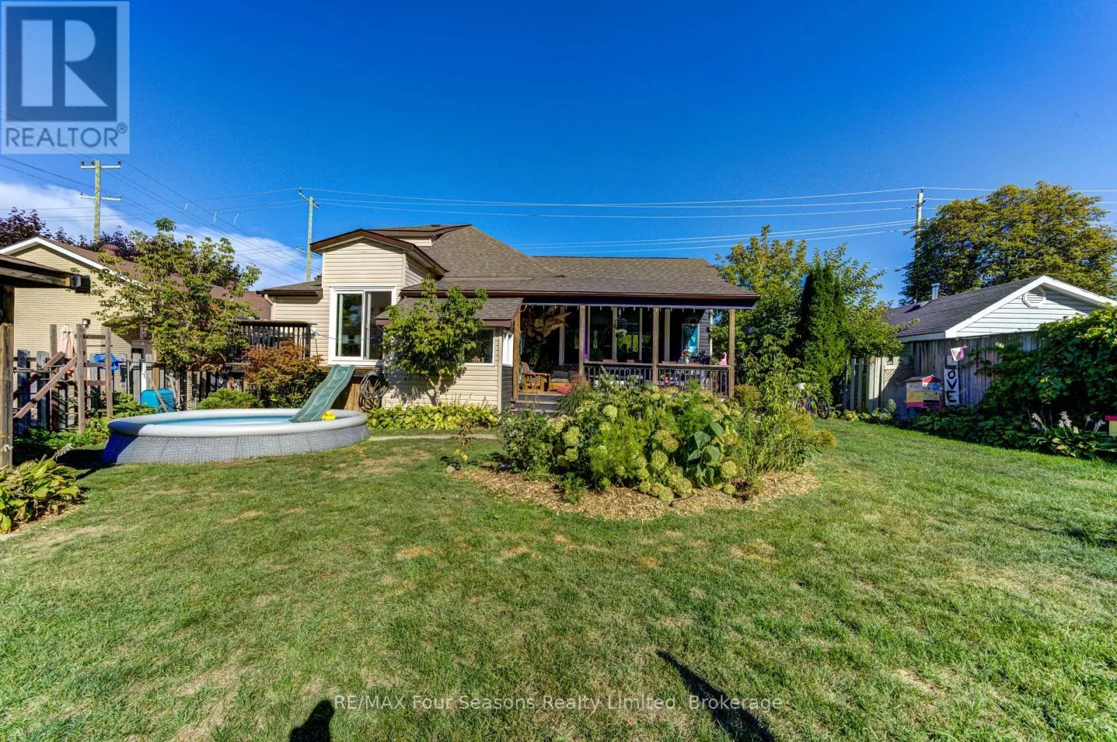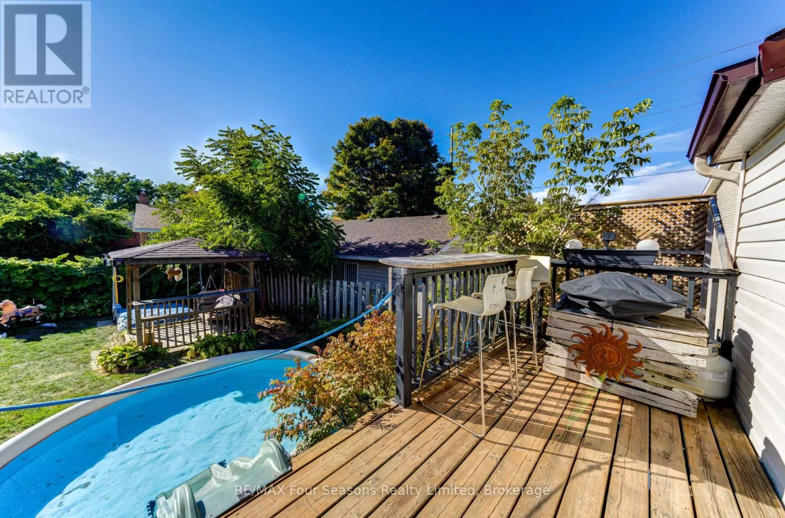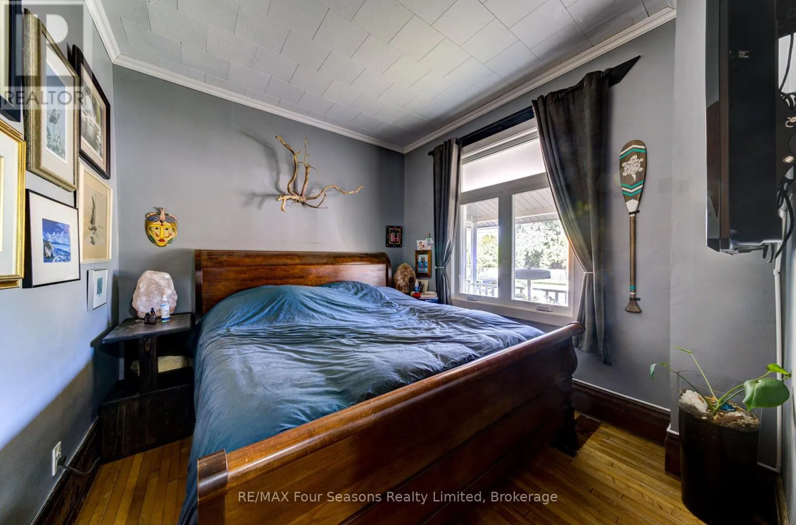 Cross Streets: Hurontario and Campbell. ** Directions: Hurontario to Campbell. Fantastic location only a 10 minute walk to downtown and 5 minute walk to your choice of 2 elementary schools and two high schools. Lovely well maintained century home has features of the time. High ceilings, pocket doors, hardwood flooring and beautiful trim. This 4 bedroom home offers a great opportunity for the first time buyer. A large covered deck on the front leads to the main entry door opening into a huge bright family room with cathedral ceilings and gas fireplace. Large living room with pocket doors leads off to the primary bedroom, den, kitchen and further bedroom. Two further bedrooms upstairs. A fully fenced backyard with gazebo, covered porch and sunroom make this a great backyard entertainment area. Many upgrades include windows, sliding door, furnace replaced in 2021, tankless hot water heater, upgraded electrical panel, dishwasher and double sinks, new roof in 2019. Paved three car driveway. (id:27476)