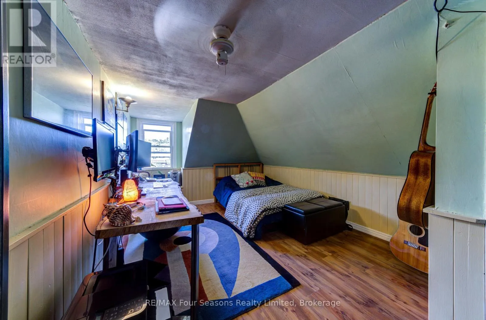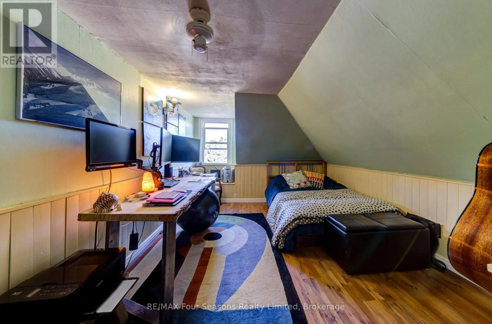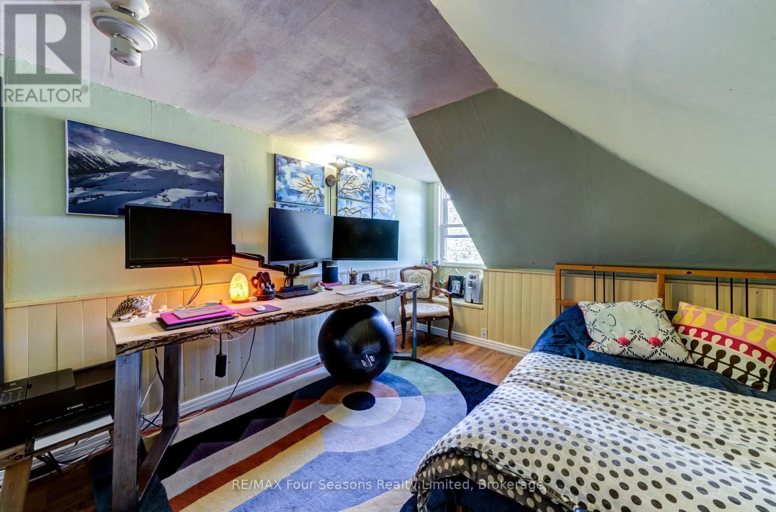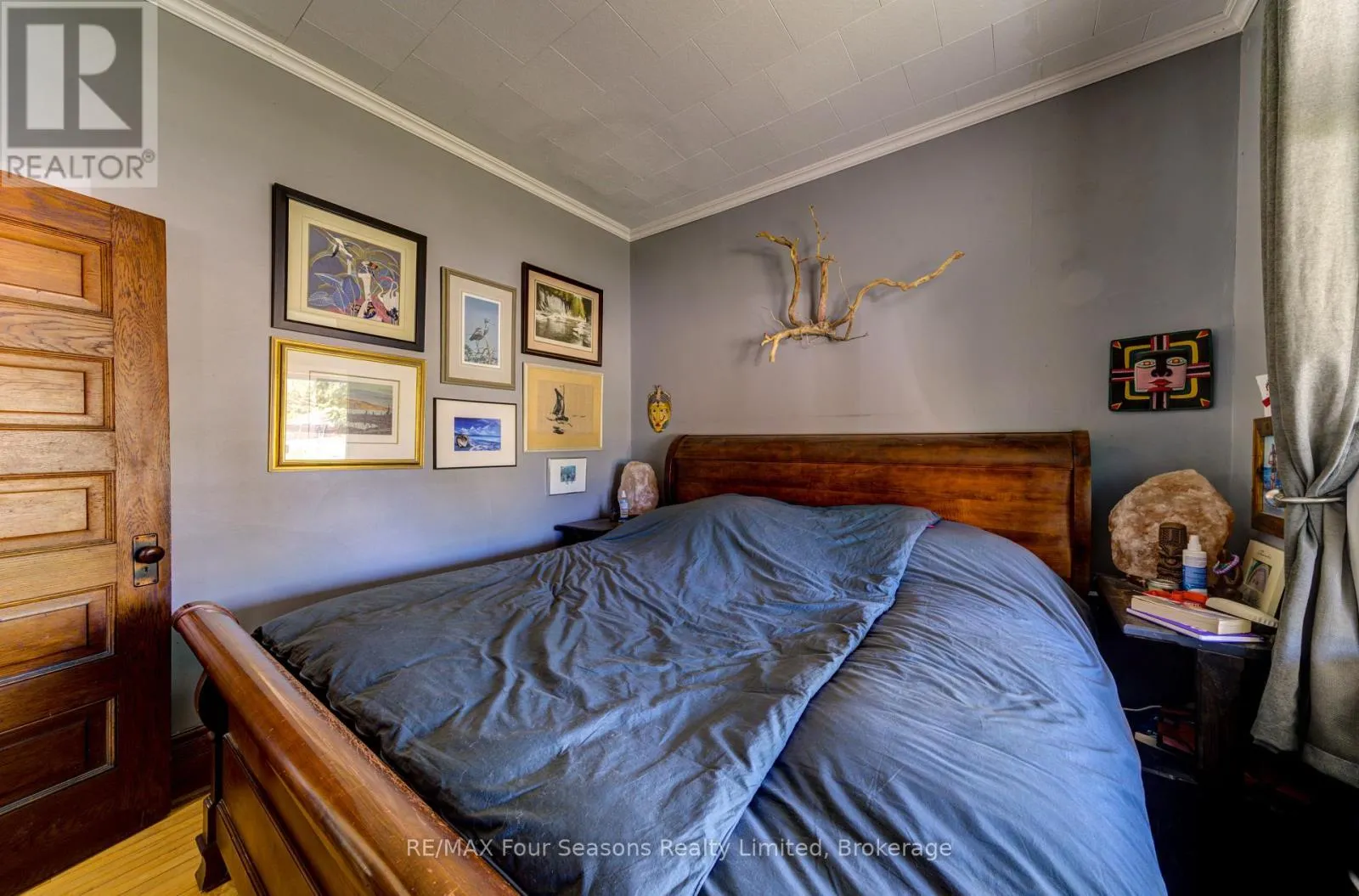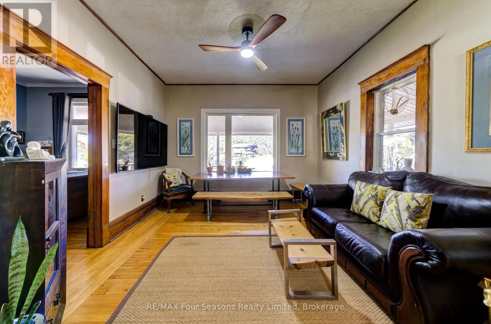 Cross Streets: Hurontario and Campbell. ** Directions: Hurontario to Campbell. Fantastic location only a 10 minute walk to downtown and 5 minute walk to your choice of 2 elementary schools and two high schools. Lovely well maintained century home has features of the time. High ceilings, pocket doors, hardwood flooring and beautiful trim. This 4 bedroom home offers a great opportunity for the first time buyer. A large covered deck on the front leads to the main entry door opening into a huge bright family room with cathedral ceilings and gas fireplace. Large living room with pocket doors leads off to the primary bedroom, den, kitchen and further bedroom. Two further bedrooms upstairs. A fully fenced backyard with gazebo, covered porch and sunroom make this a great backyard entertainment area. Many upgrades include windows, sliding door, furnace replaced in 2021, tankless hot water heater, upgraded electrical panel, dishwasher and double sinks, new roof in 2019. Paved three car driveway. (id:27476)