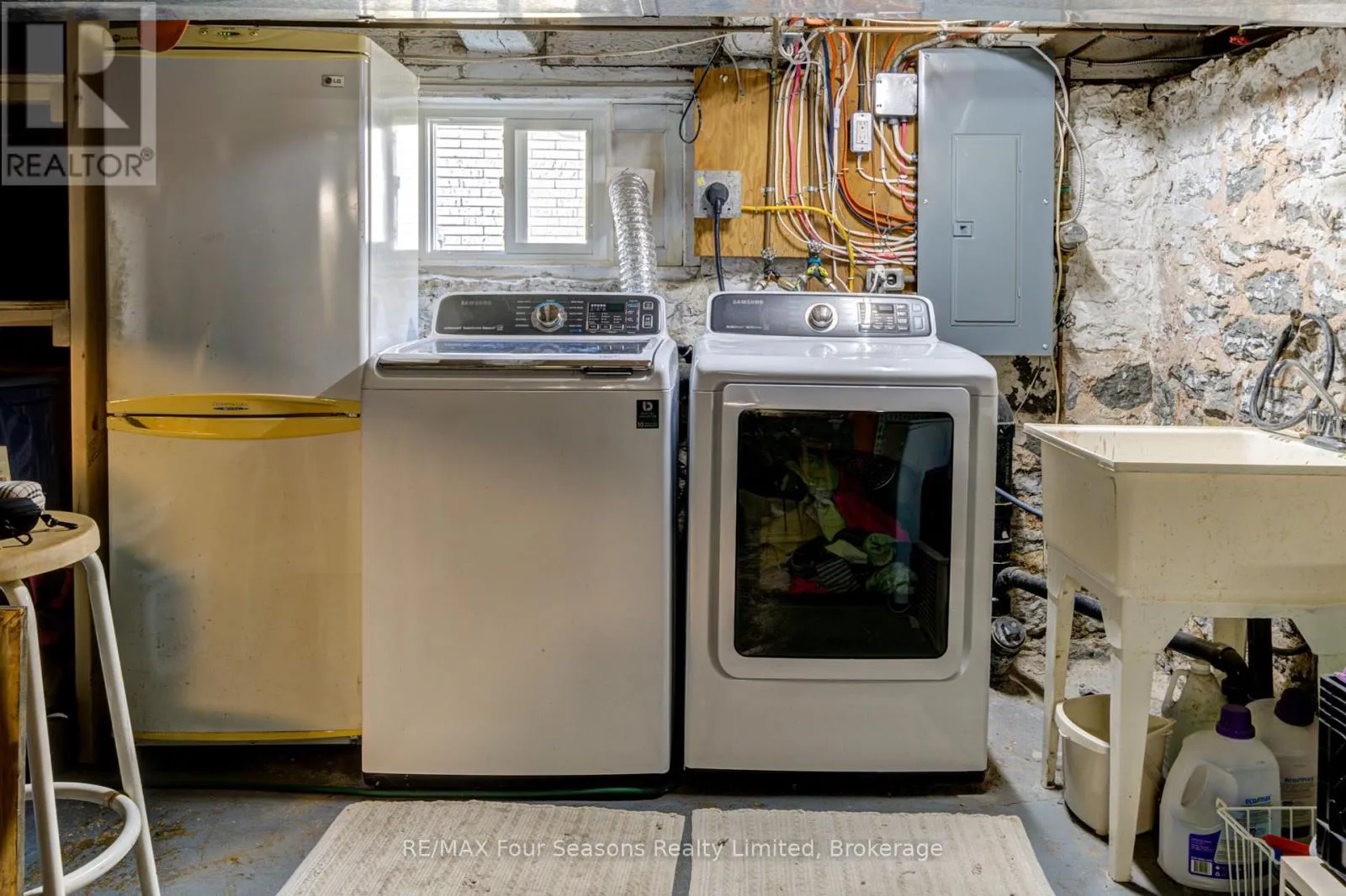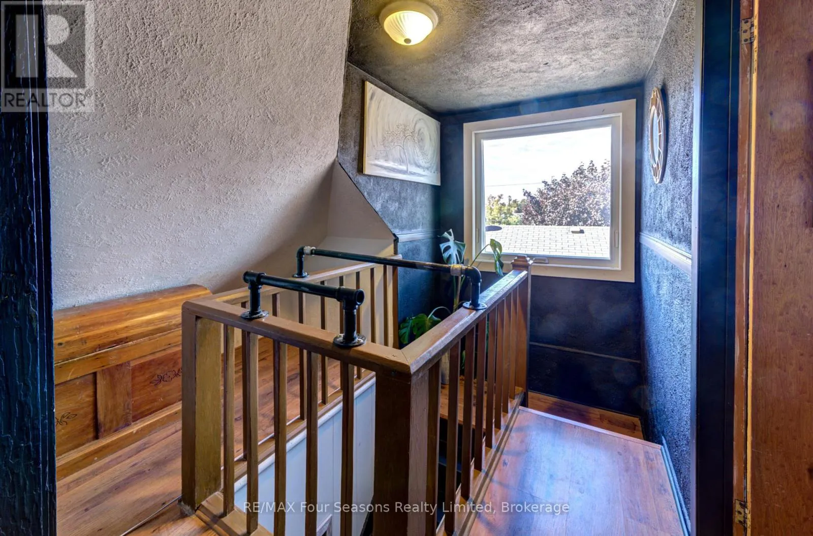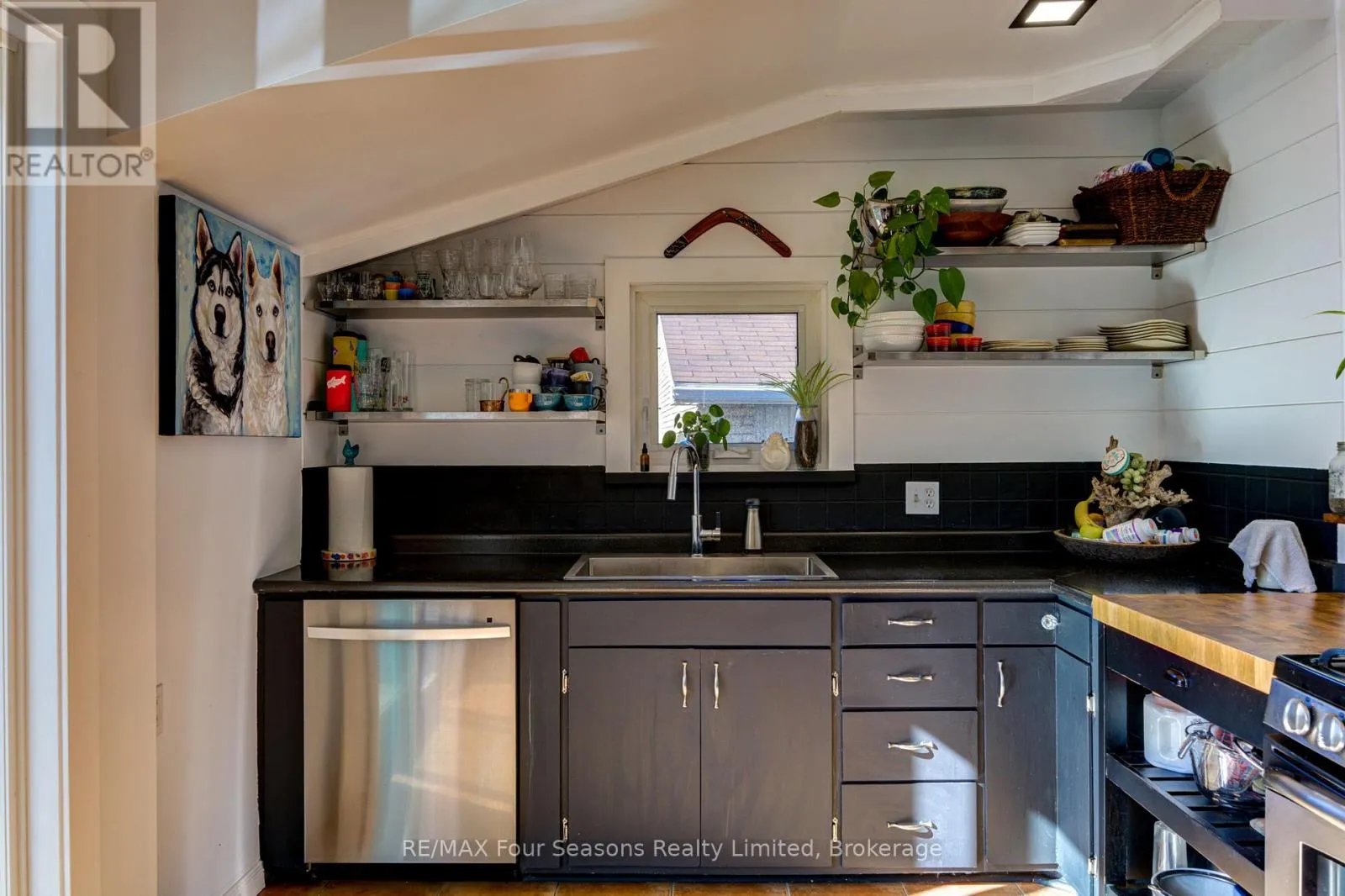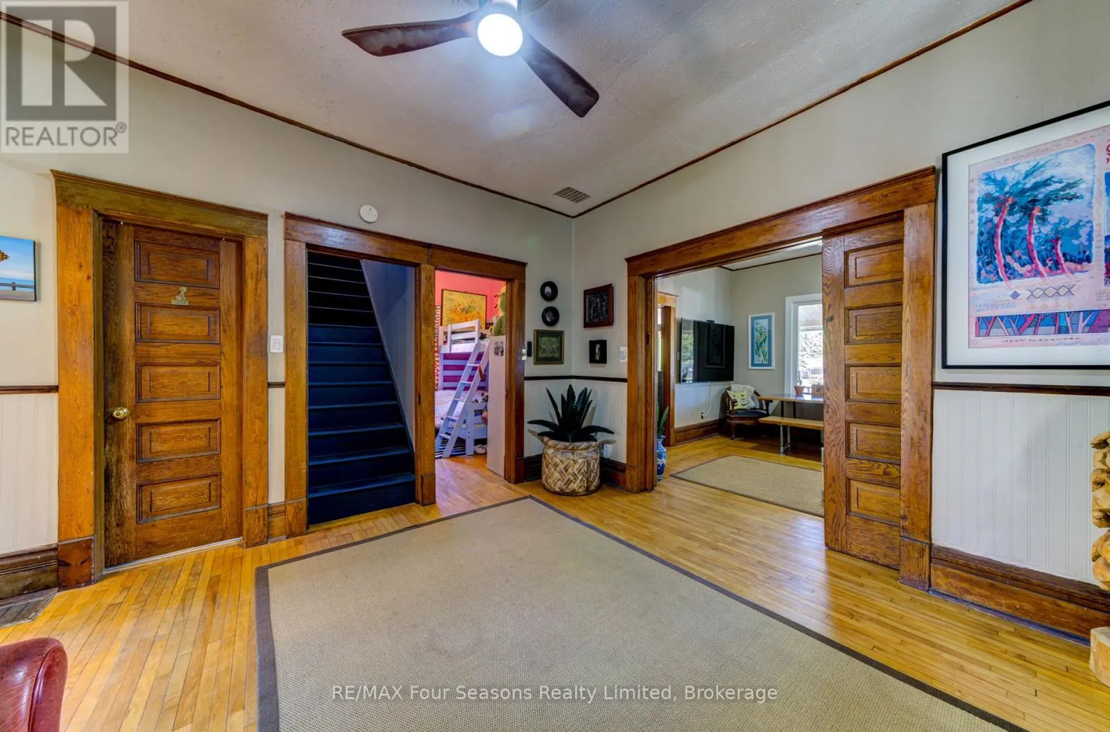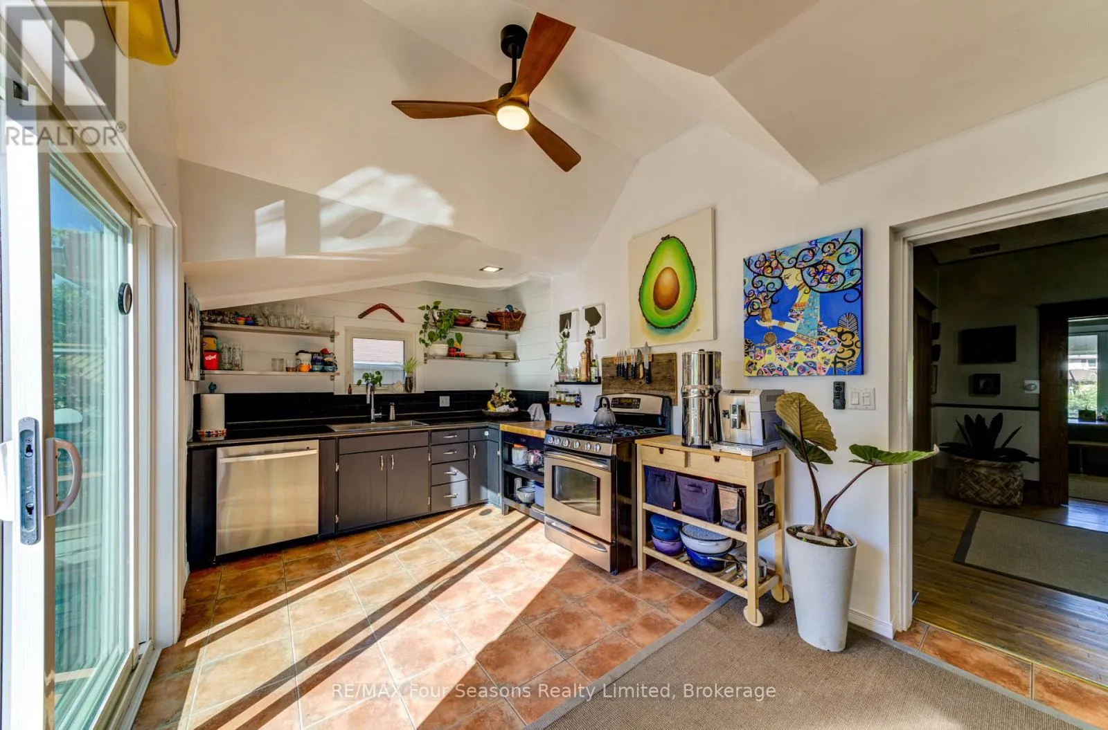 Cross Streets: Hurontario and Campbell. ** Directions: Hurontario to Campbell. Fantastic location only a 10 minute walk to downtown and 5 minute walk to your choice of 2 elementary schools and two high schools. Lovely well maintained century home has features of the time. High ceilings, pocket doors, hardwood flooring and beautiful trim. This 4 bedroom home offers a great opportunity for the first time buyer. A large covered deck on the front leads to the main entry door opening into a huge bright family room with cathedral ceilings and gas fireplace. Large living room with pocket doors leads off to the primary bedroom, den, kitchen and further bedroom. Two further bedrooms upstairs. A fully fenced backyard with gazebo, covered porch and sunroom make this a great backyard entertainment area. Many upgrades include windows, sliding door, furnace replaced in 2021, tankless hot water heater, upgraded electrical panel, dishwasher and double sinks, new roof in 2019. Paved three car driveway. (id:27476)