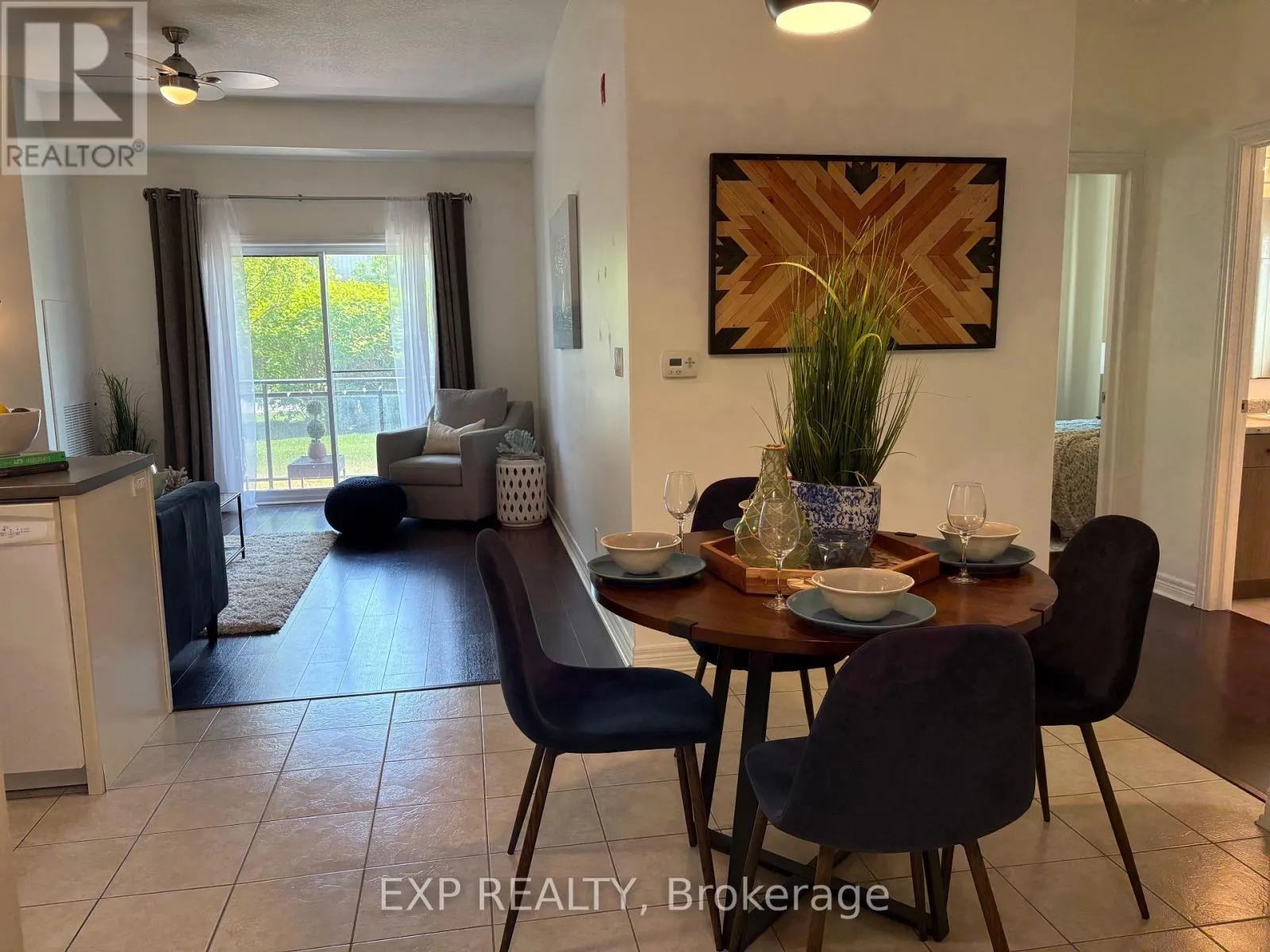 Cross Streets: High St & Chamberlain. ** Directions: High street north to Chamberlain. End Unit Ground Floor Condo Just Minutes from Blue Mountain Ski Resort Perfect for Winter Lovers! Spacious 2-bedroom, 1-bath end-unit condo. Ideally situated just minutes from Blue Mountain, you'll have endless summer & winter activities at your doorstep from skiing and snowboarding to snowshoeing and après-ski fun. Boasting 870 sq. ft. of open-concept living, this ground-floor unit features a soft white kitchen with ample storage and an eat-in dining area, flowing seamlessly into a sun-filled living room with direct access to your private south-facing patio perfect for soaking up the sun year-round. Enjoy the convenience of your designated parking space right outside your door, plus a rare side door entry exclusive to your unit. Community amenities: A welcoming front lobby and a fully-equipped party room with kitchen ideal for hosting special events, meetings, or games nights. Whether you're looking for a full-time residence, weekend retreat, or investment property, this unit offers comfort, convenience, and unbeatable access to Collingwood's four-season lifestyle. (id:27476)