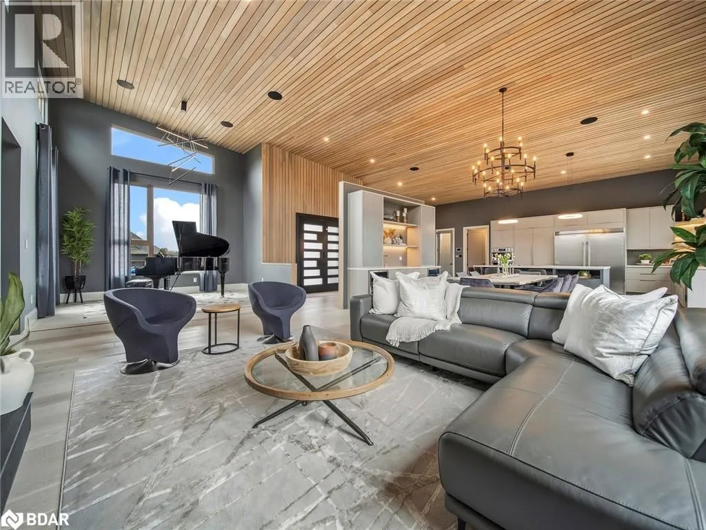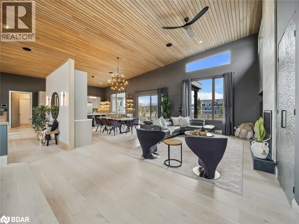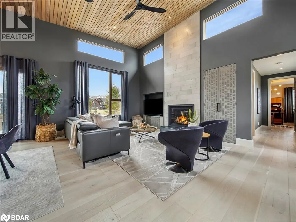 Grey Rd 19/Meadowlark Way or Sixth St/Windrose Valley Blvd/ L on Meadowlark Way MODERN, ORGANIC & TIMELESS CUSTOM-BUILT BUNGALOW FEATURING OVER 5,500 SQFT OF COMFORT-DRIVEN LIVING SPACE! Located in the equally coveted and convenient Windrose Estates, this home is mere minutes from all area amenities, including Osler Bluffs, Blue Mountain and downtown Collingwood. The open concept main level features a wood slat 12â-16â vaulted ceiling, wide plank engineered oak flooring and oversized windows to take advantage of the natural light and escarpment views. Designed to gather in style with a European kitchen with built-in appliances and a separate coffee/wine bar, elevated grand piano lounge, integrated Elan entertainment system (14 zones/26 built-in speakers) and multiple walkouts to the 42âx14â composite deck. Support your healthy and active lifestyle in the home gym, yoga studio, cedar/basswood glass front HUUM sauna, 6-person hot tub, large music/games room and with the bonus of an additional lower level laundry/sports storage room for all your gear. After a long day of playing, cozy up in front of one of the three fireplaces and enjoy a movie in the theatre room, great room or with a book in the chill lounge. Plenty of space for family and friends with 3+2 bedrooms (one currently used as a home office) and 3.5 bathrooms. Triple garage with height for car lift and a separate entrance to the lower level. #HomeToStay (id:27476)
