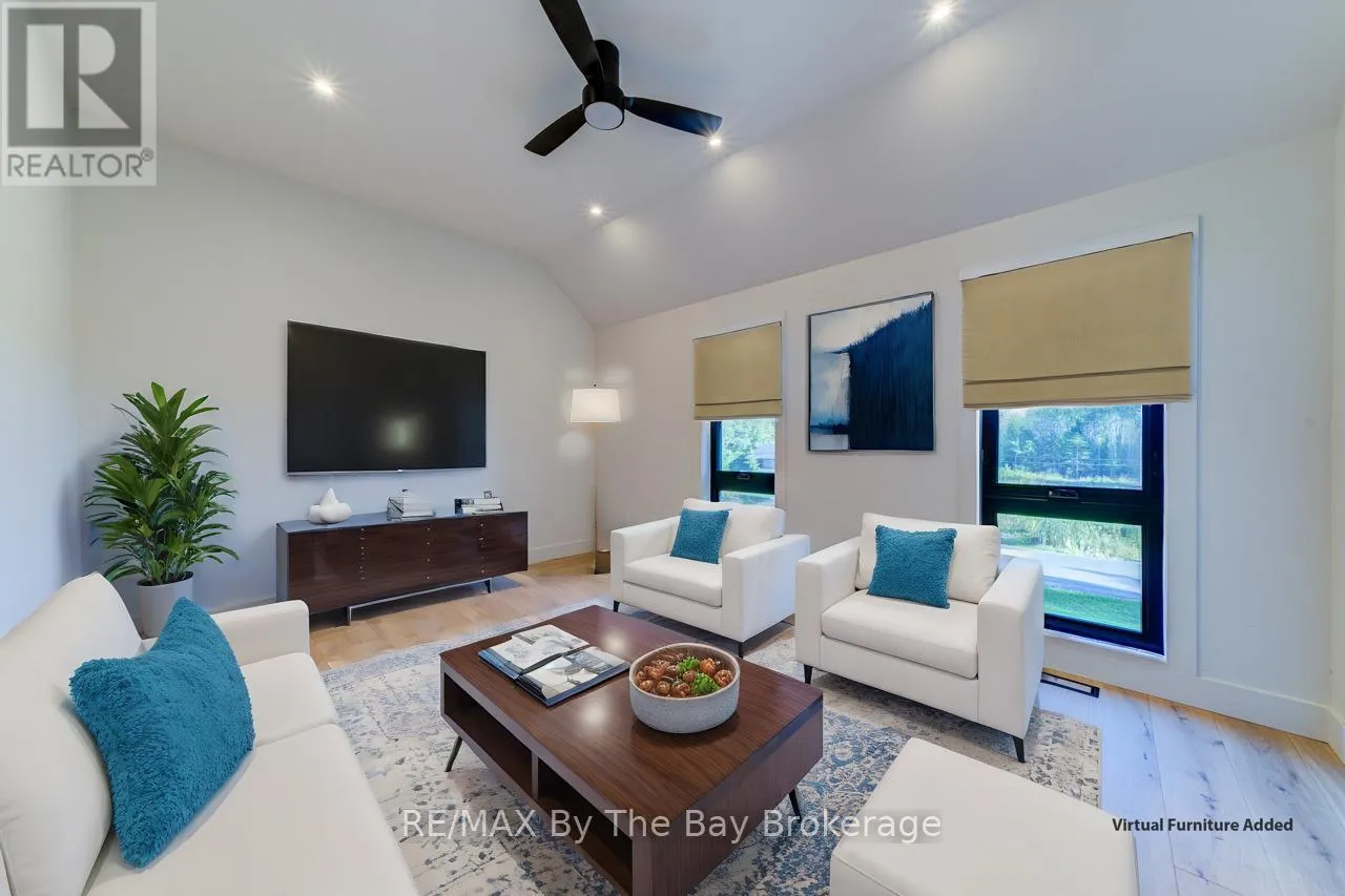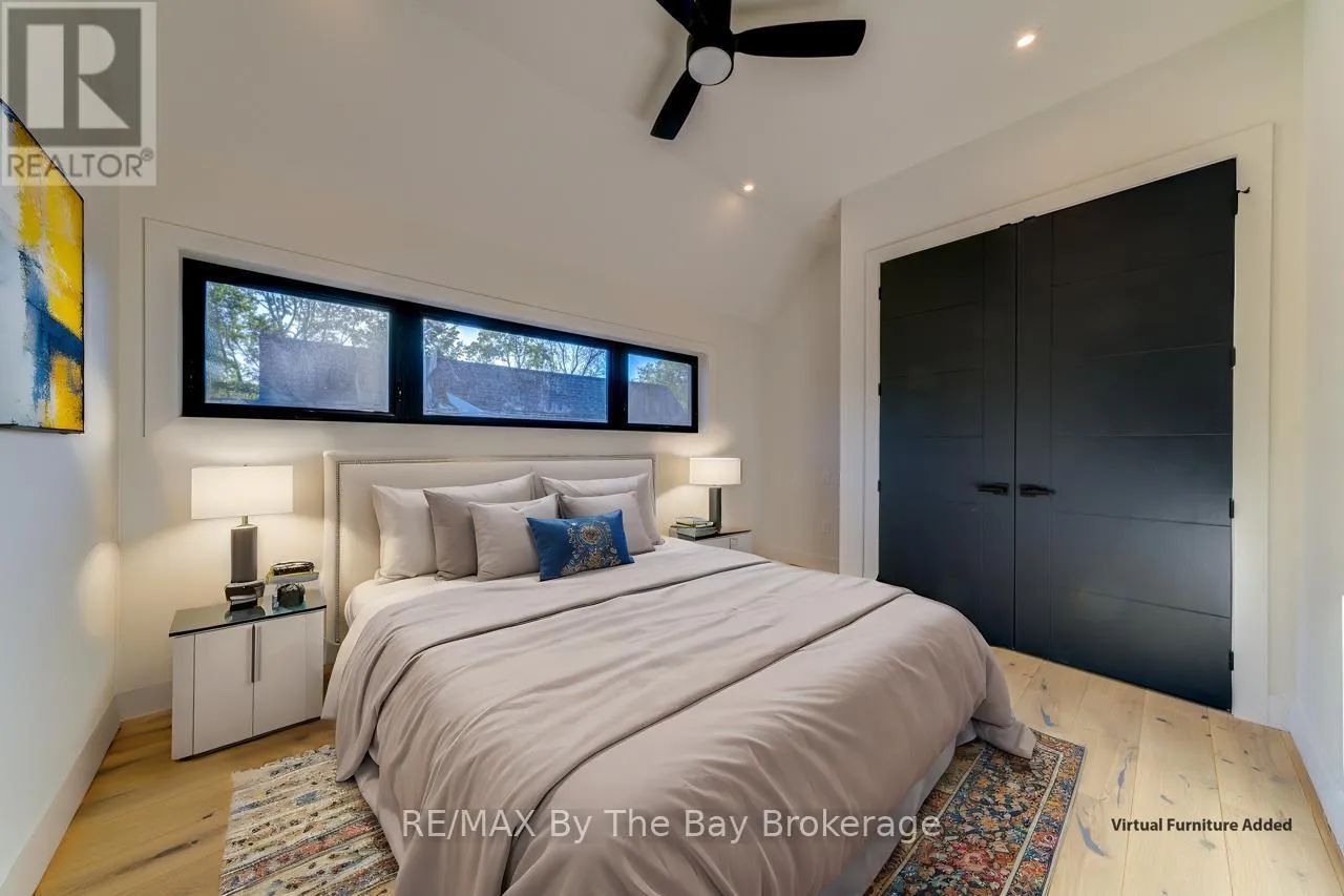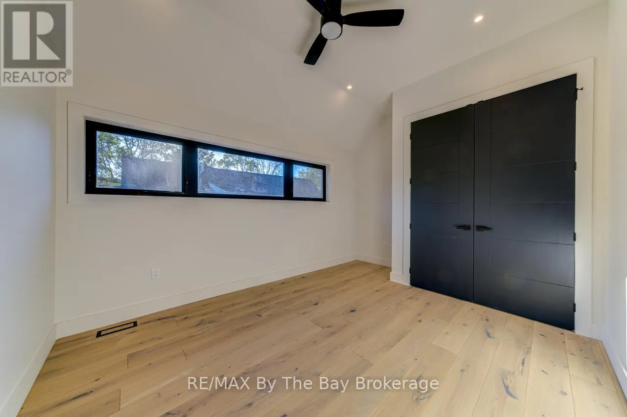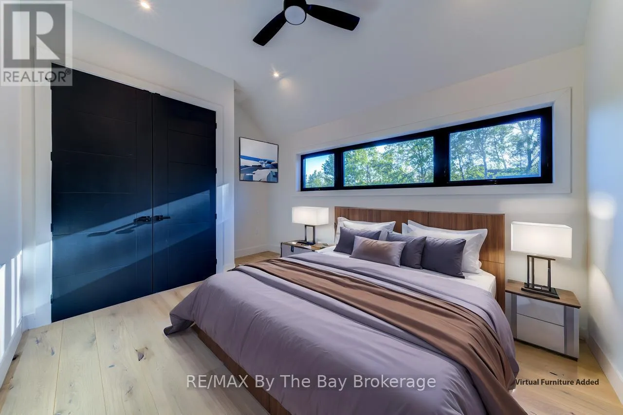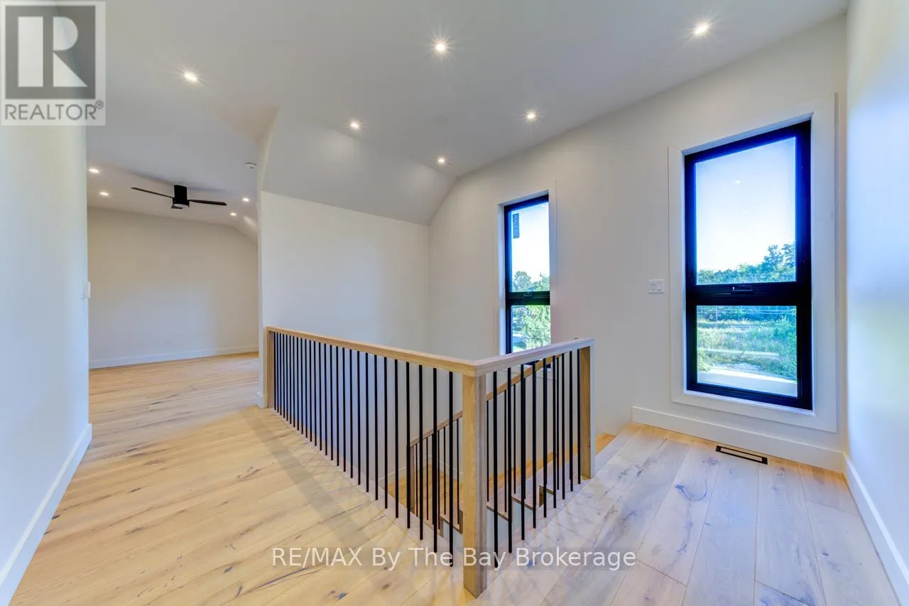 Cross Streets: Beachwood Rd. ** Directions: South on Beachwood Rd, Right onto Broadview Street, Property will be on your Right. Welcome to a masterpiece of modern design and meticulous craftsmanship. This luxurious Scandinavian-style residence, nestled on a generous 90ft by 200ft lot in Collingwood offers an unparalleled blend of elegance and functionality. The home's striking exterior features a sophisticated fusion of Scandinavian Spruce wood siding and 24-gauge standing seam steel siding and roof, crowned with a 50-year warranty. Step through the grand 40" front door into an impressively crafted entrance with heated floors. A well-appointed main floor laundry room, with Whirlpool appliances. The open-concept living, dining, and kitchen area exudes luxury with its 7.5" Muskoka Custom Finishing hardwood floors, a Napoleon fireplace, and a dramatic dark tile feature wall. The chef's kitchen is a culinary haven, showcasing high-end KitchenAid smart appliances and a Moen touch-less, WiFi-capable faucet. Adjacent to the kitchen, an office with pocket doors and access to the rear covered deck. The custom staircase by Stairhaus Inc. makes a stunning architectural statement, guiding you to the upper level. Here, a spacious family room complements 3 beautifully appointed bedrooms. The primary suite is a luxurious sanctuary, featuring a walk-in closet and a 6pc private ensuite, plus a walkout to a covered Duradek waterproof deck. A 4pc semi-ensuite bathroom and a thoughtfully designed 2pc bathroom on the main floor cater to both privacy and convenience. Above the garage, a legal second-dwelling apartment presents an excellent opportunity for additional income or guest accommodation. With its own private entrance, this charming apartment features an open-concept living, dining, and kitchen area with Frigidaire appliances, a stackable washer and dryer, a cozy bedroom, and a stylish 3pc bathroom. A set of 9ft x 10ft garage doors with drive-through provides an ample amount of garage and storage needs. This custom-built Scandinavian-style home stands as a testament to superior quality and refined livin (id:27476)