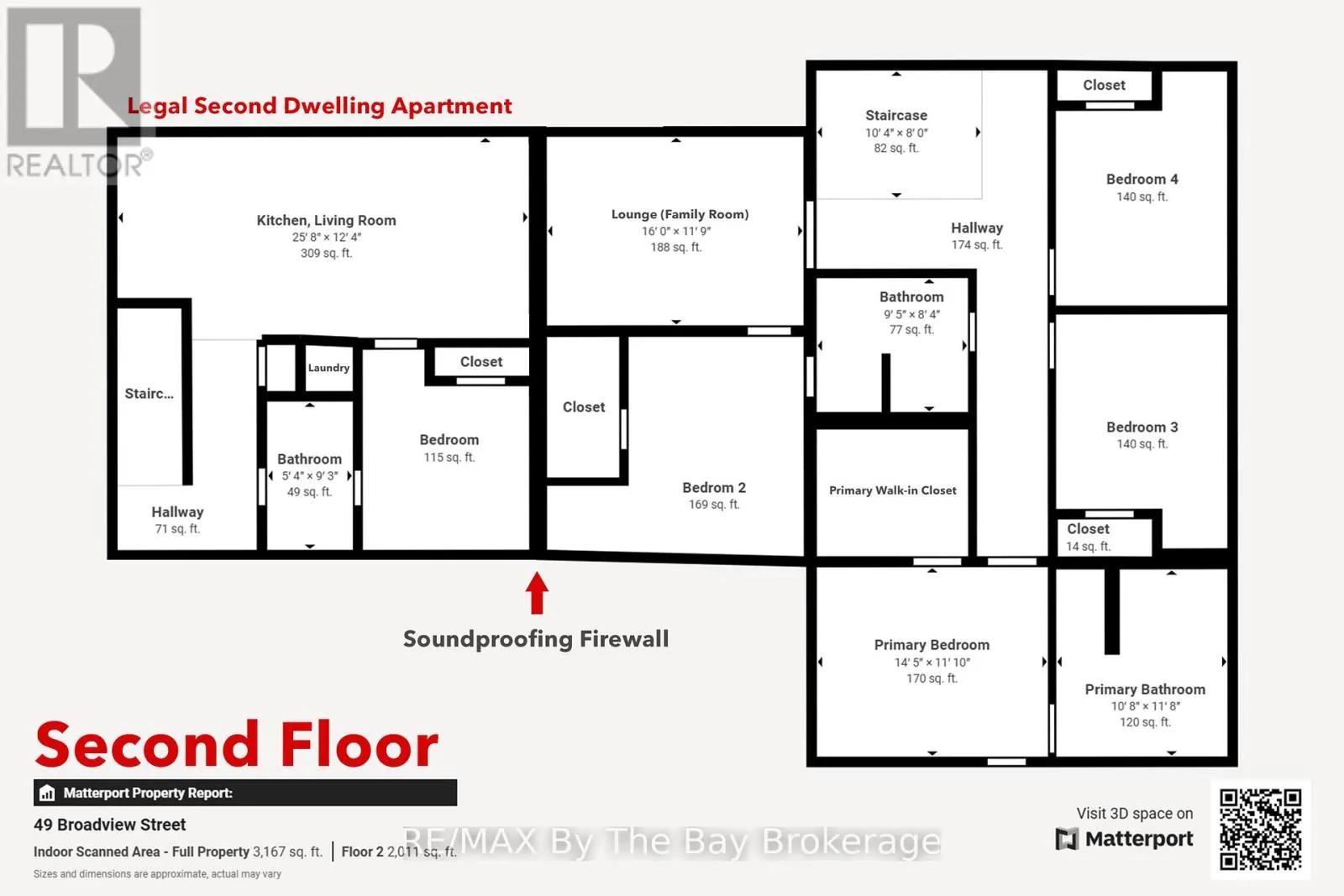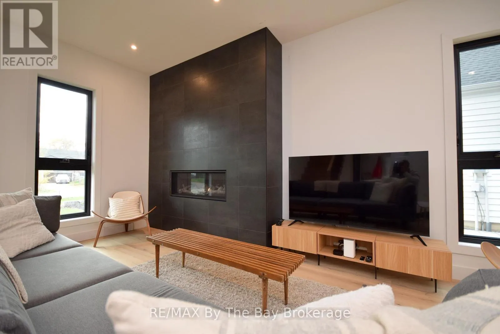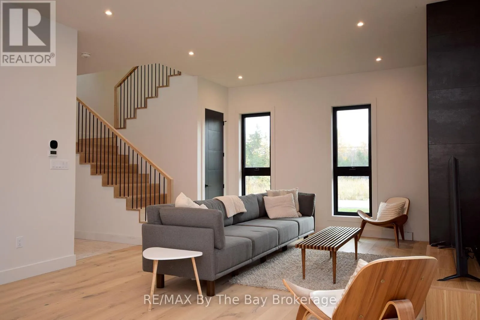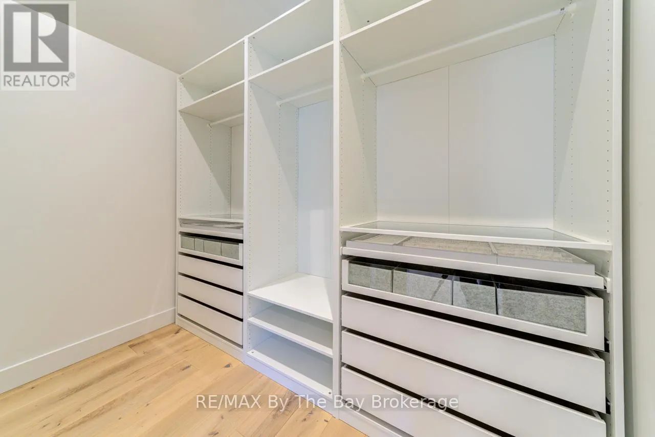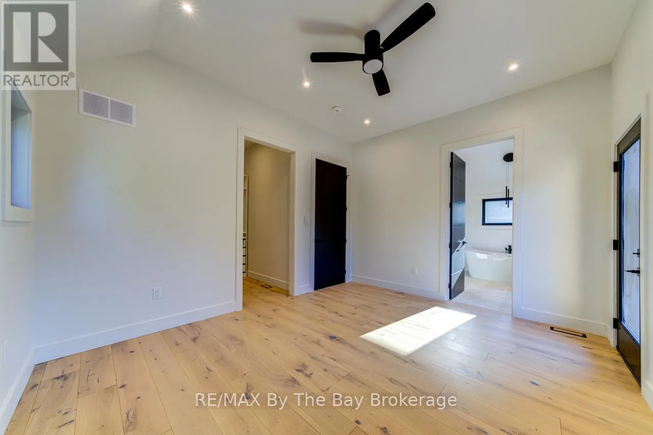 Cross Streets: Beachwood Rd. ** Directions: South on Beachwood Rd, Right onto Broadview Street, Property will be on your Right. Welcome to a masterpiece of modern design and meticulous craftsmanship. This luxurious Scandinavian-style residence, nestled on a generous 90ft by 200ft lot in Collingwood offers an unparalleled blend of elegance and functionality. The home's striking exterior features a sophisticated fusion of Scandinavian Spruce wood siding and 24-gauge standing seam steel siding and roof, crowned with a 50-year warranty. Step through the grand 40" front door into an impressively crafted entrance with heated floors. A well-appointed main floor laundry room, with Whirlpool appliances. The open-concept living, dining, and kitchen area exudes luxury with its 7.5" Muskoka Custom Finishing hardwood floors, a Napoleon fireplace, and a dramatic dark tile feature wall. The chef's kitchen is a culinary haven, showcasing high-end KitchenAid smart appliances and a Moen touch-less, WiFi-capable faucet. Adjacent to the kitchen, an office with pocket doors and access to the rear covered deck. The custom staircase by Stairhaus Inc. makes a stunning architectural statement, guiding you to the upper level. Here, a spacious family room complements 3 beautifully appointed bedrooms. The primary suite is a luxurious sanctuary, featuring a walk-in closet and a 6pc private ensuite, plus a walkout to a covered Duradek waterproof deck. A 4pc semi-ensuite bathroom and a thoughtfully designed 2pc bathroom on the main floor cater to both privacy and convenience. Above the garage, a legal second-dwelling apartment presents an excellent opportunity for additional income or guest accommodation. With its own private entrance, this charming apartment features an open-concept living, dining, and kitchen area with Frigidaire appliances, a stackable washer and dryer, a cozy bedroom, and a stylish 3pc bathroom. A set of 9ft x 10ft garage doors with drive-through provides an ample amount of garage and storage needs. This custom-built Scandinavian-style home stands as a testament to superior quality and refined livin (id:27476)