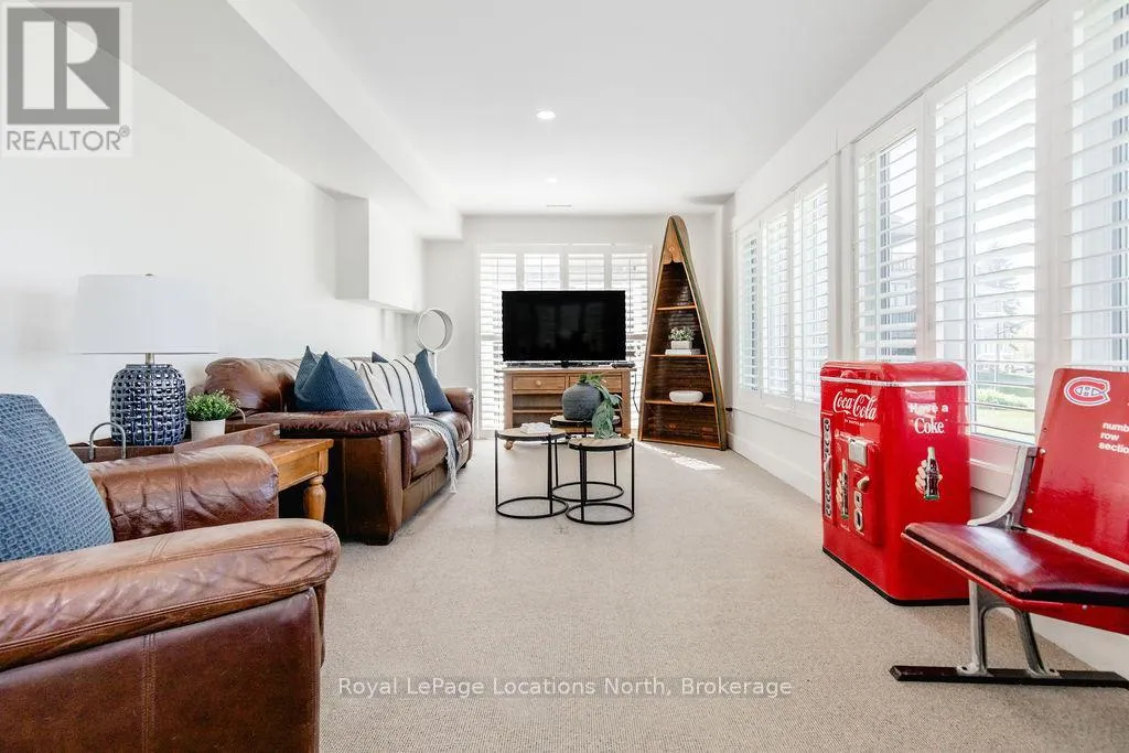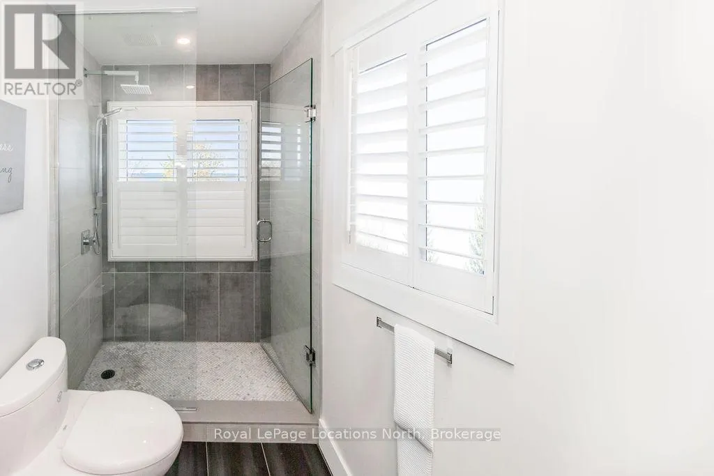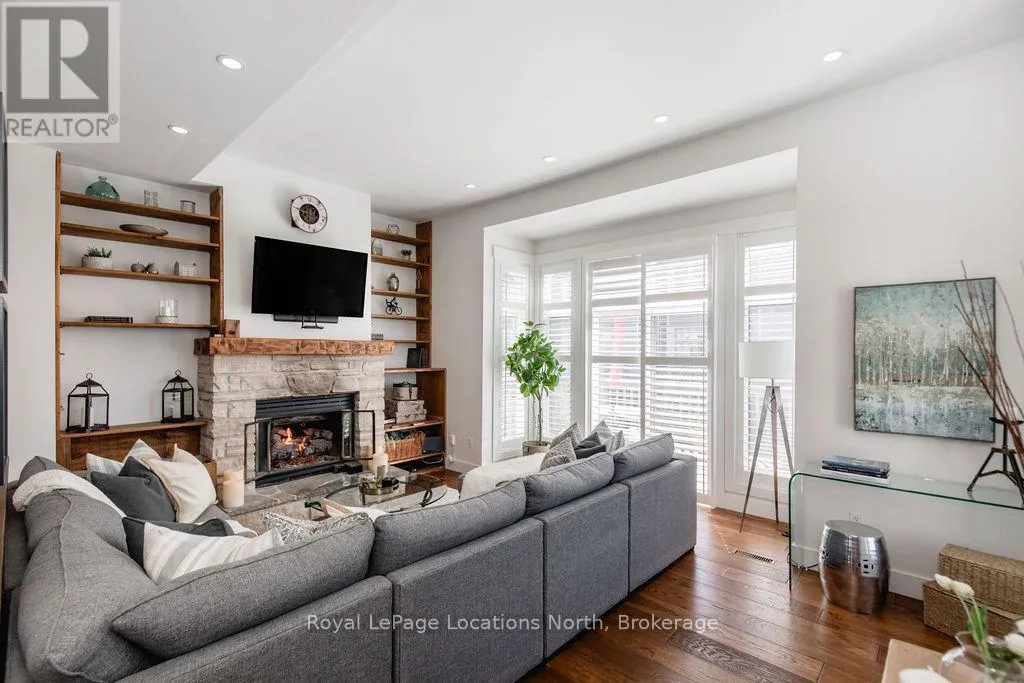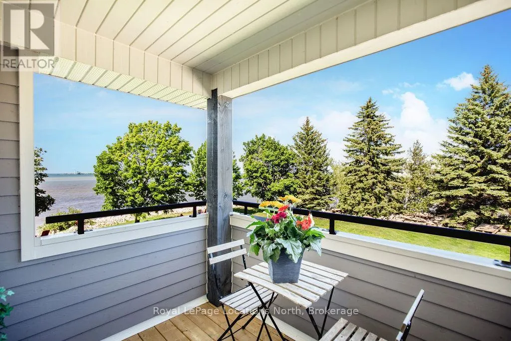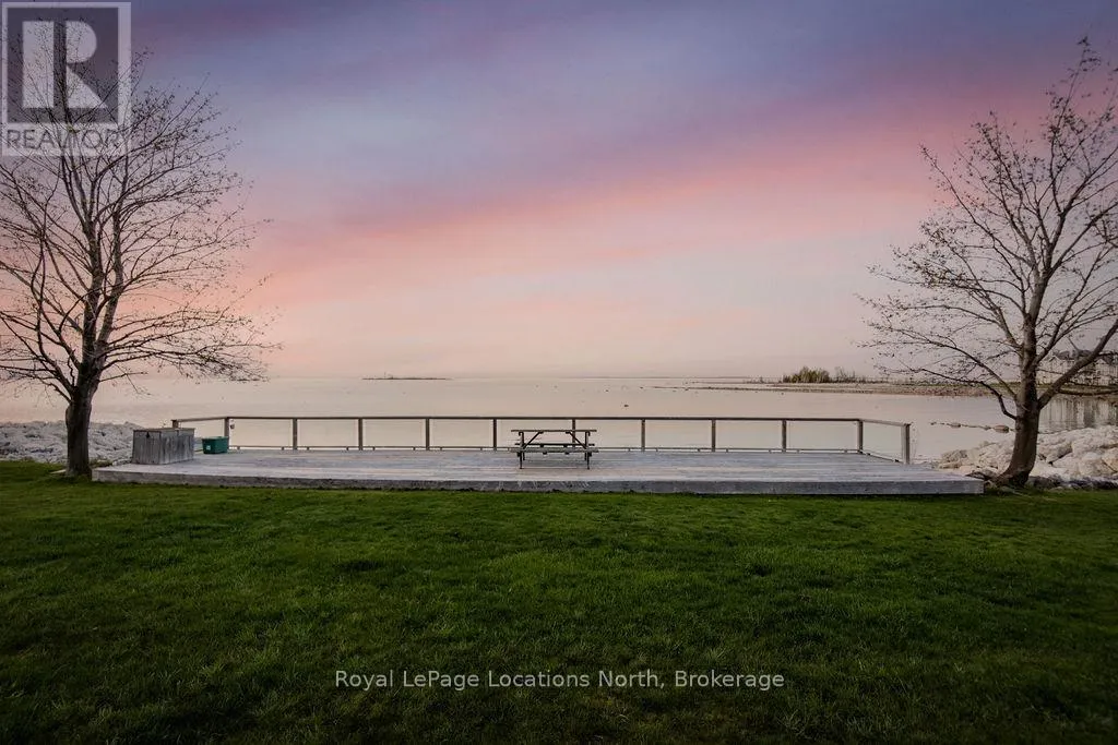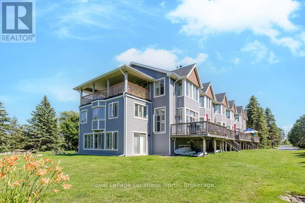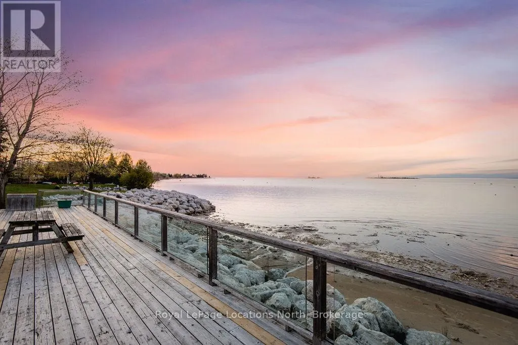 Cross Streets: Hwy 26/Dockside Dr/Lighthouse. ** Directions: Hwy 26 to Dockside Dr to Lighthouse Lane. This is a RARE + EXCEPTIONAL property-an absolute gem w/ nothing comparable in all of Collingwood. Experience waterfront living at its finest in this stunning waterfront condo. Recharge on the brand new covered deck, measuring 25'9" x 11'1", your personal oasis for entertaining guests, admiring breathtaking sunsets, or simply unwinding w/ a good book. With maintenance-free living inside & out, you'll have more time to soak in the beauty of the Georgian Bay. This home has undergone a complete interior/exterior renovation, w/stunning rustic wide plank flooring, new stairs w/glass railings to brighten up the space + upgraded baseboard/trim to add a touch of elegance while keeping that upscale vibe. The custom kitchen was designed to be open-concept to the dining area w/ large island perfect for entertaining + quartz countertops. The dining overlooks the cozy living room w/stone fireplace, tall ceilings + walkout to another fabulous deck. An additional main floor family room is a favorite, surrounded by windows offering panoramic views of the bay. Perfect room to double as an art studio, office or gym w/measurements of 25.9x11.3ft. Waking up in the main floor primary bedroom is like a dream w/views for miles, while enjoying the luxury of heated floors every morning in the newly renovated ensuite. The 3rd level features 3 additional bedrooms + fully renovated bathroom. Indulge yourself after a day on the ski hills in the "spa" like room with a jacuzzi tub + sauna, adding a touch of relaxation to your lakeside retreat. Outside, the community amenities are equally impressive,w/outdoor saltwater pool, PICKLEBALL/tennis courts, a private sand beach area, + watercraft launch ramp. Downtown Collingwood is a short drive away with great dining + activities. Whether you're seeking a full-time residence/a weekend getaway, this waterfront haven has it all. Add incl- California shutters, gas hook up for BBQ, all newer appliances, upgraded lighting, New AC (1yr), new exterior. (id:27476)