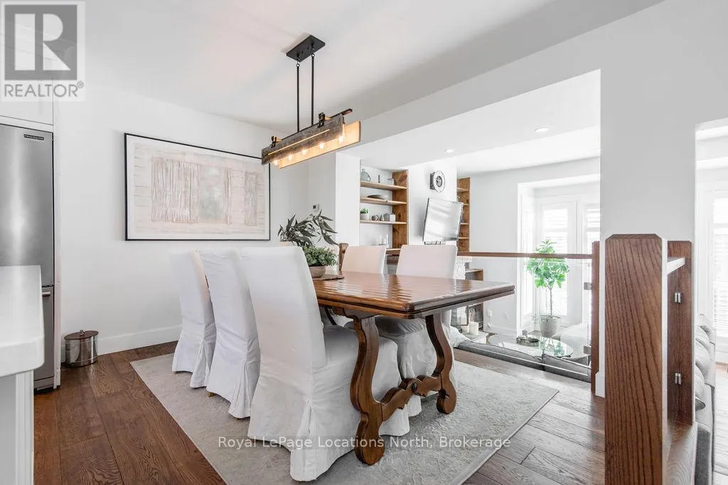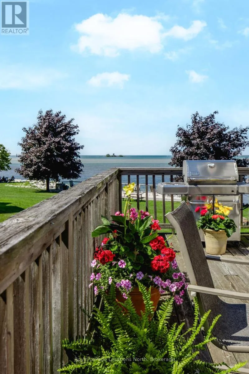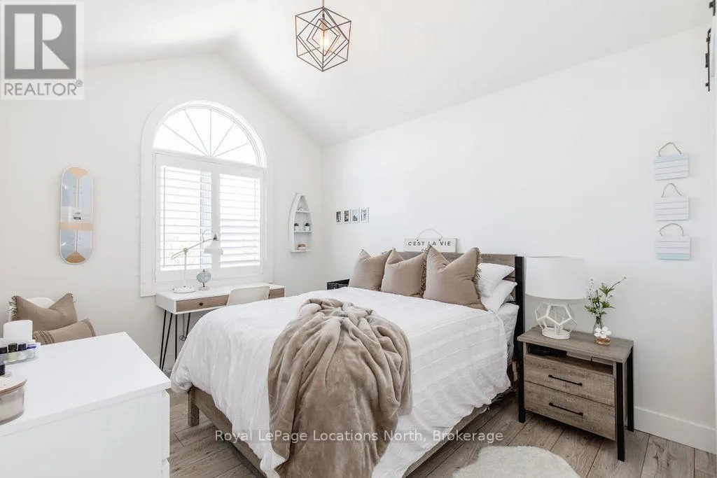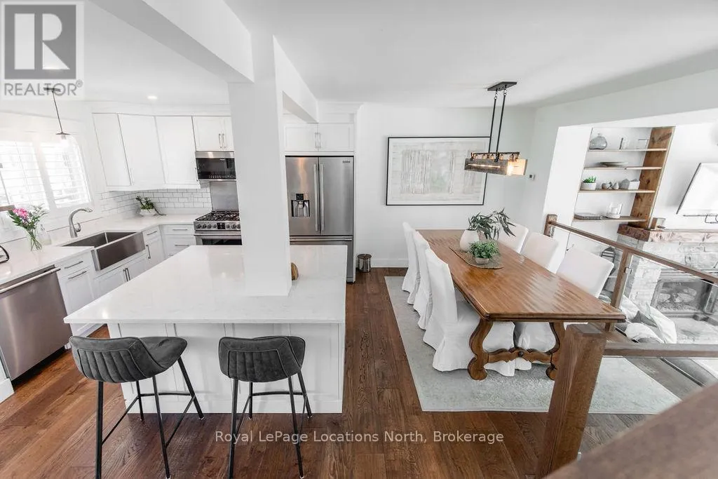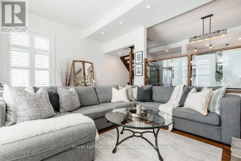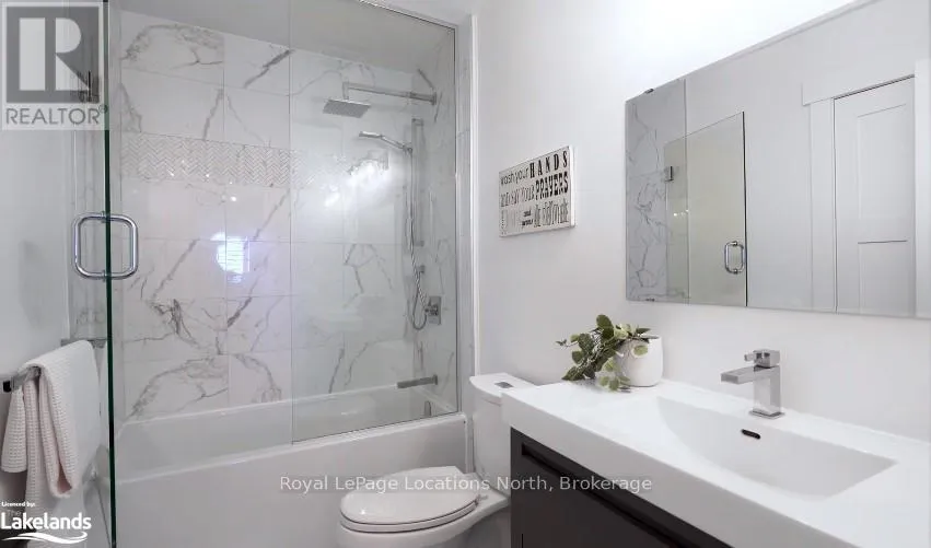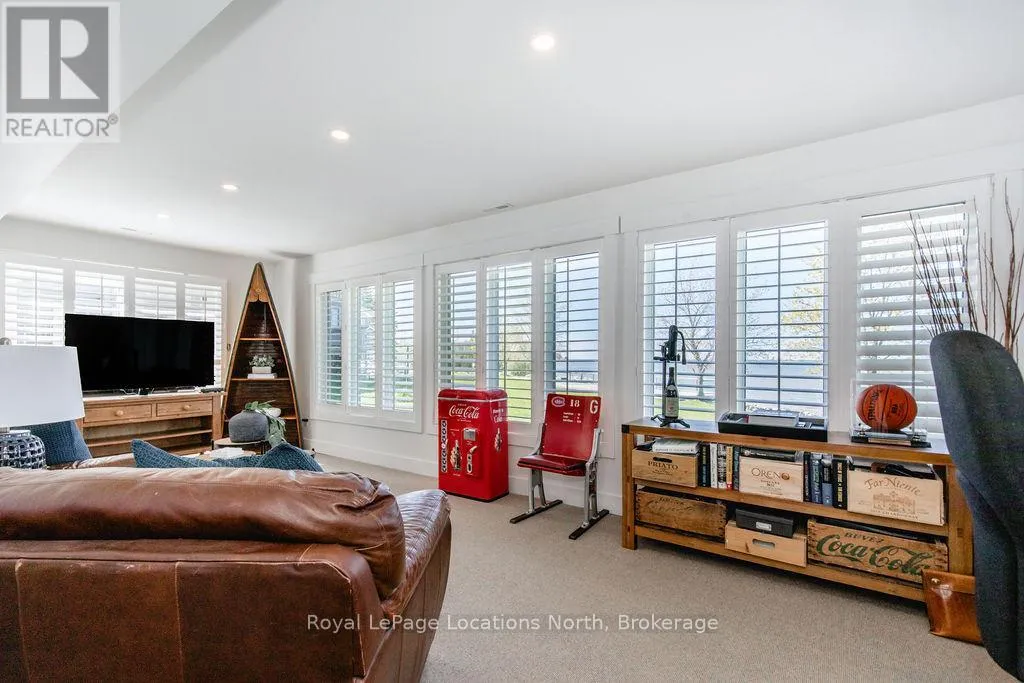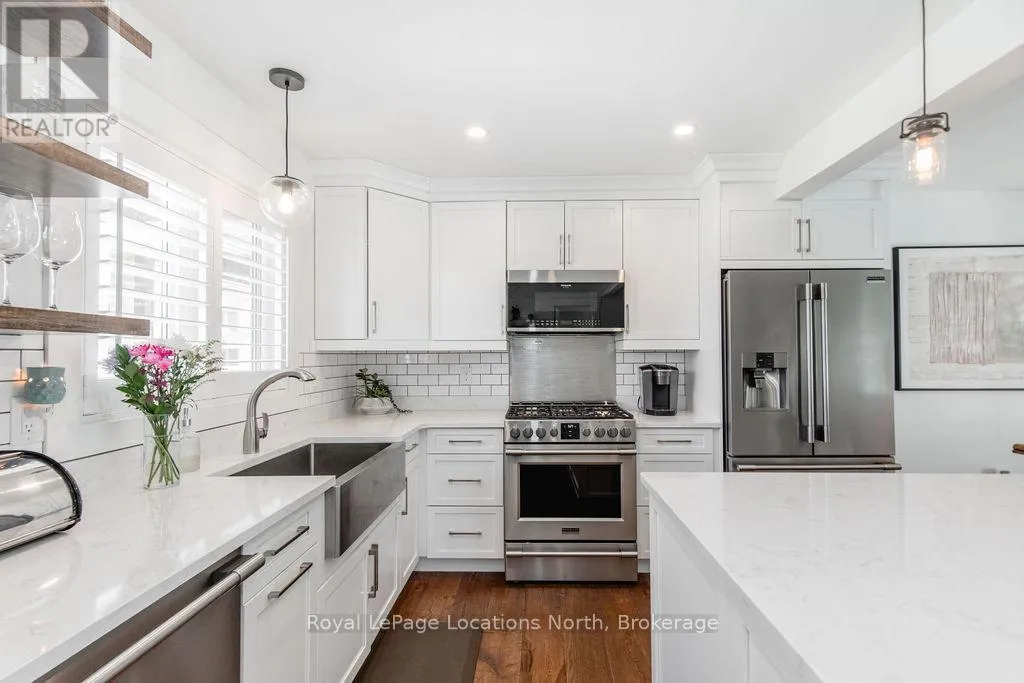 Cross Streets: Hwy 26/Dockside Dr/Lighthouse. ** Directions: Hwy 26 to Dockside Dr to Lighthouse Lane. This is a RARE + EXCEPTIONAL property-an absolute gem w/ nothing comparable in all of Collingwood. Experience waterfront living at its finest in this stunning waterfront condo. Recharge on the brand new covered deck, measuring 25'9" x 11'1", your personal oasis for entertaining guests, admiring breathtaking sunsets, or simply unwinding w/ a good book. With maintenance-free living inside & out, you'll have more time to soak in the beauty of the Georgian Bay. This home has undergone a complete interior/exterior renovation, w/stunning rustic wide plank flooring, new stairs w/glass railings to brighten up the space + upgraded baseboard/trim to add a touch of elegance while keeping that upscale vibe. The custom kitchen was designed to be open-concept to the dining area w/ large island perfect for entertaining + quartz countertops. The dining overlooks the cozy living room w/stone fireplace, tall ceilings + walkout to another fabulous deck. An additional main floor family room is a favorite, surrounded by windows offering panoramic views of the bay. Perfect room to double as an art studio, office or gym w/measurements of 25.9x11.3ft. Waking up in the main floor primary bedroom is like a dream w/views for miles, while enjoying the luxury of heated floors every morning in the newly renovated ensuite. The 3rd level features 3 additional bedrooms + fully renovated bathroom. Indulge yourself after a day on the ski hills in the "spa" like room with a jacuzzi tub + sauna, adding a touch of relaxation to your lakeside retreat. Outside, the community amenities are equally impressive,w/outdoor saltwater pool, PICKLEBALL/tennis courts, a private sand beach area, + watercraft launch ramp. Downtown Collingwood is a short drive away with great dining + activities. Whether you're seeking a full-time residence/a weekend getaway, this waterfront haven has it all. Add incl- California shutters, gas hook up for BBQ, all newer appliances, upgraded lighting, New AC (1yr), new exterior. (id:27476)
