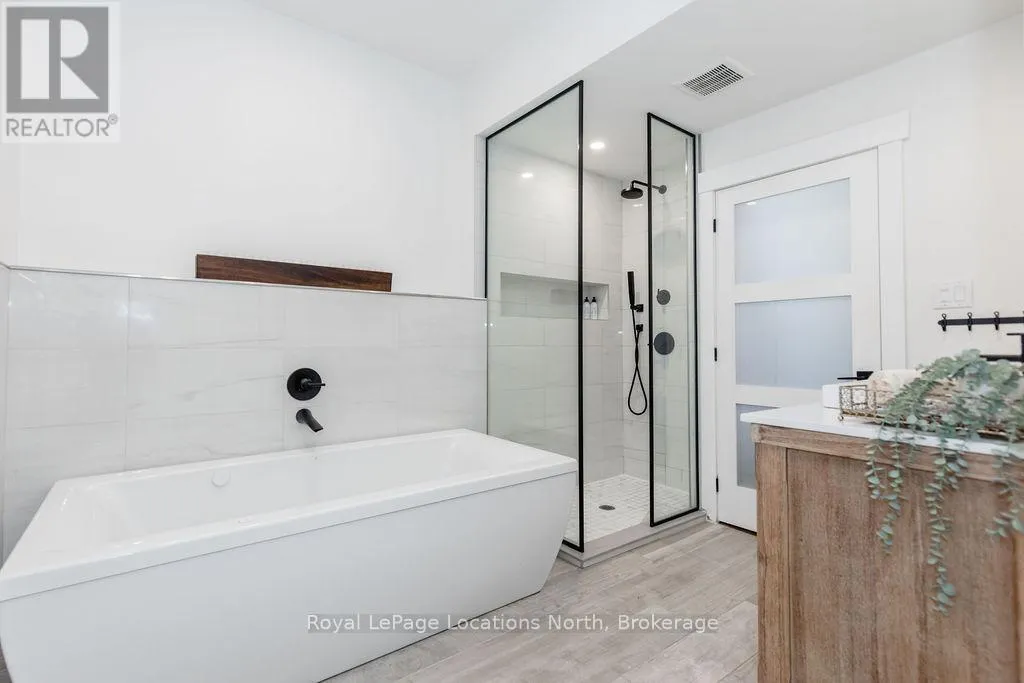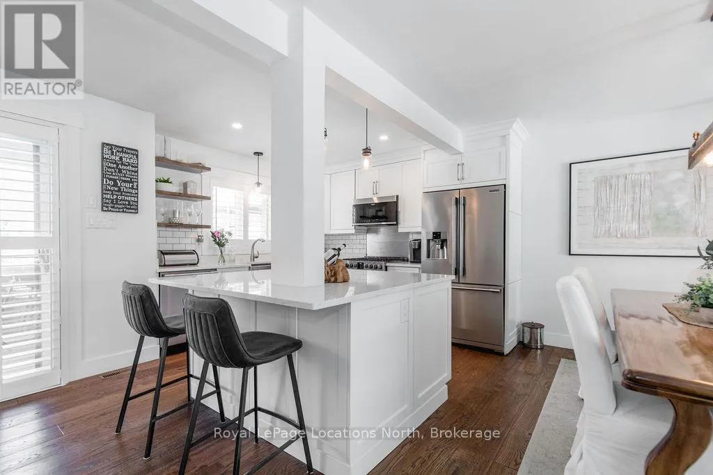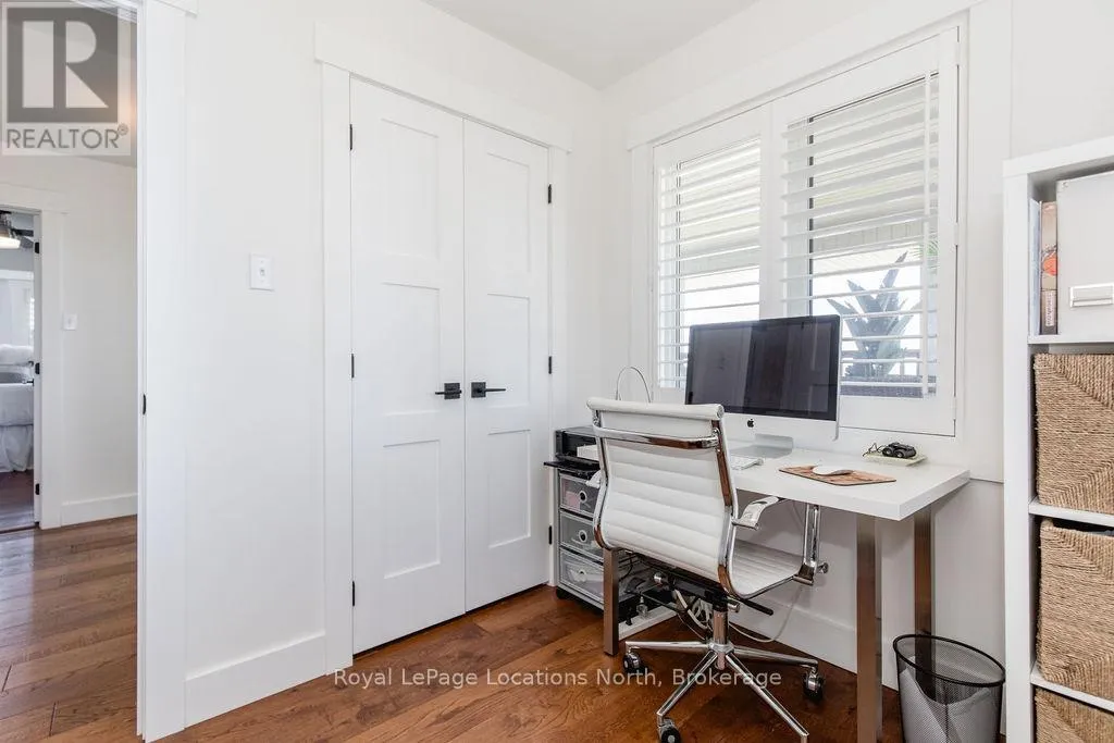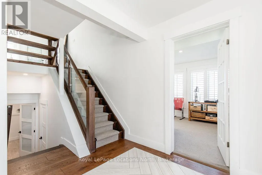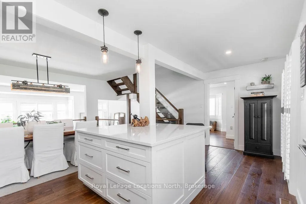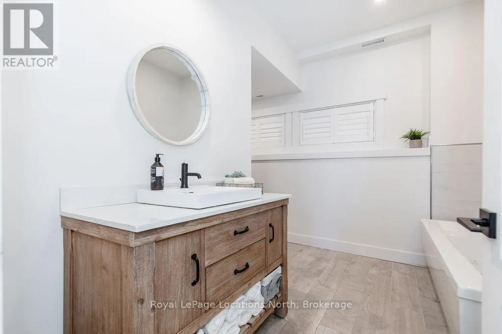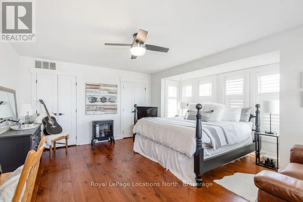 Cross Streets: Hwy 26/Dockside Dr/Lighthouse. ** Directions: Hwy 26 to Dockside Dr to Lighthouse Lane. This is a RARE + EXCEPTIONAL property-an absolute gem w/ nothing comparable in all of Collingwood. Experience waterfront living at its finest in this stunning waterfront condo. Recharge on the brand new covered deck, measuring 25'9" x 11'1", your personal oasis for entertaining guests, admiring breathtaking sunsets, or simply unwinding w/ a good book. With maintenance-free living inside & out, you'll have more time to soak in the beauty of the Georgian Bay. This home has undergone a complete interior/exterior renovation, w/stunning rustic wide plank flooring, new stairs w/glass railings to brighten up the space + upgraded baseboard/trim to add a touch of elegance while keeping that upscale vibe. The custom kitchen was designed to be open-concept to the dining area w/ large island perfect for entertaining + quartz countertops. The dining overlooks the cozy living room w/stone fireplace, tall ceilings + walkout to another fabulous deck. An additional main floor family room is a favorite, surrounded by windows offering panoramic views of the bay. Perfect room to double as an art studio, office or gym w/measurements of 25.9x11.3ft. Waking up in the main floor primary bedroom is like a dream w/views for miles, while enjoying the luxury of heated floors every morning in the newly renovated ensuite. The 3rd level features 3 additional bedrooms + fully renovated bathroom. Indulge yourself after a day on the ski hills in the "spa" like room with a jacuzzi tub + sauna, adding a touch of relaxation to your lakeside retreat. Outside, the community amenities are equally impressive,w/outdoor saltwater pool, PICKLEBALL/tennis courts, a private sand beach area, + watercraft launch ramp. Downtown Collingwood is a short drive away with great dining + activities. Whether you're seeking a full-time residence/a weekend getaway, this waterfront haven has it all. Add incl- California shutters, gas hook up for BBQ, all newer appliances, upgraded lighting, New AC (1yr), new exterior. (id:27476)