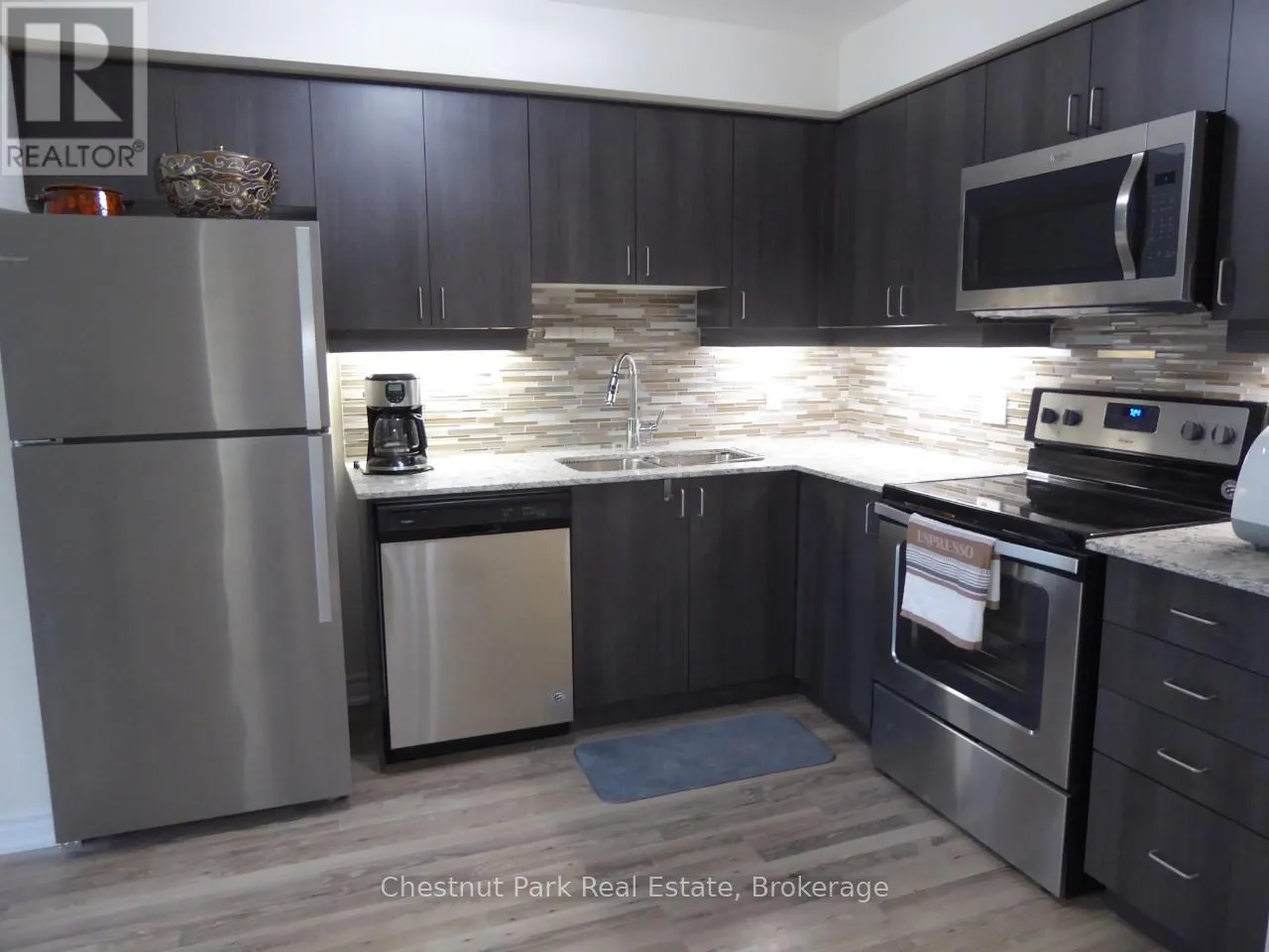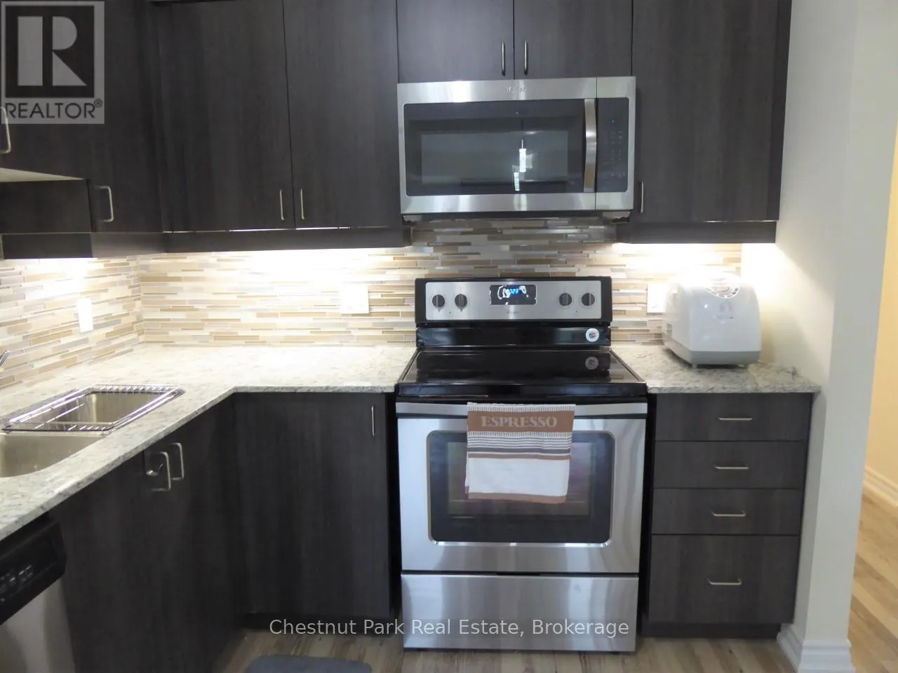 Cross Streets: Cove Court & Hwy 26. ** Directions: Highway 26 West to Wyldewood Cove. Park on the right and unit is on the left as you drive in - 2 Cove Crt #102. UNFURNISHED SEASONAL LEASE. Bright and spacious 1 Bedroom 2 full Bathrooms ground floor condo with additional Den/Bedroom. This upgraded condo overlooks the heated outdoor pool, which is open year-round. Open Concept Living/Dining/Kitchen w/high end stainless appliances, granite counters and laminate wood effect flooring. Master Bed w/double closet overlooking private patio with gas hook-up for BBQ. The condo has its own storage locker and exclusive parking space with additional ample visitor parking close by. The waterfront development of Wyldewood Cove is ideally situated minutes from downtown Collingwood where you can experience fine dining, shopping, theatres and entertainment. A short 10 minute drive takes you to Blue Mountain ski slopes and the Village at Blue with numerous restaurants, boutique shopping and year round festivals and events to enjoy. (id:27476)
